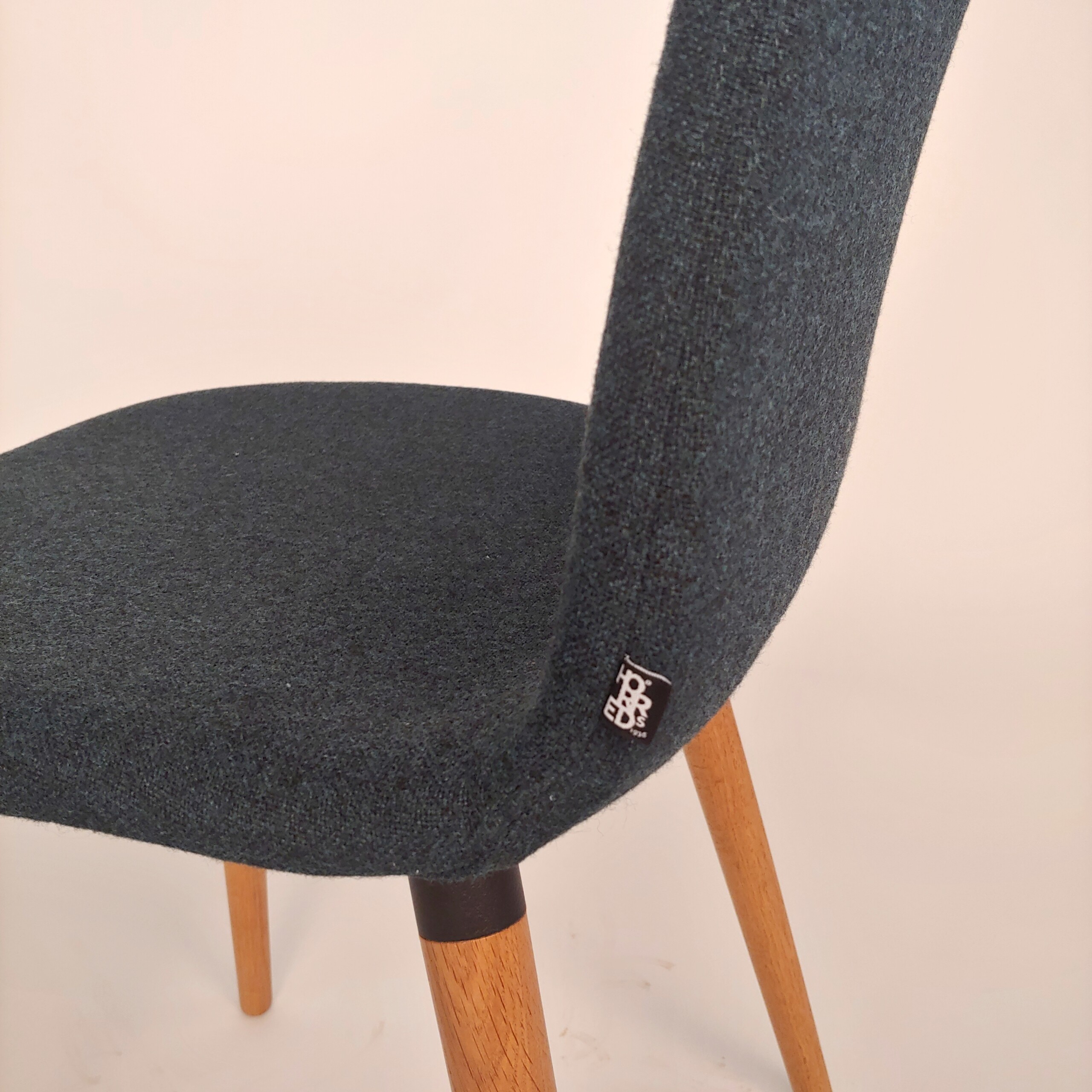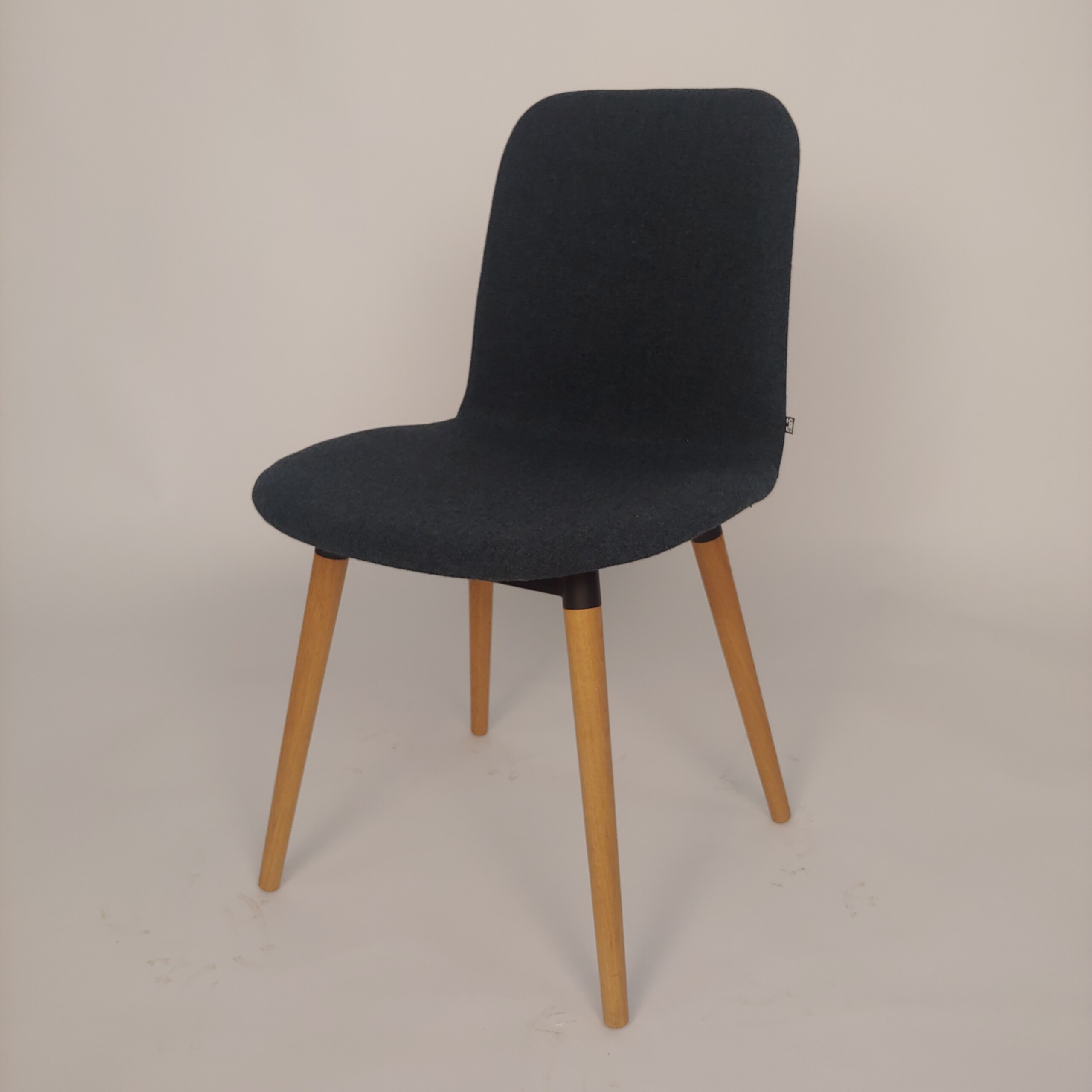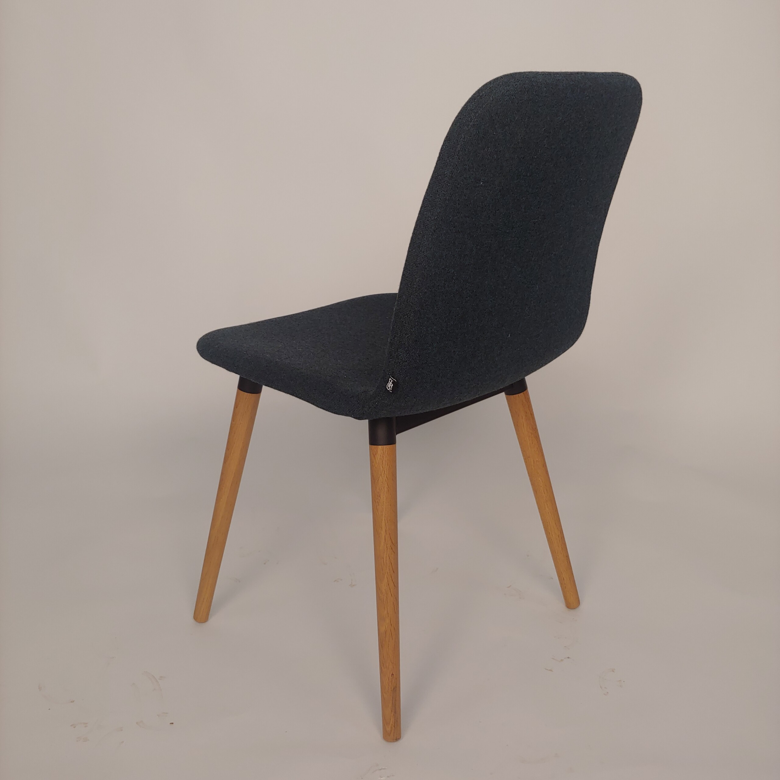 Seat and backrest in fabric (blue). Legs in wood (oak).