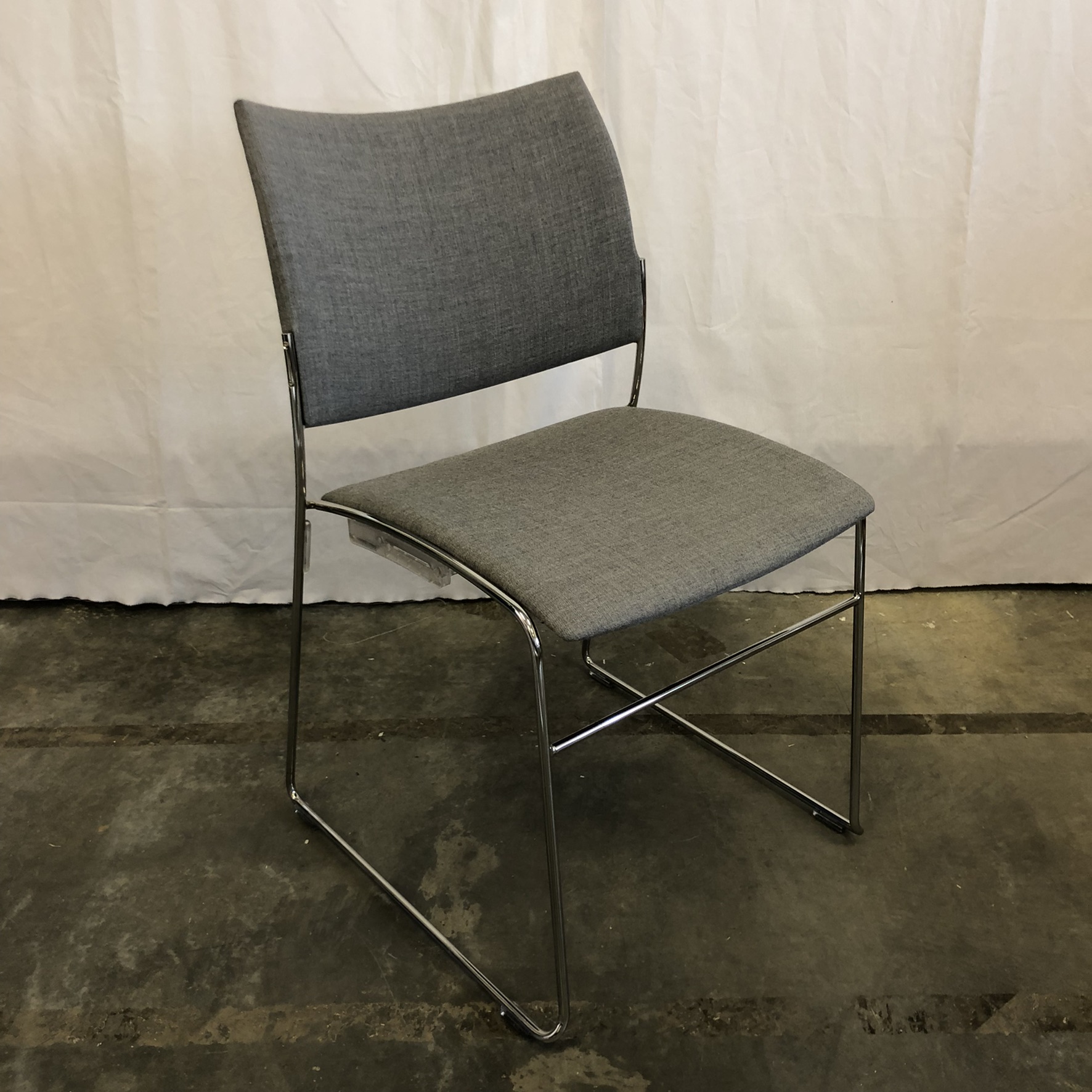 Seat and backrest in fabric (grey). Sledgebase in metal (chrome).