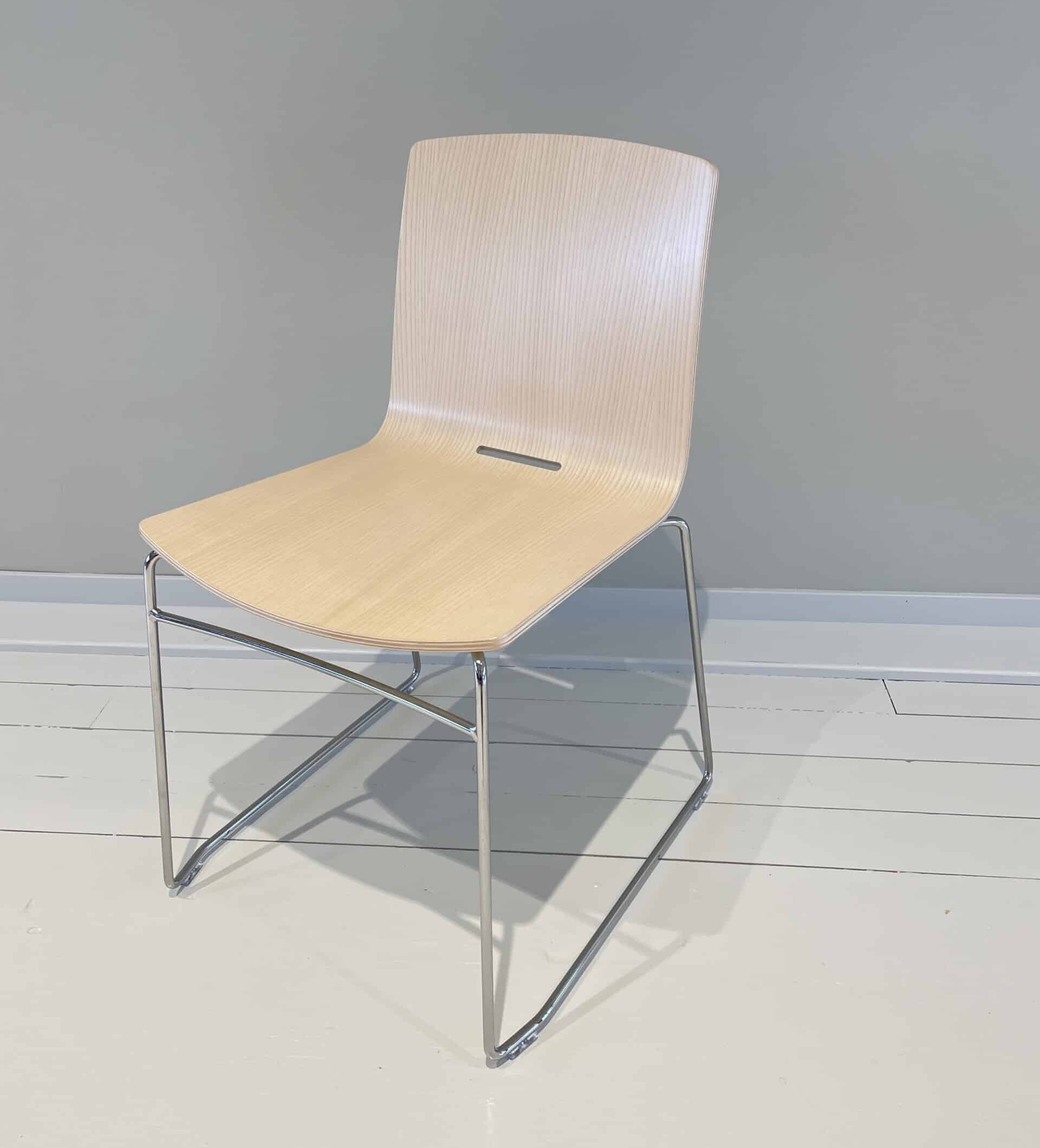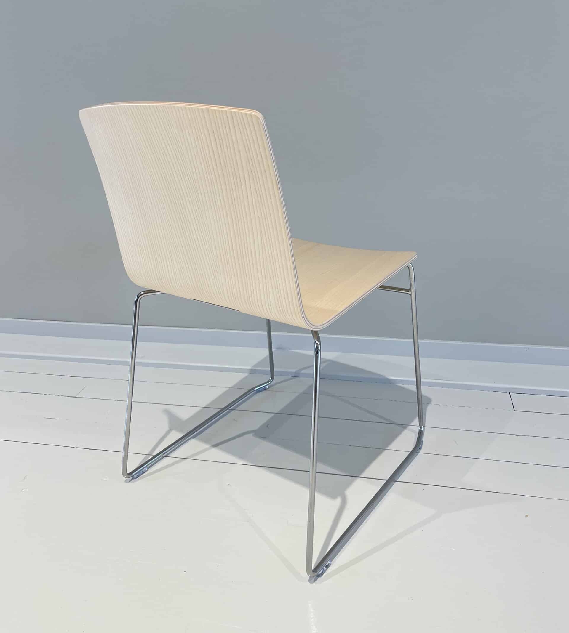 Seat and backrest in wood (ash). Sledgebase in metal (chrome).
