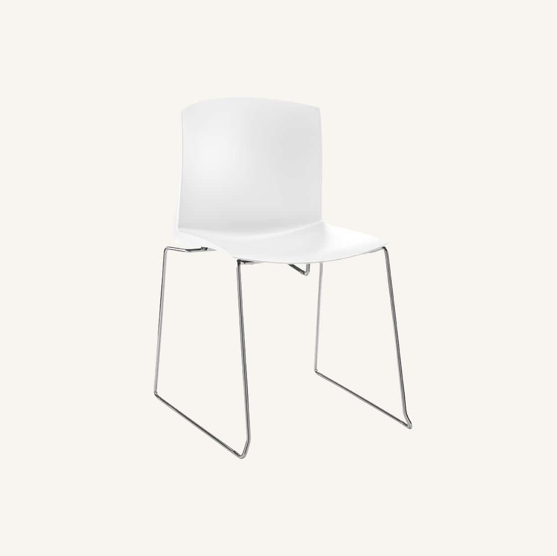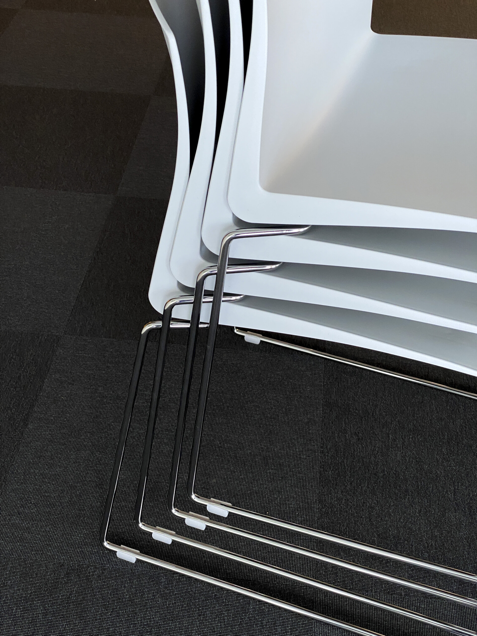 Seat and backrest in plastic (white). Sledgebase in metal (chrome).