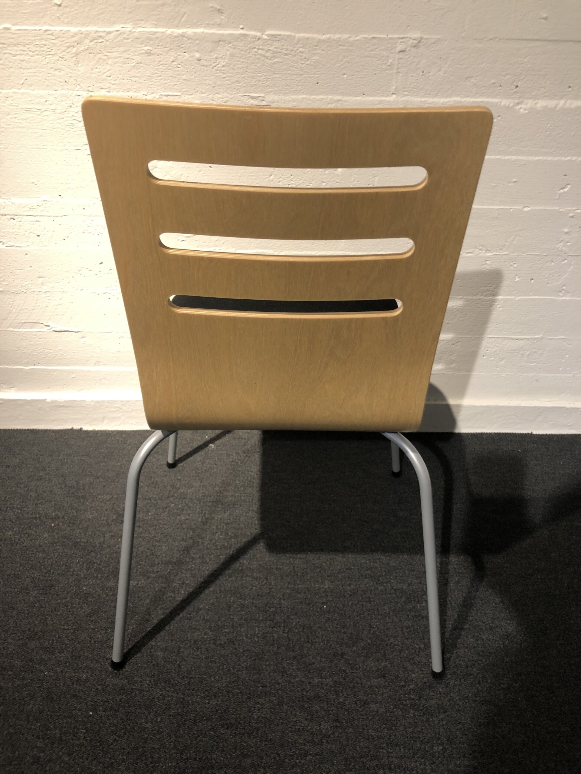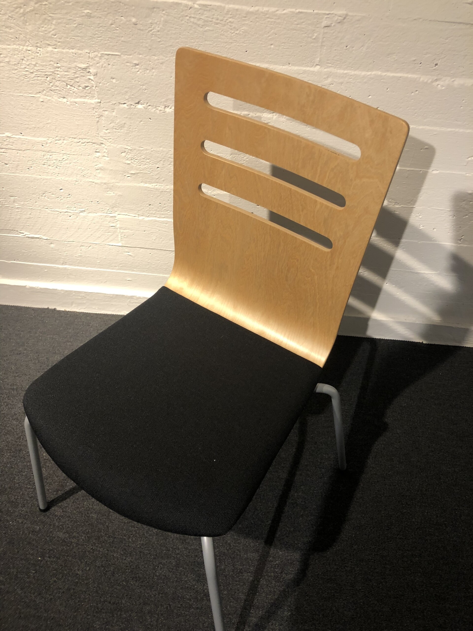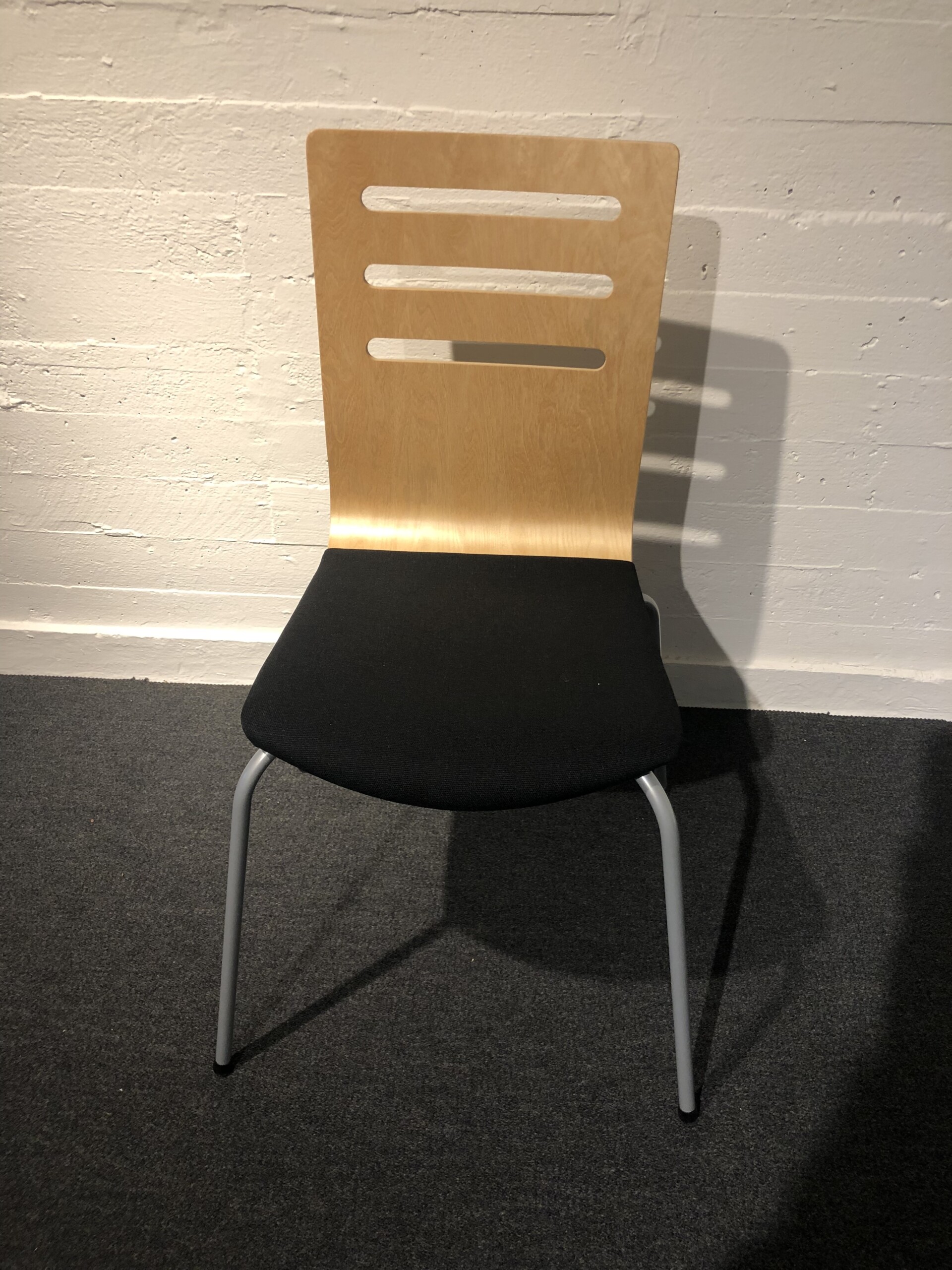 Seat in fabric (black). Backrest in wood (birch). Legs in metal (silver).