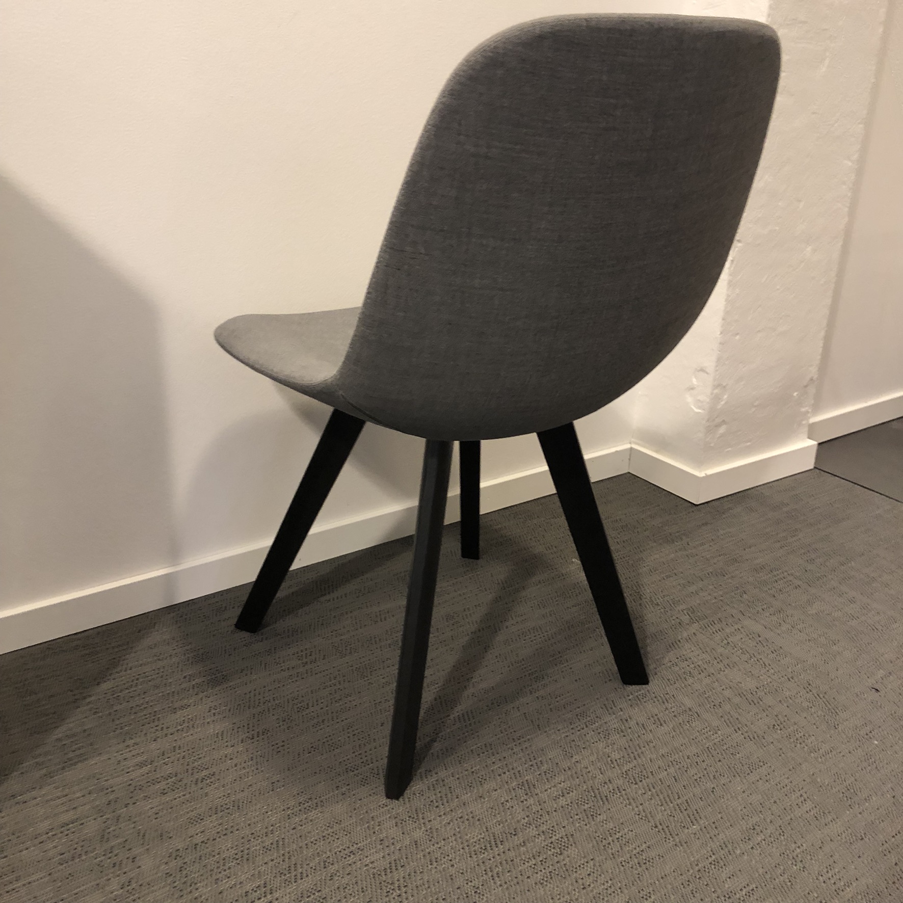 Seat and backrest in fabric (grey). Legs in wood (black).