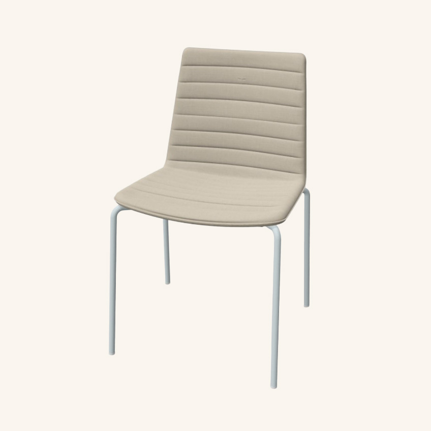 Seat and backrest in fabric (beige). Legs in metal (stainless).