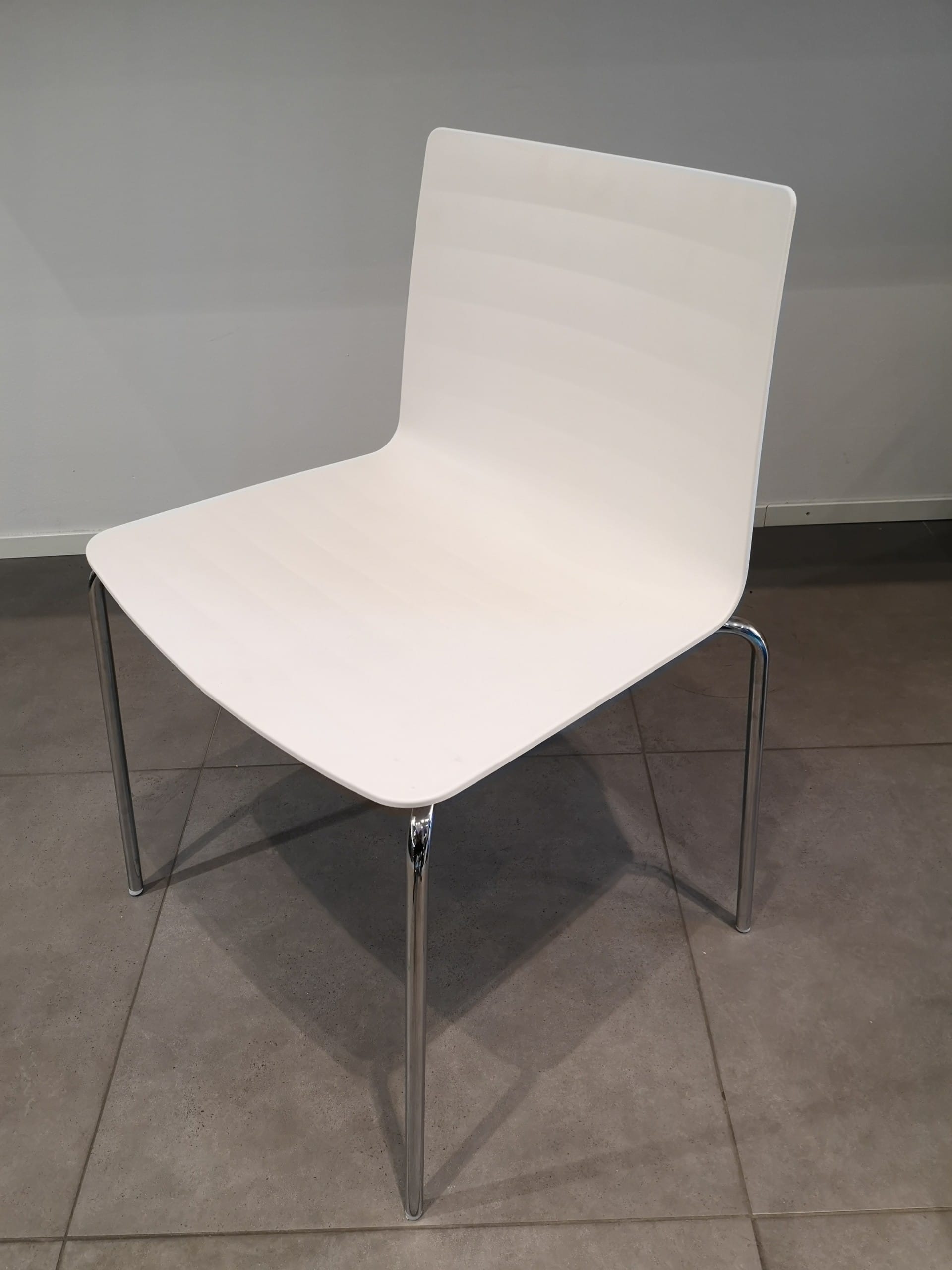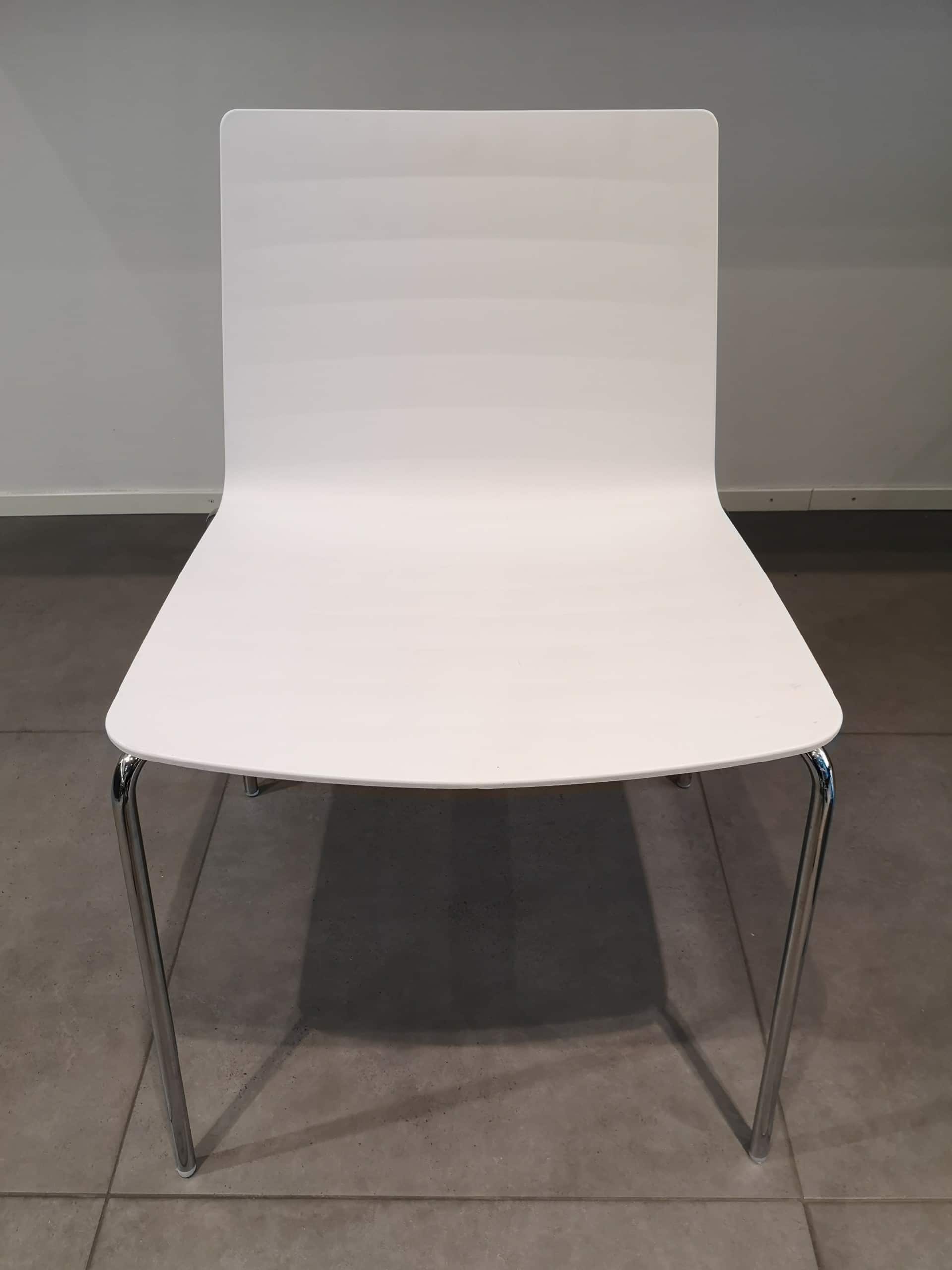 Seat and backrest in plastic (white). Legs in metal (chrome).