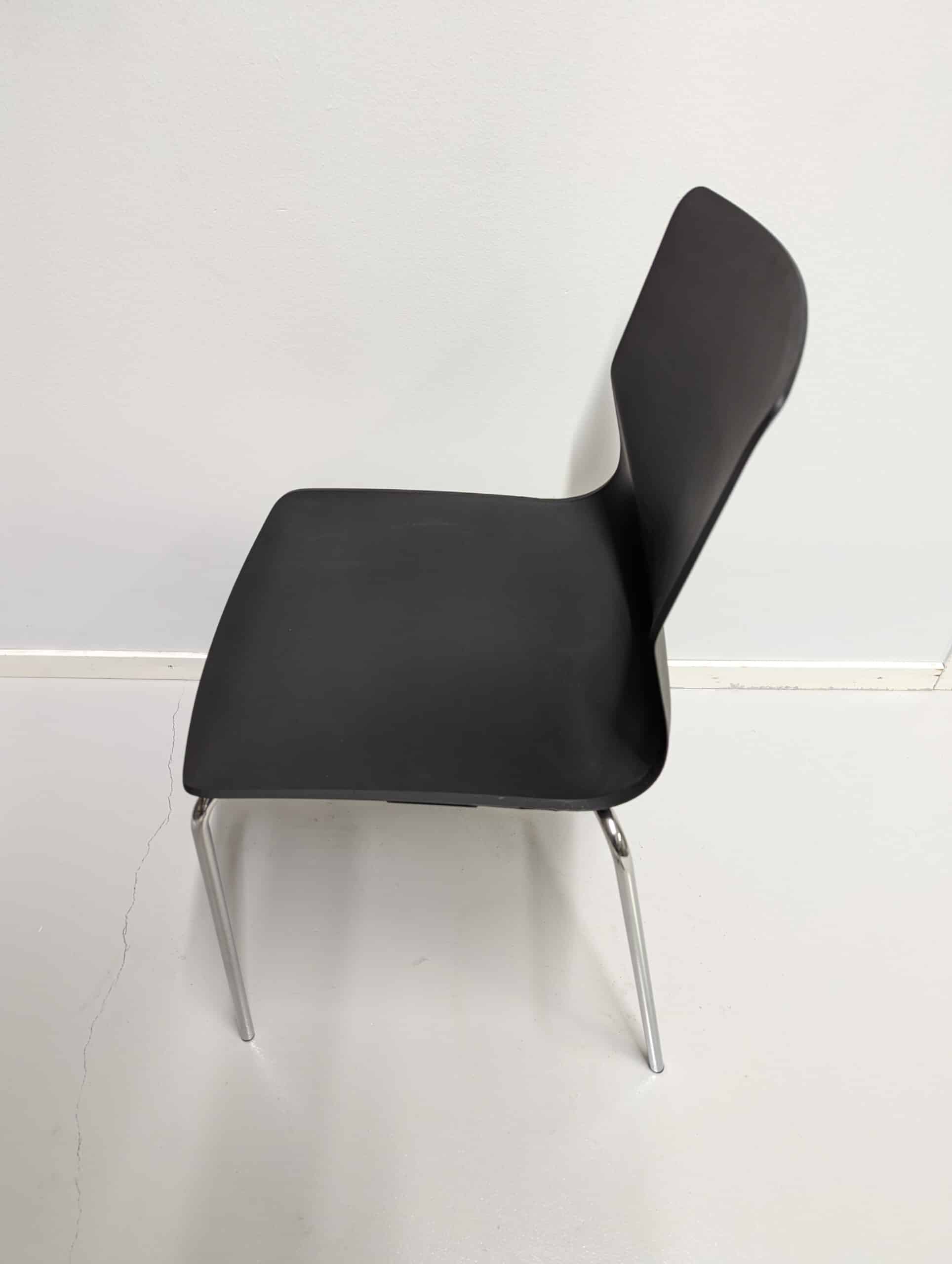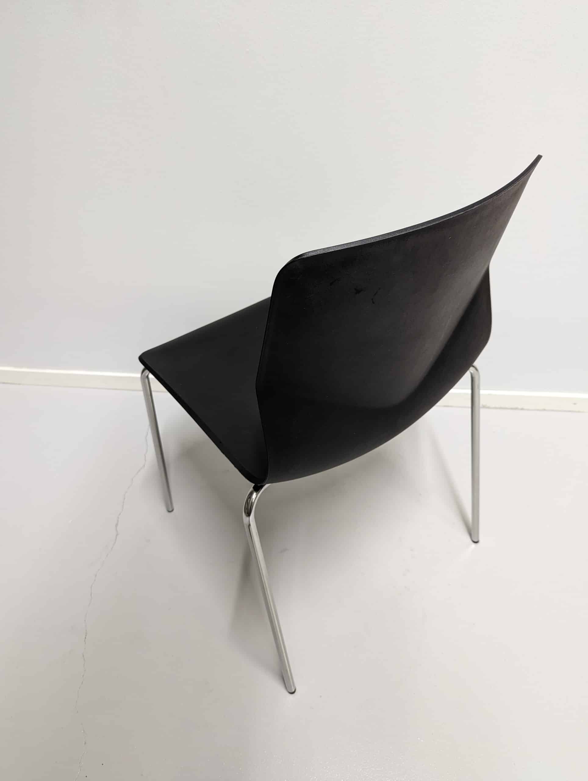 Seat and backrest in plastic (black). Legs in metal (chrome).