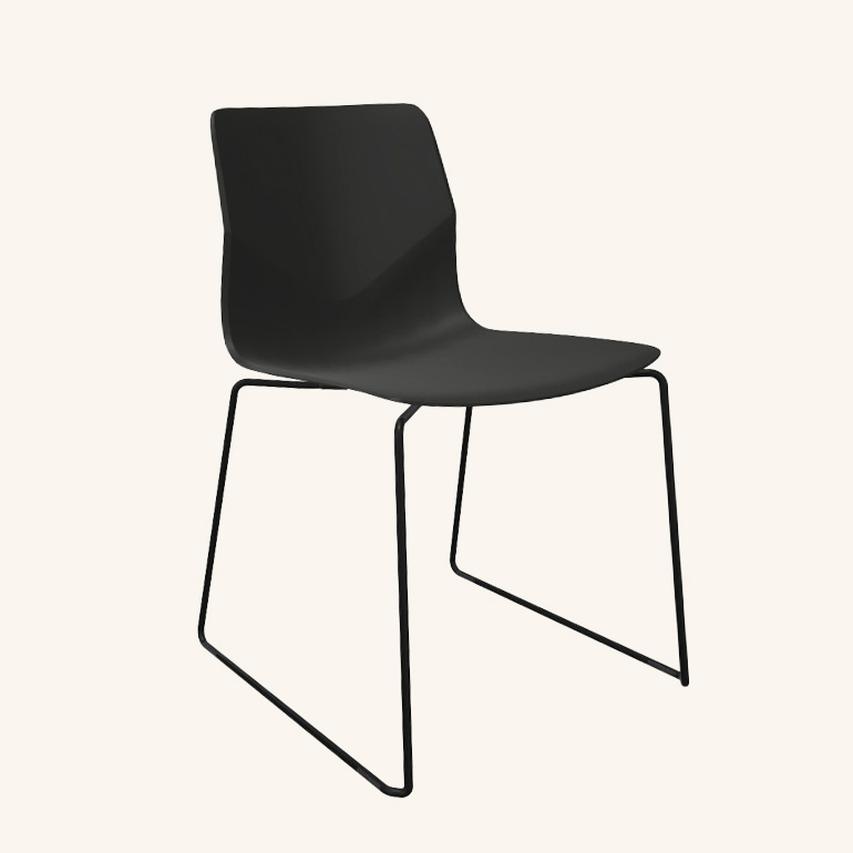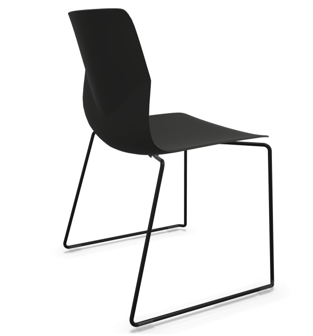 Seat and backrest in plastic (black). Sledgebase in metal (black).