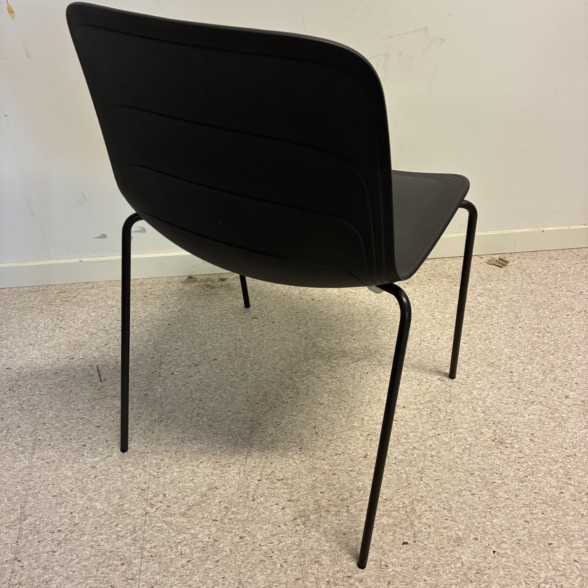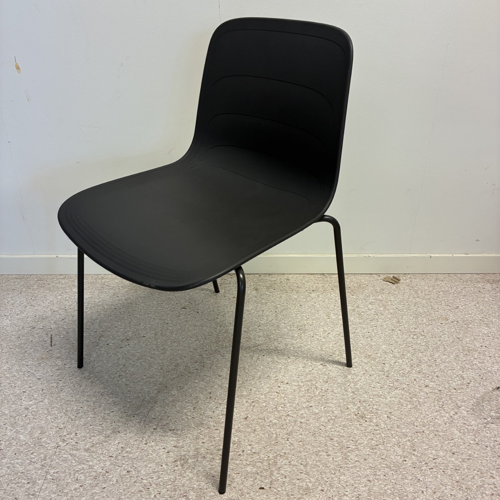 Seat and backrest in plastic (grey). Legs in metal (grey).