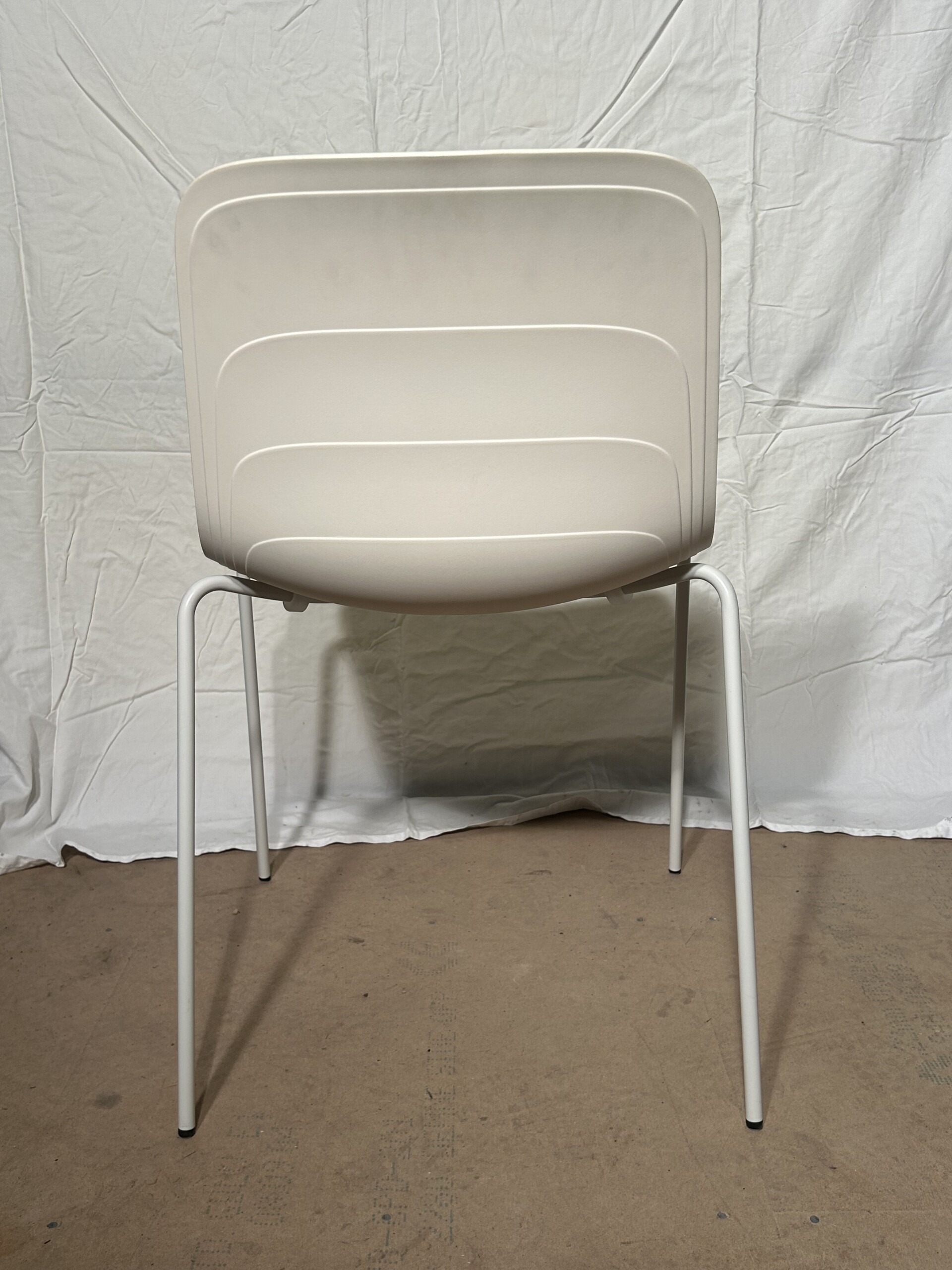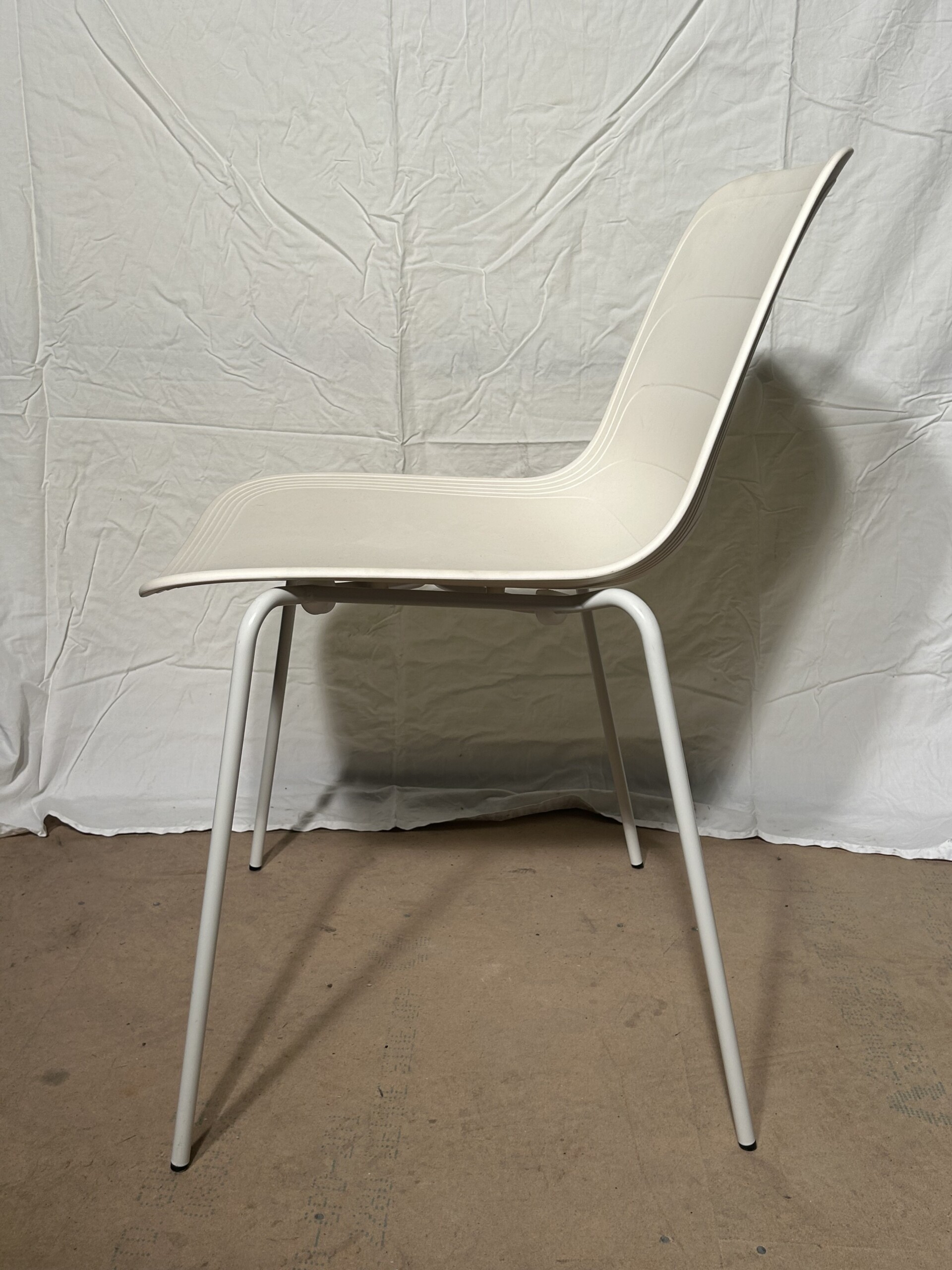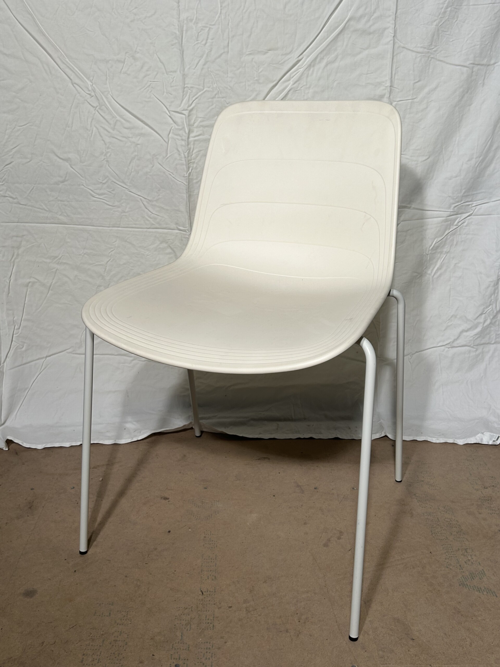 Seat and backrest in plastic (white). Legs in metal (white).