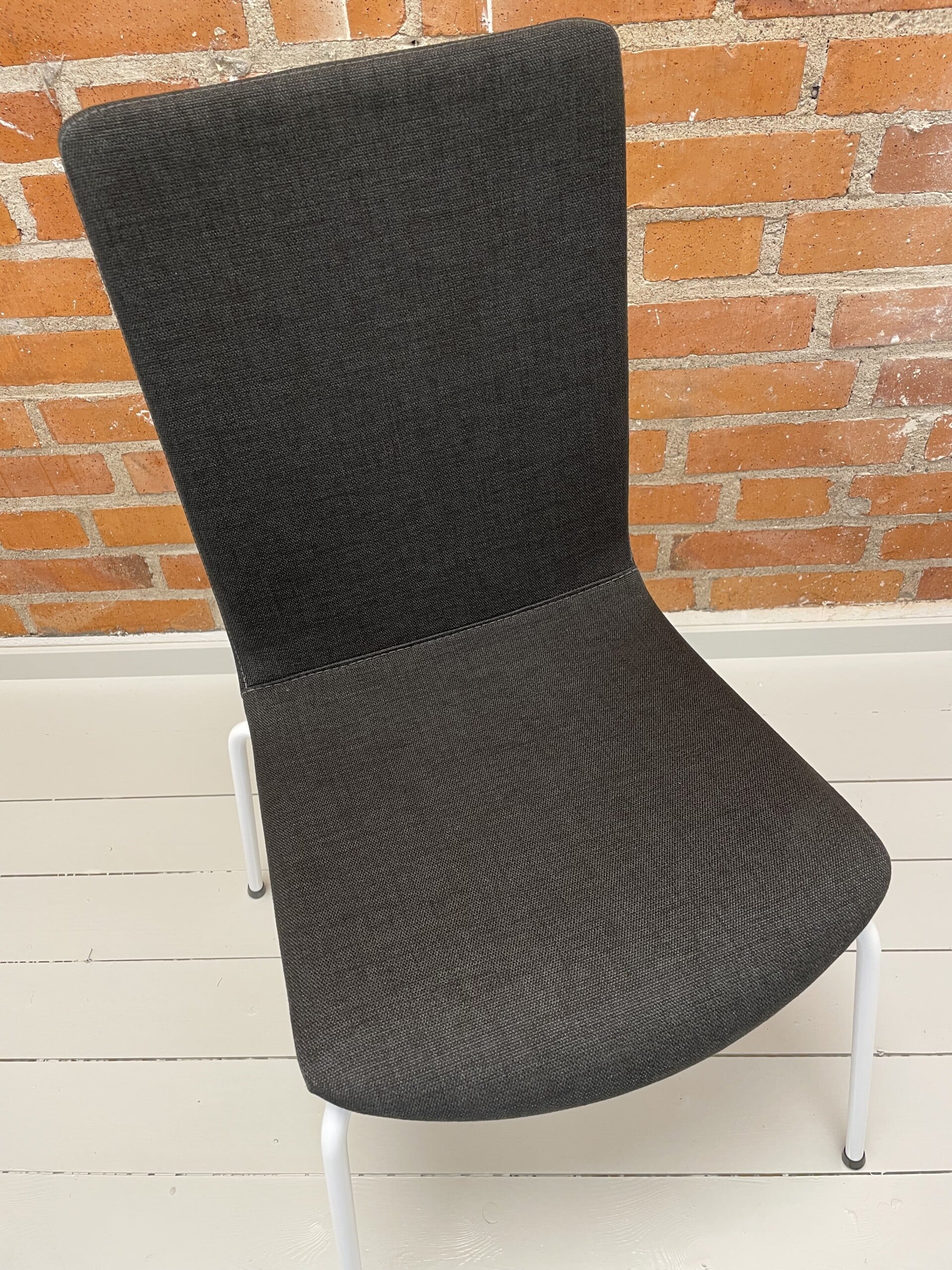 Seat and backrest in fabric (grey). Legs in metal (white).