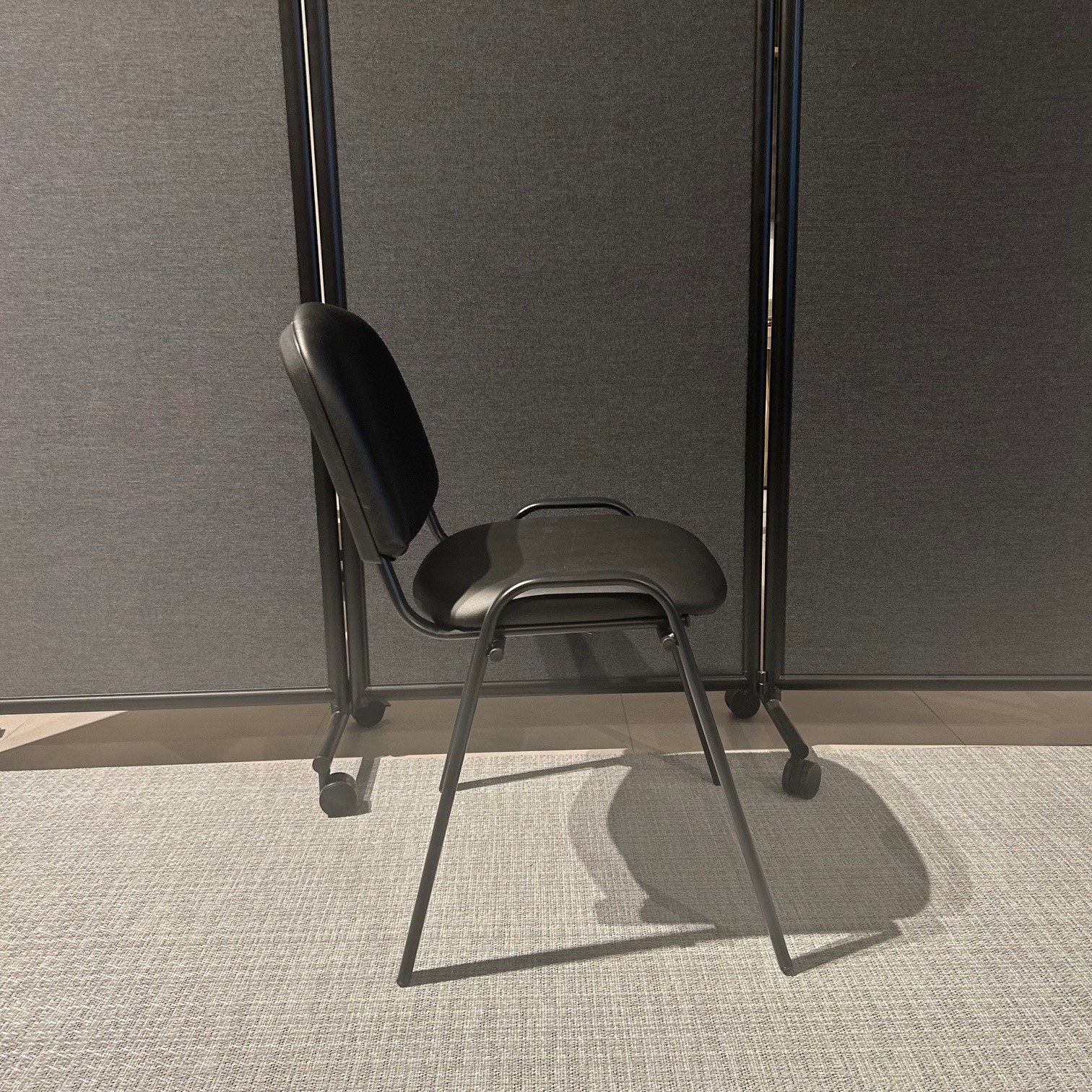 Seat and backrest in artificial leather (black). Legs in metal (black).