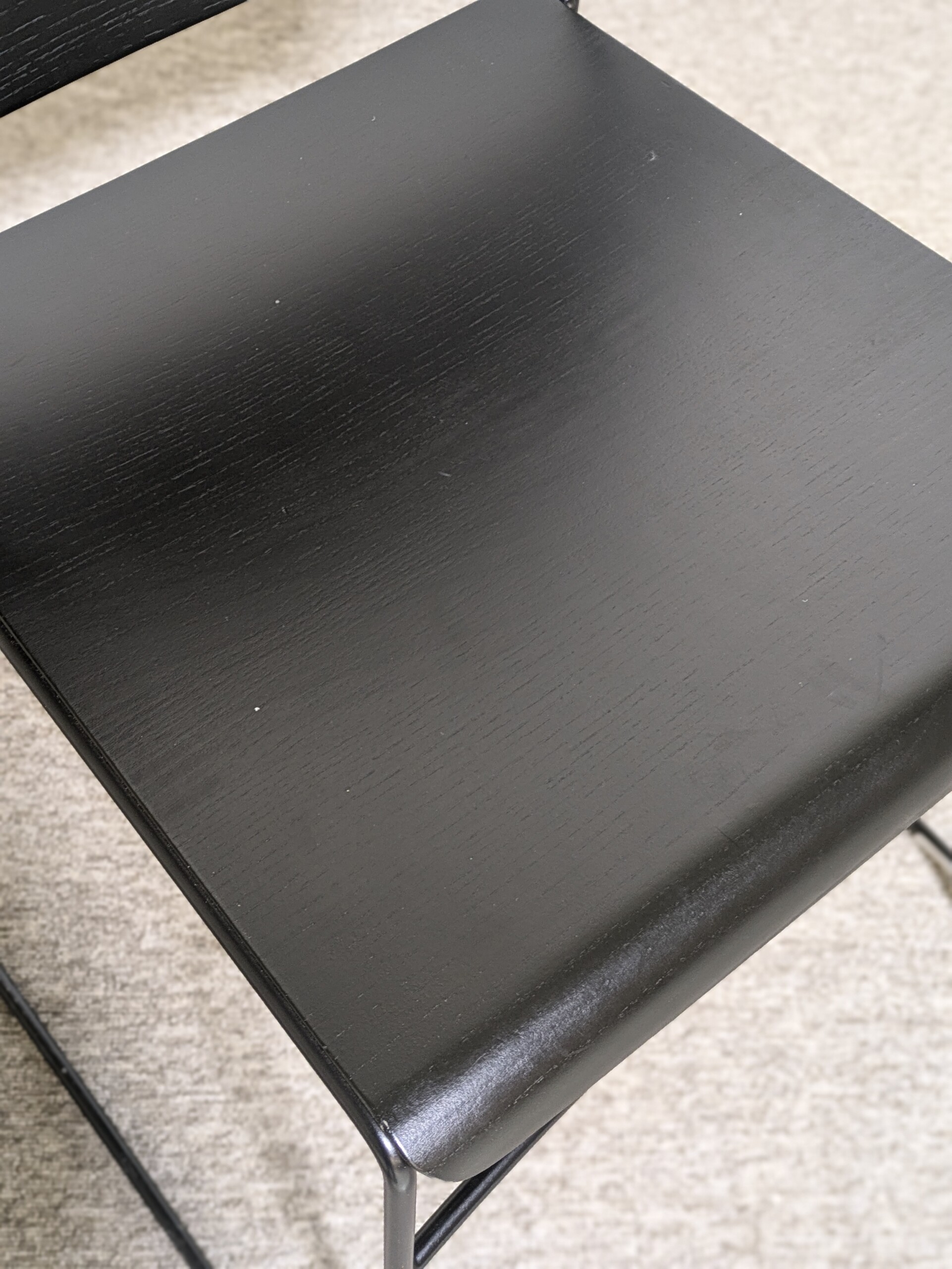 Seat and backrest in wood (black). Sledgebase in metal (black).