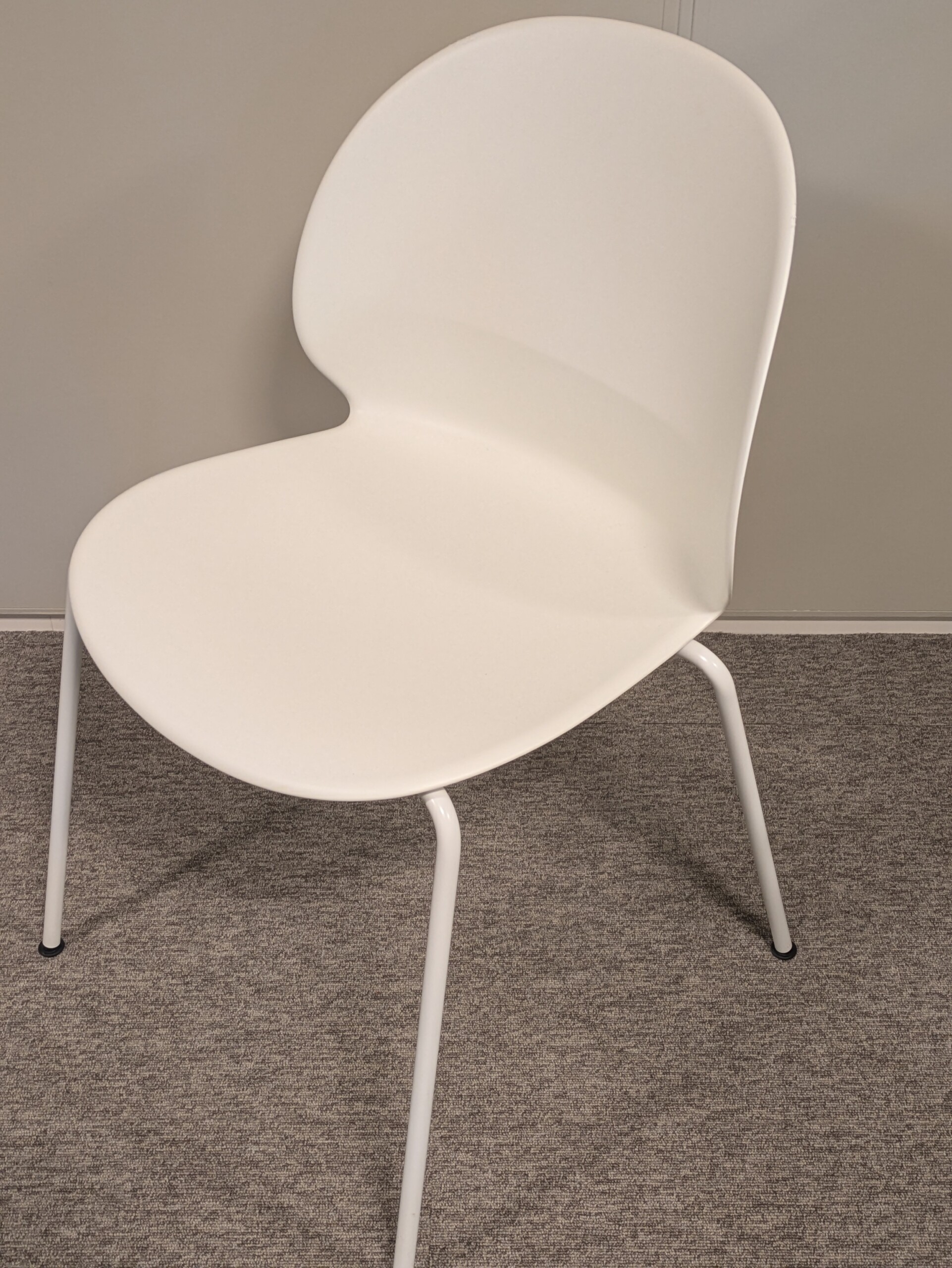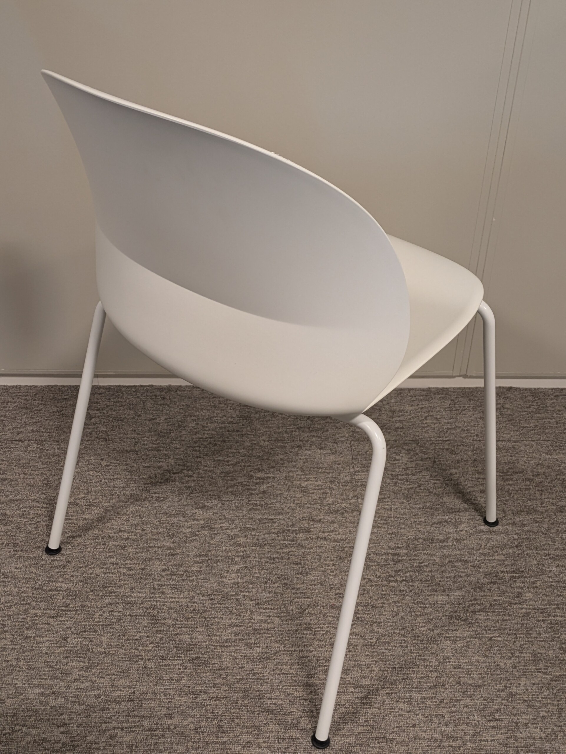 Seat and backrest in plastic (white). Legs in metal (white).