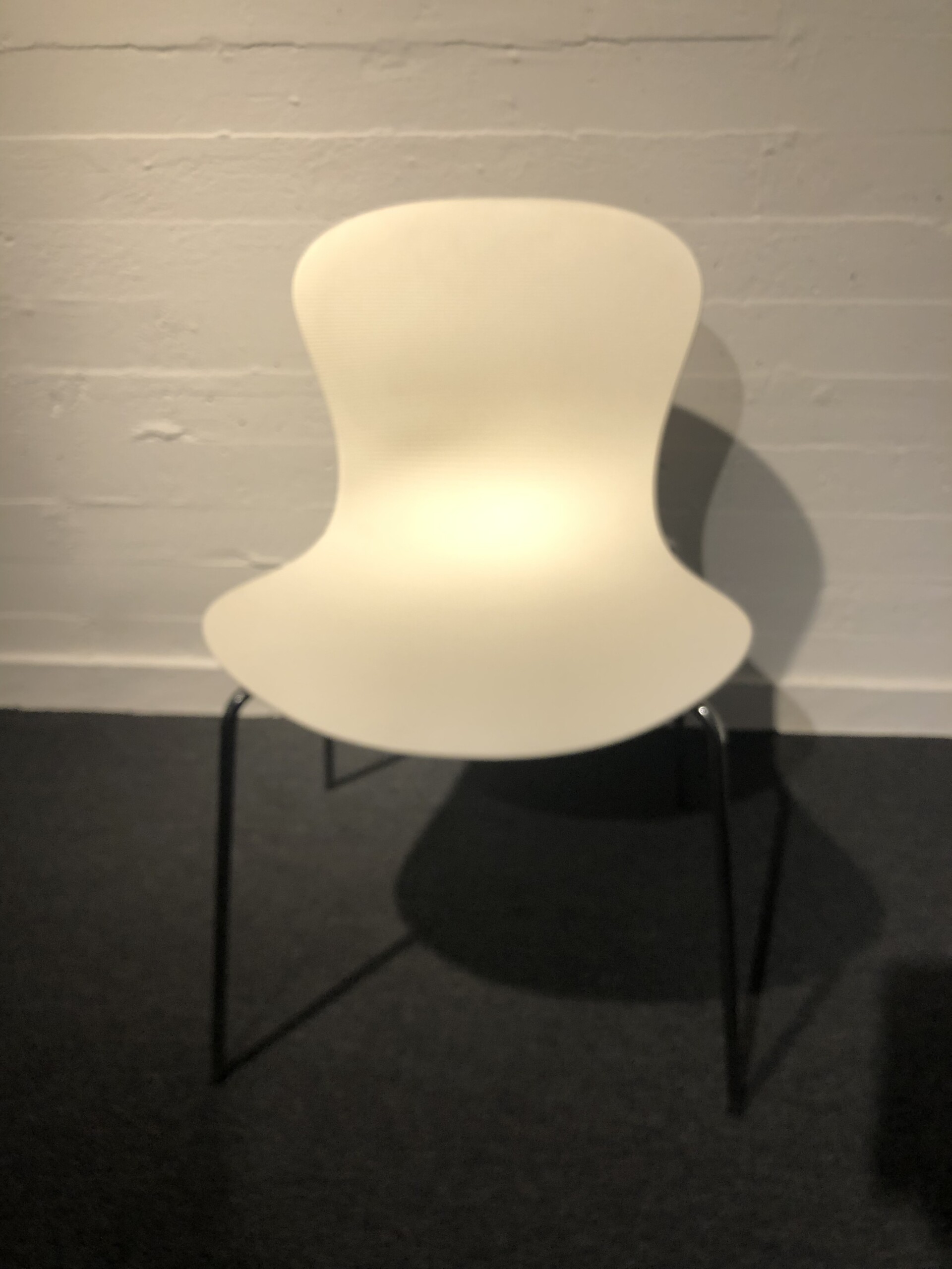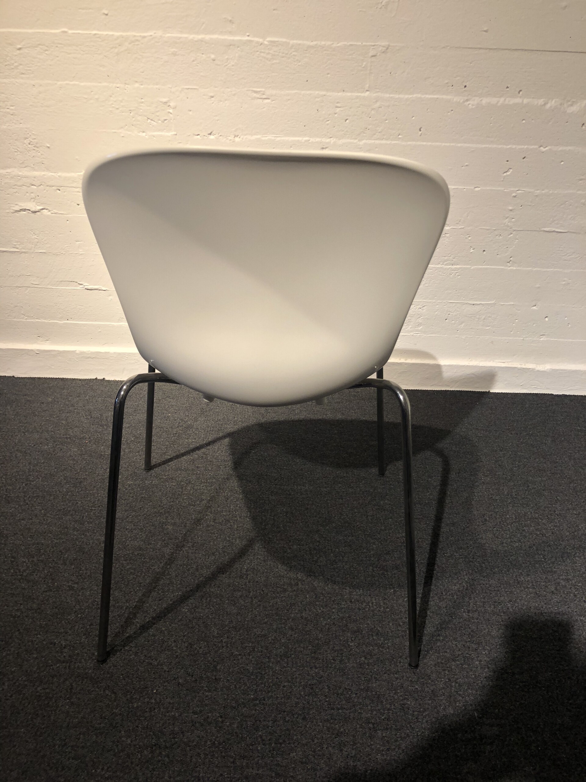 Seat and backrest in plastic (white). Legs in metal (chrome).