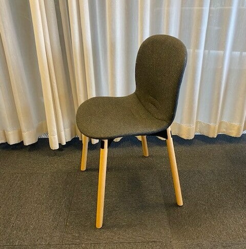 Seat and backrest in fabric (grey). Legs in wood (oak).
