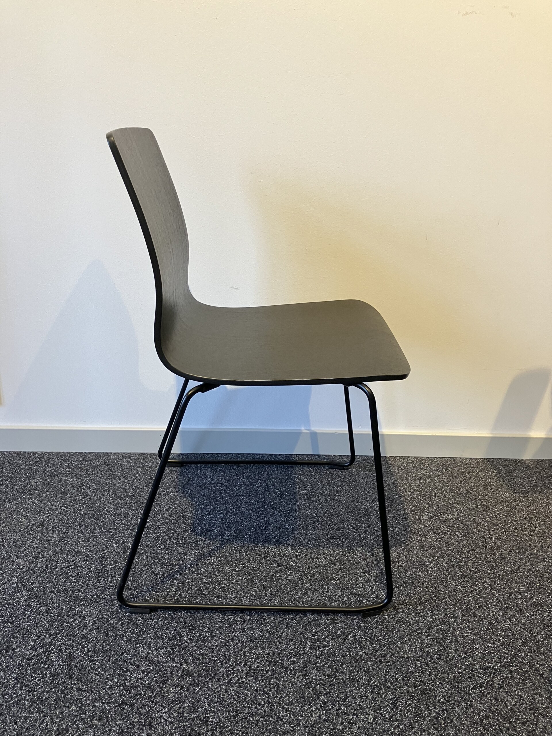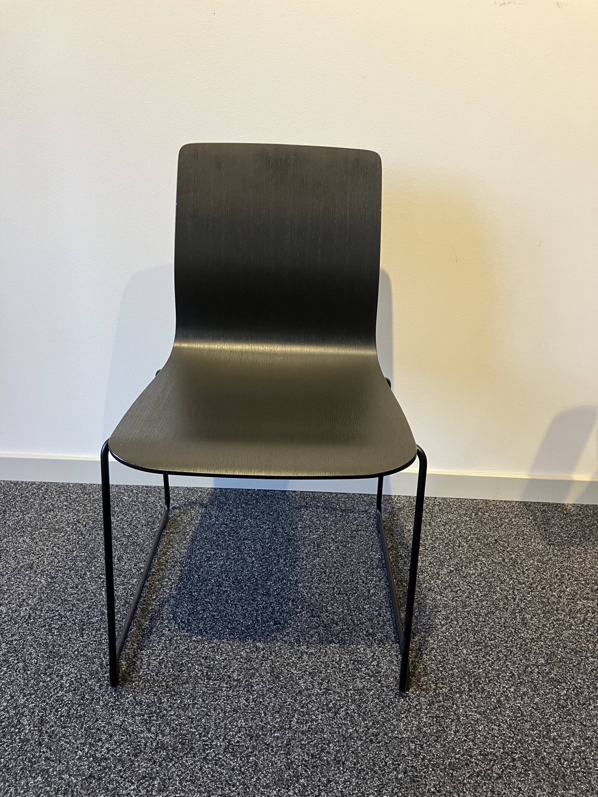 Seat and backrest in wood (black). Sledgebase in metal (black).