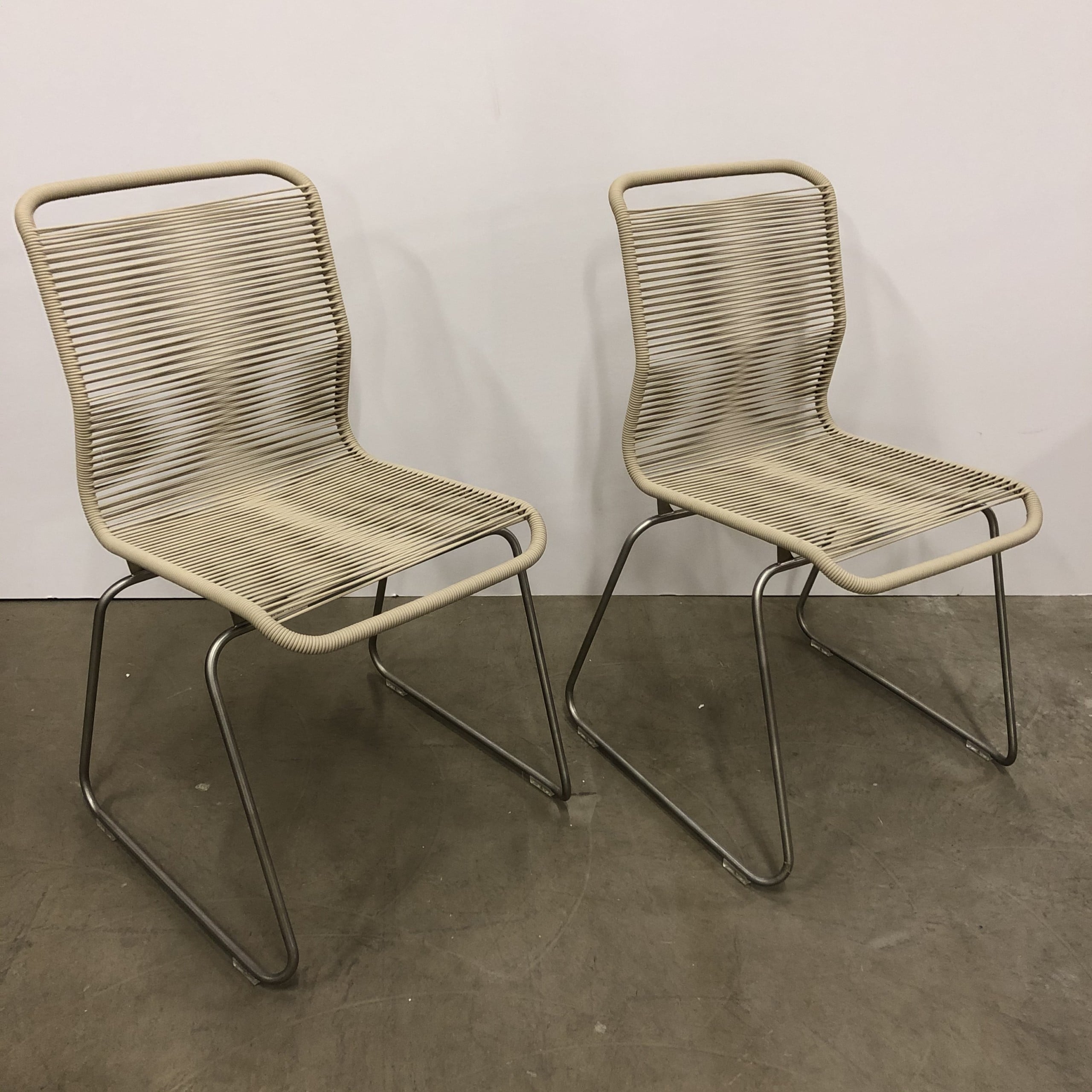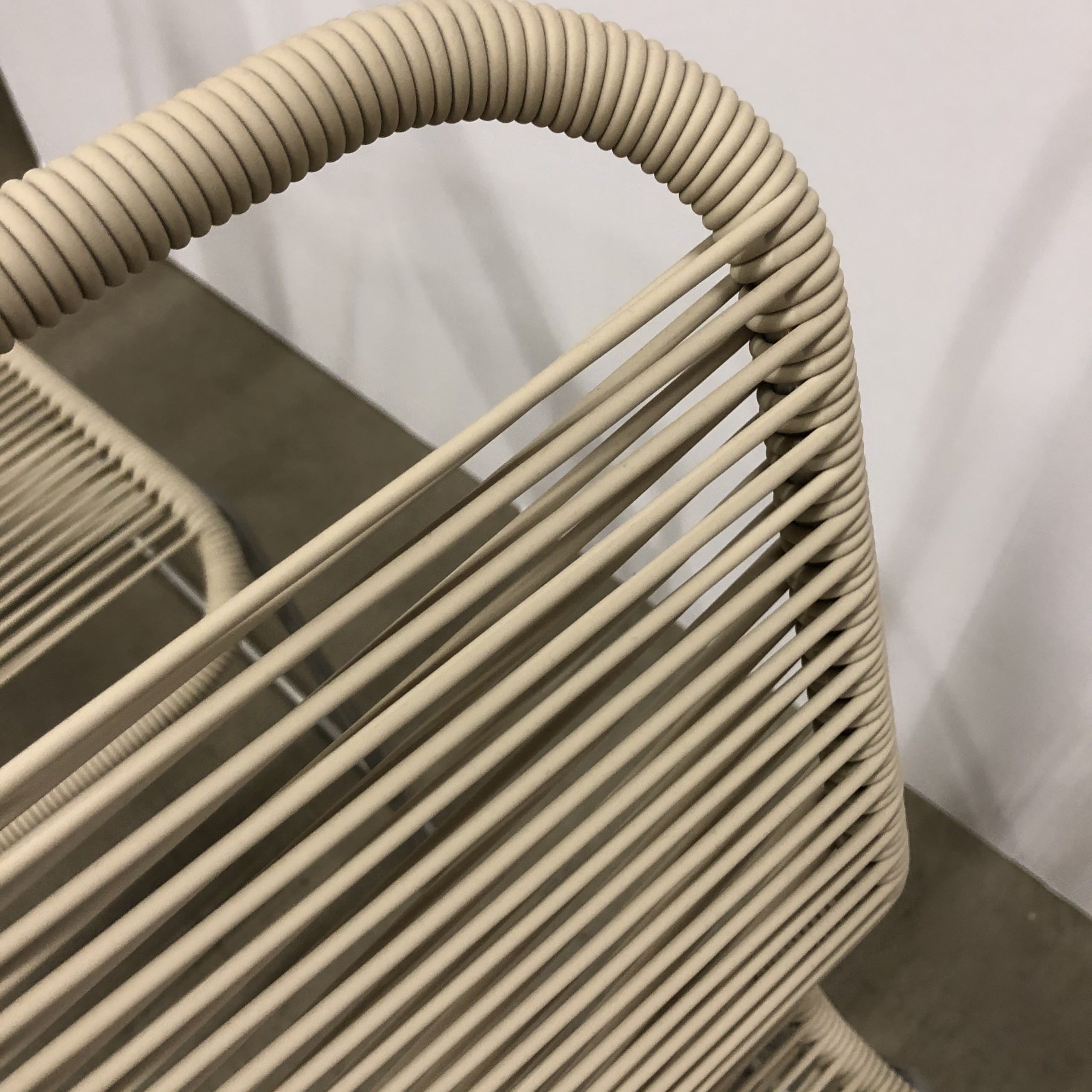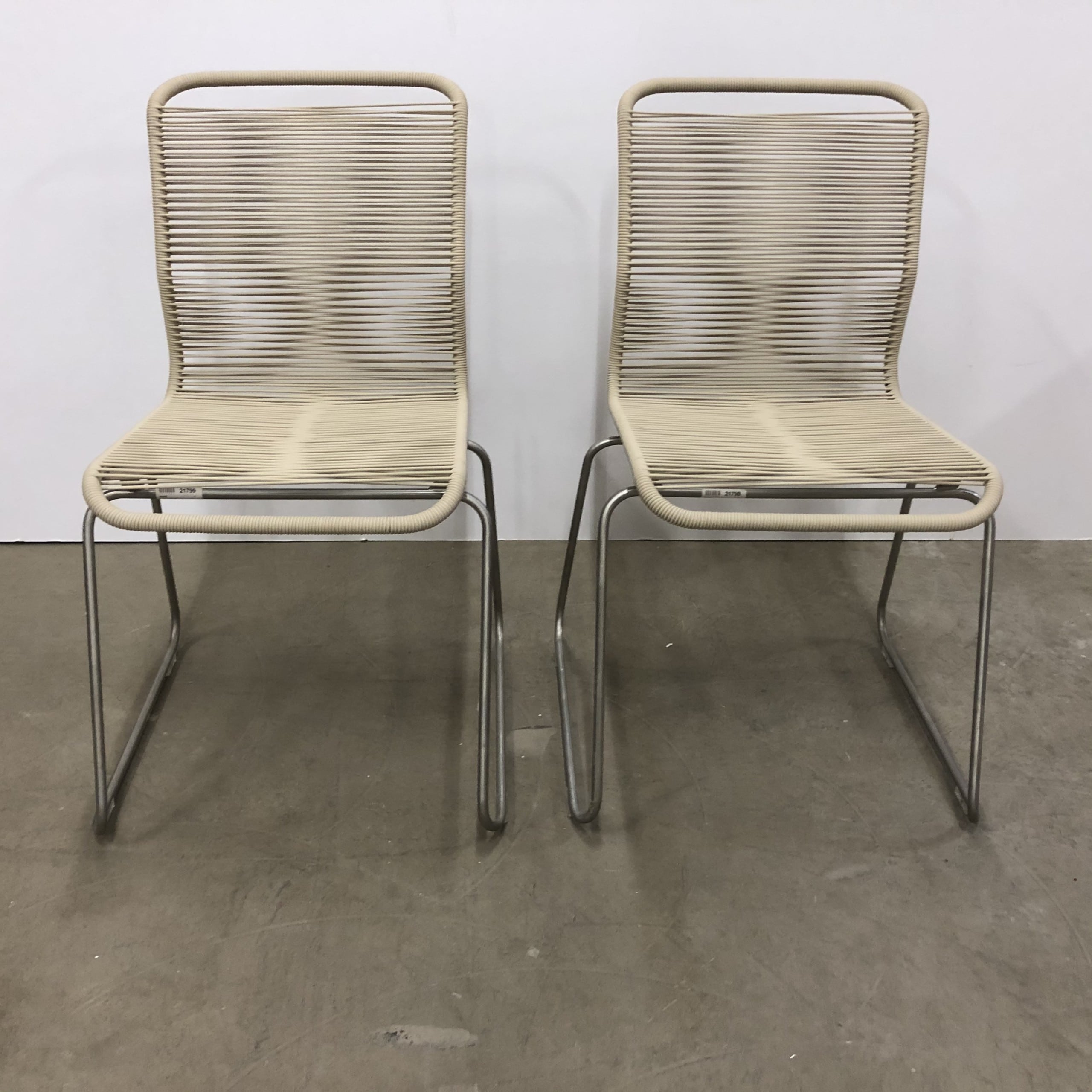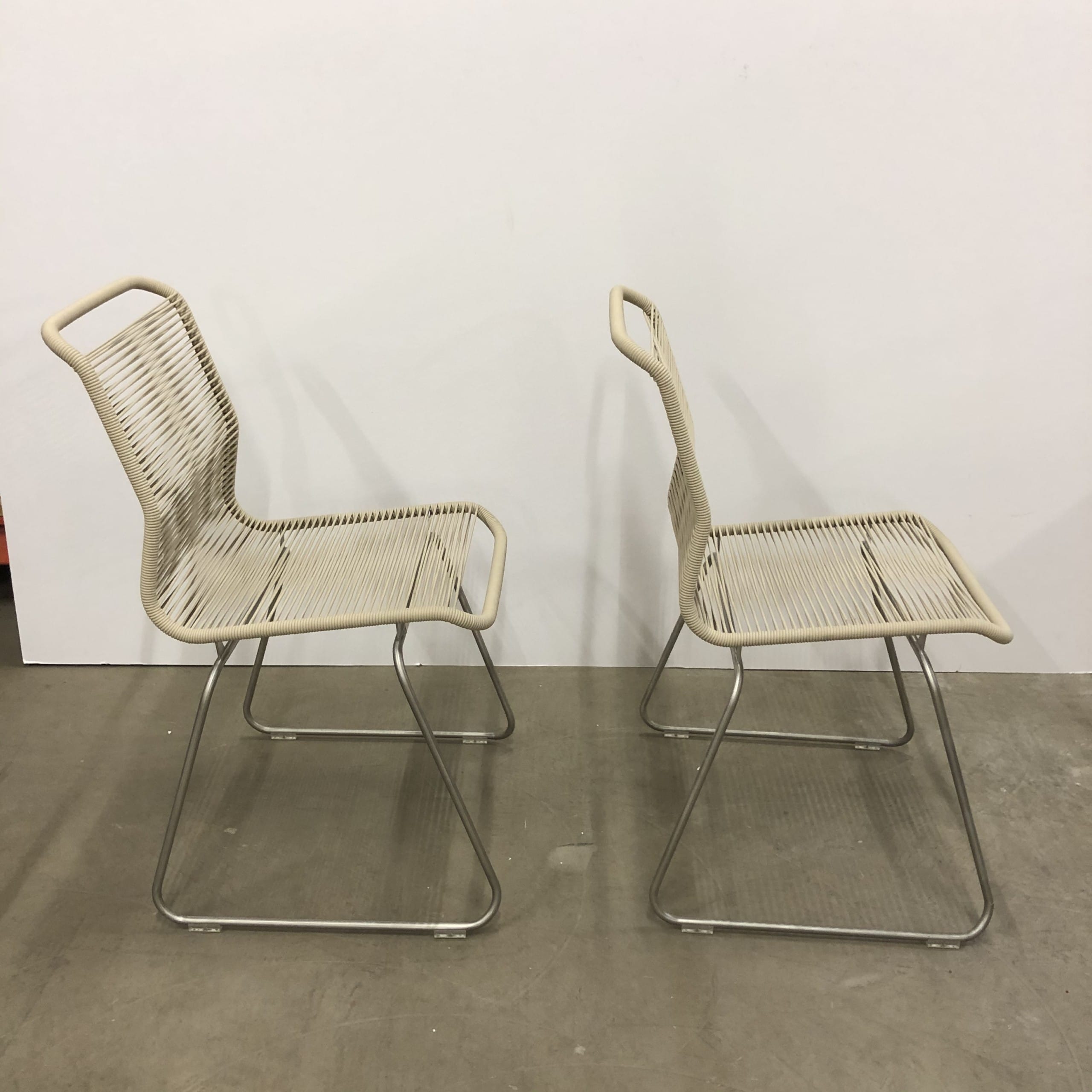 Seat and backrest in plastic (beige). Sledgebase in metal (aluminium).