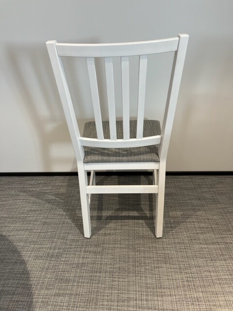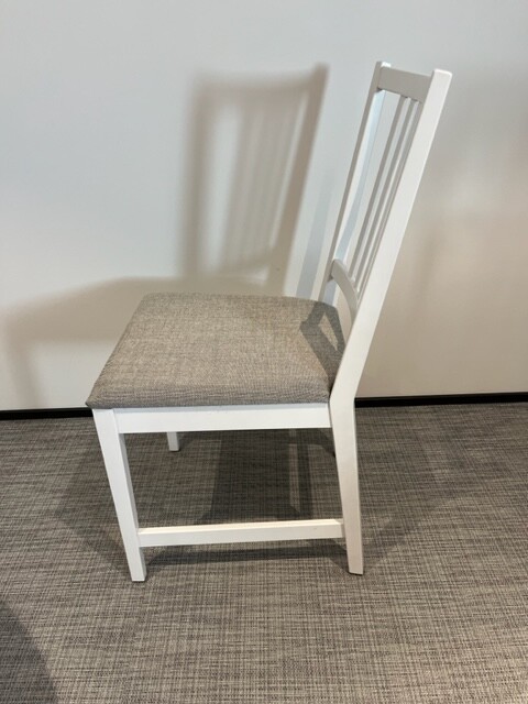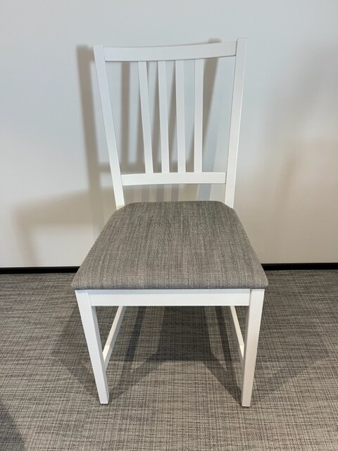 Seat in fabric (beige). Backrest in wood (white). Legs in wood (white).