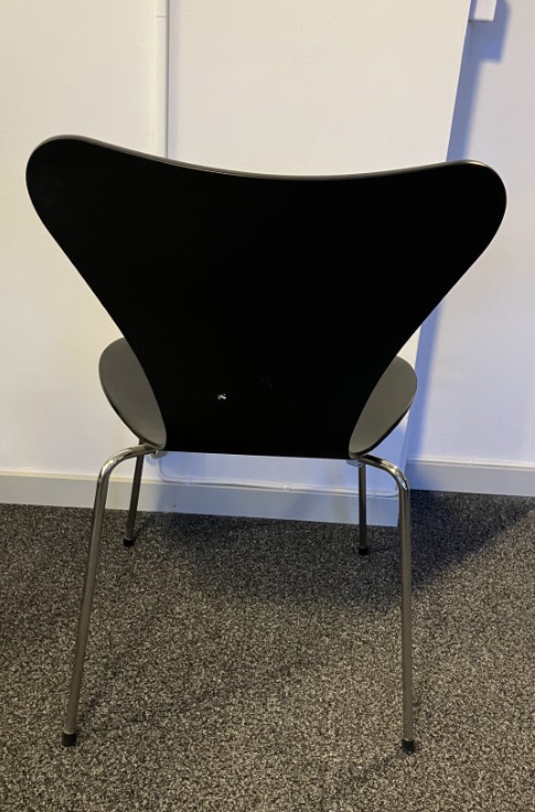 Seat and backrest in laminat (black). Legs in metal (chrome).