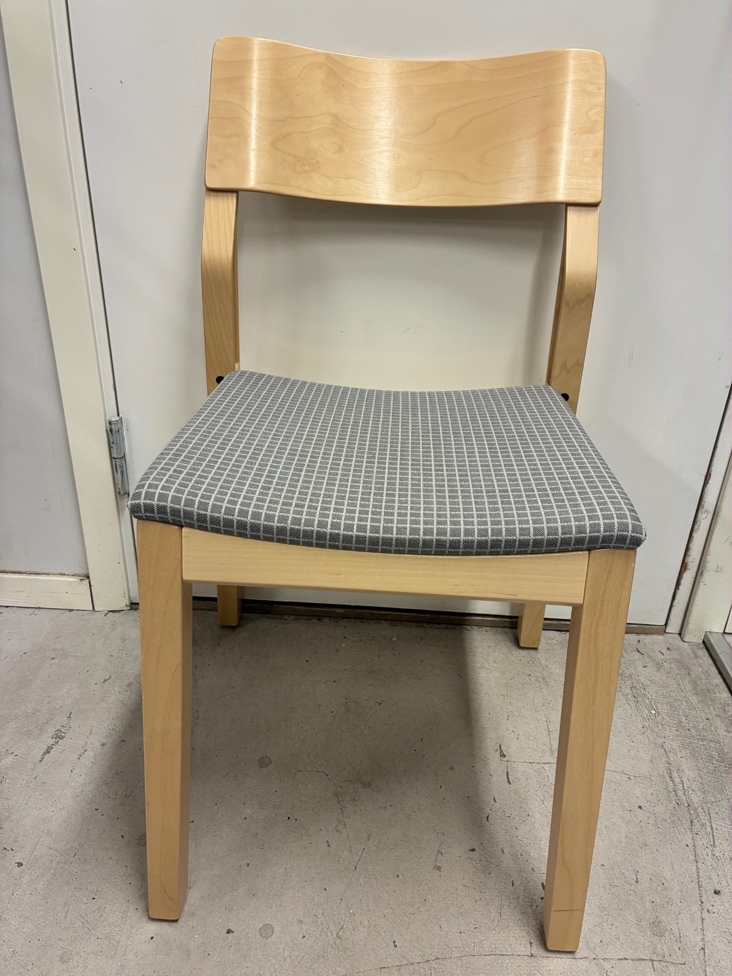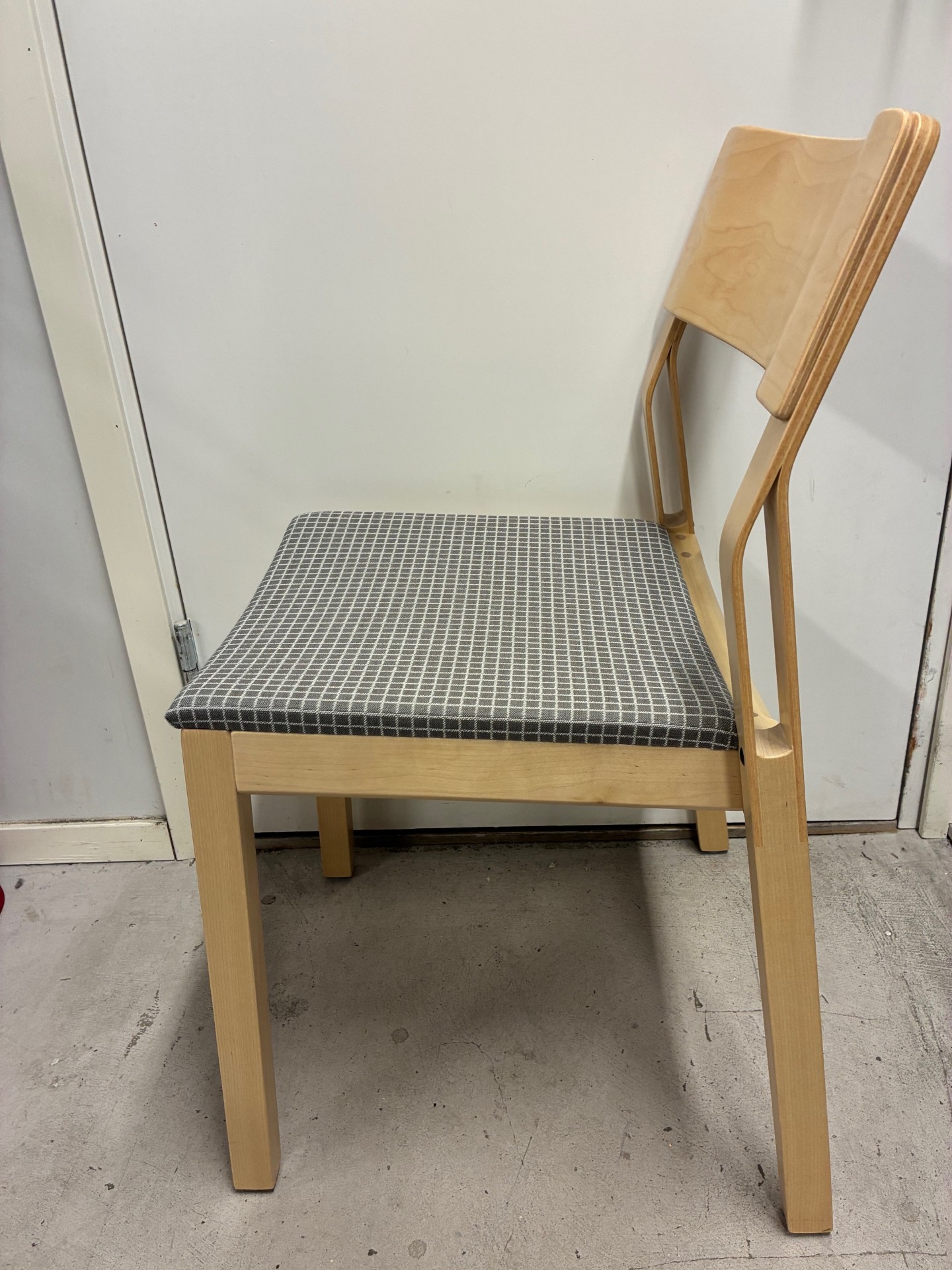 Seat in fabric (grey). Backrest in wood (birch). Legs in wood (birch).