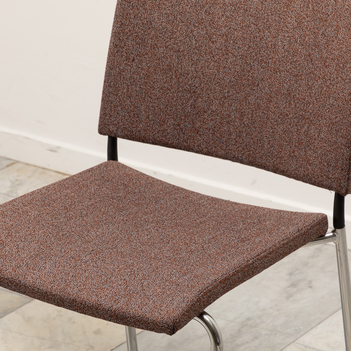 Seat and backrest in fabric (red). Legs in metal (chrome).