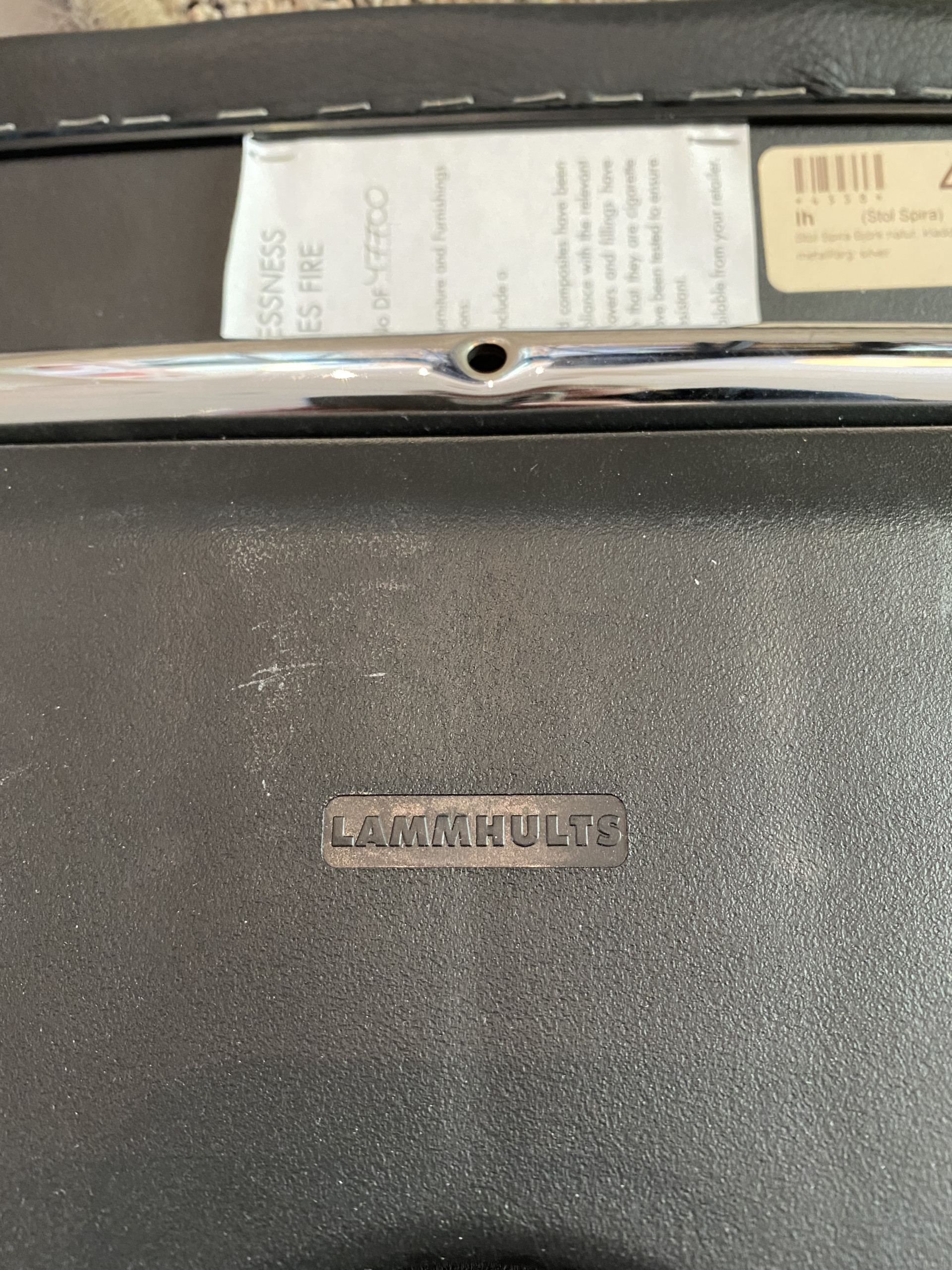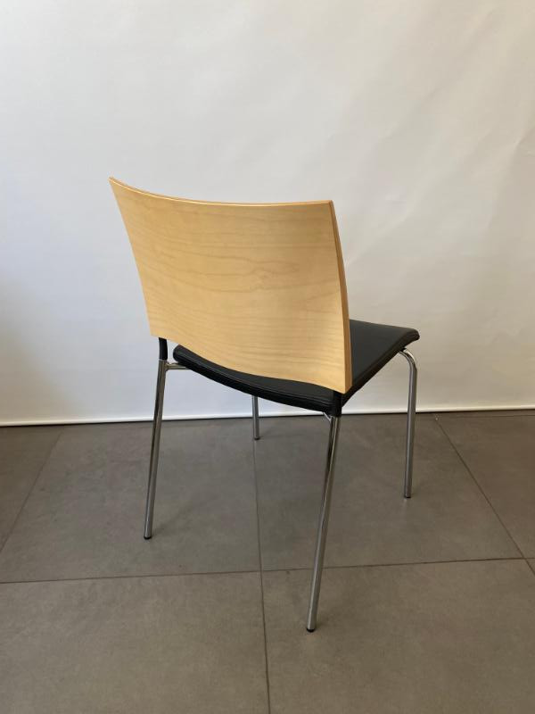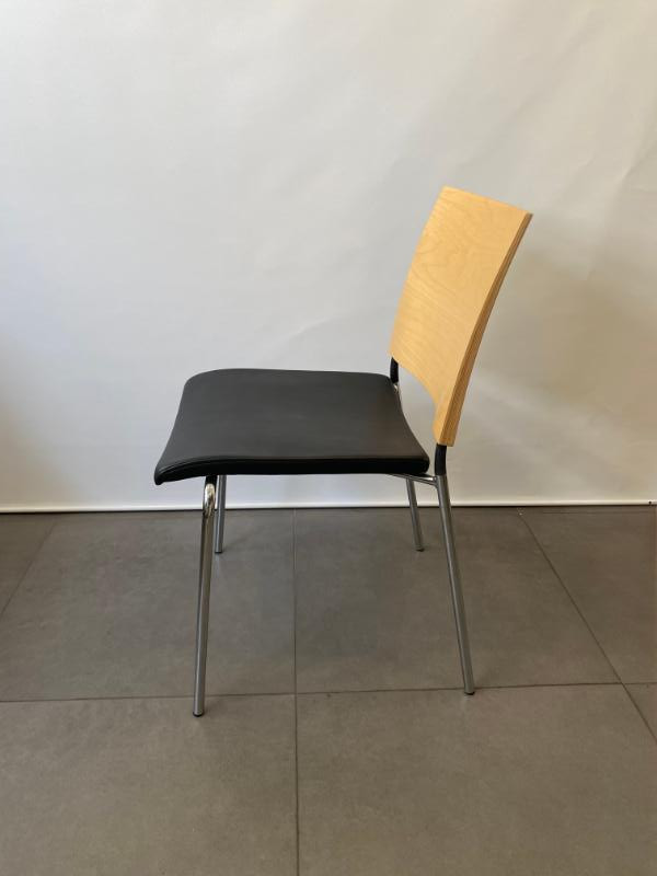 Seat in artificial leather (black). Backrest in wood (birch). Legs in metal (chrome).