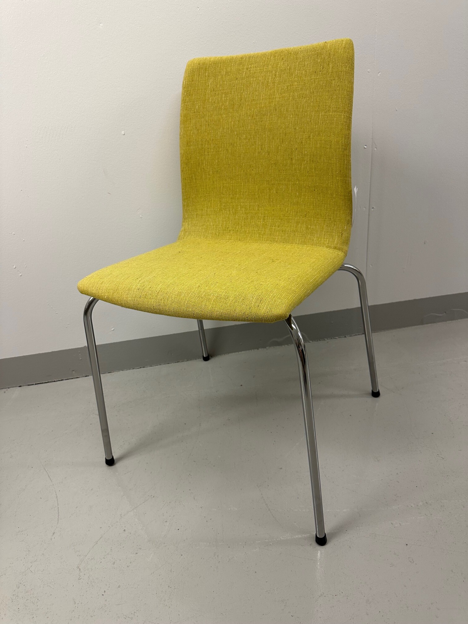 Seat and backrest in fabric (yellow). Legs in metal (chrome).
