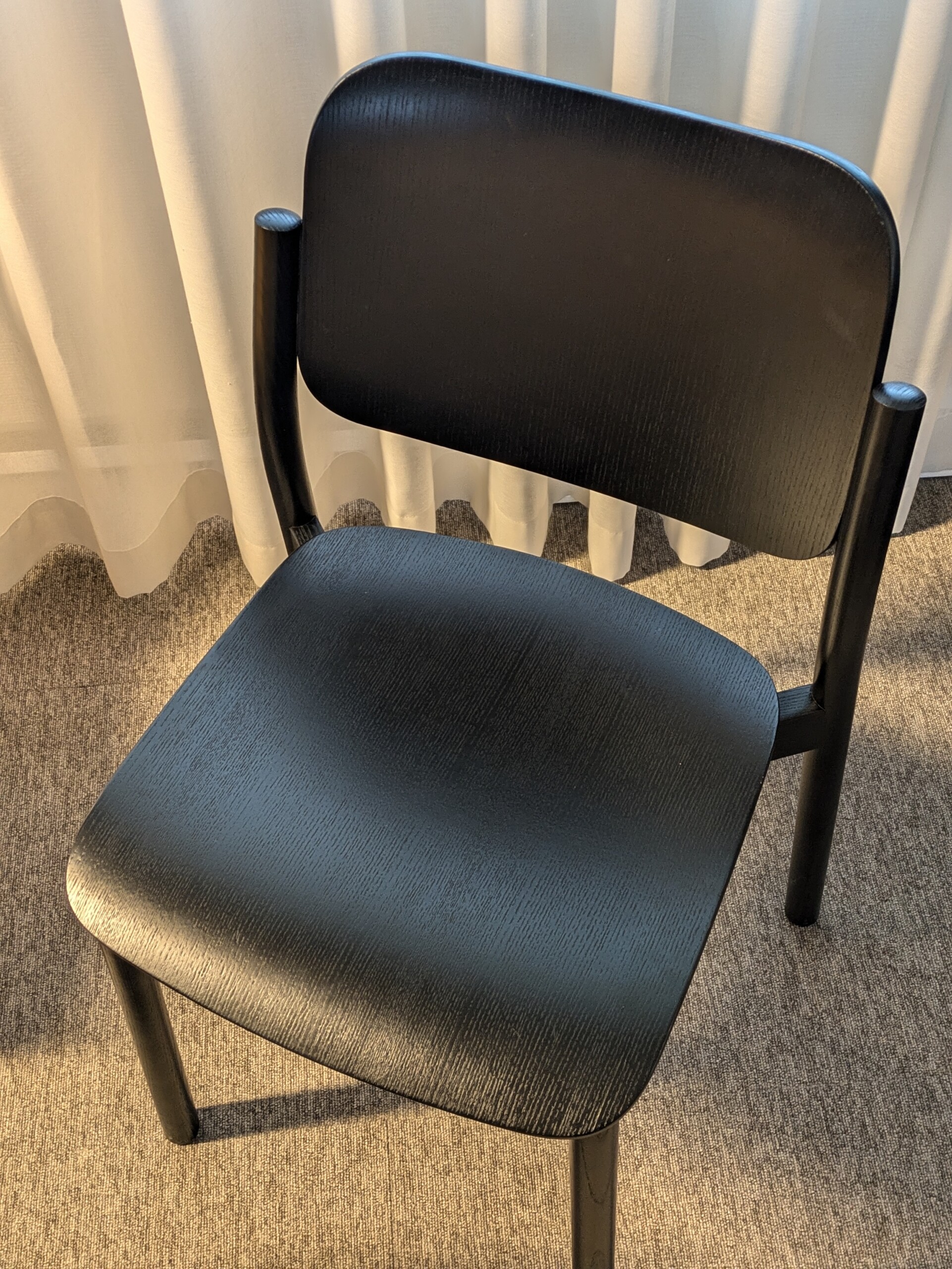 Seat, backrest and legs in wood (black).