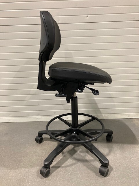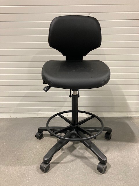 Seat and backrest in artificial leather (black). Star base in metal (black). Adjustable height.