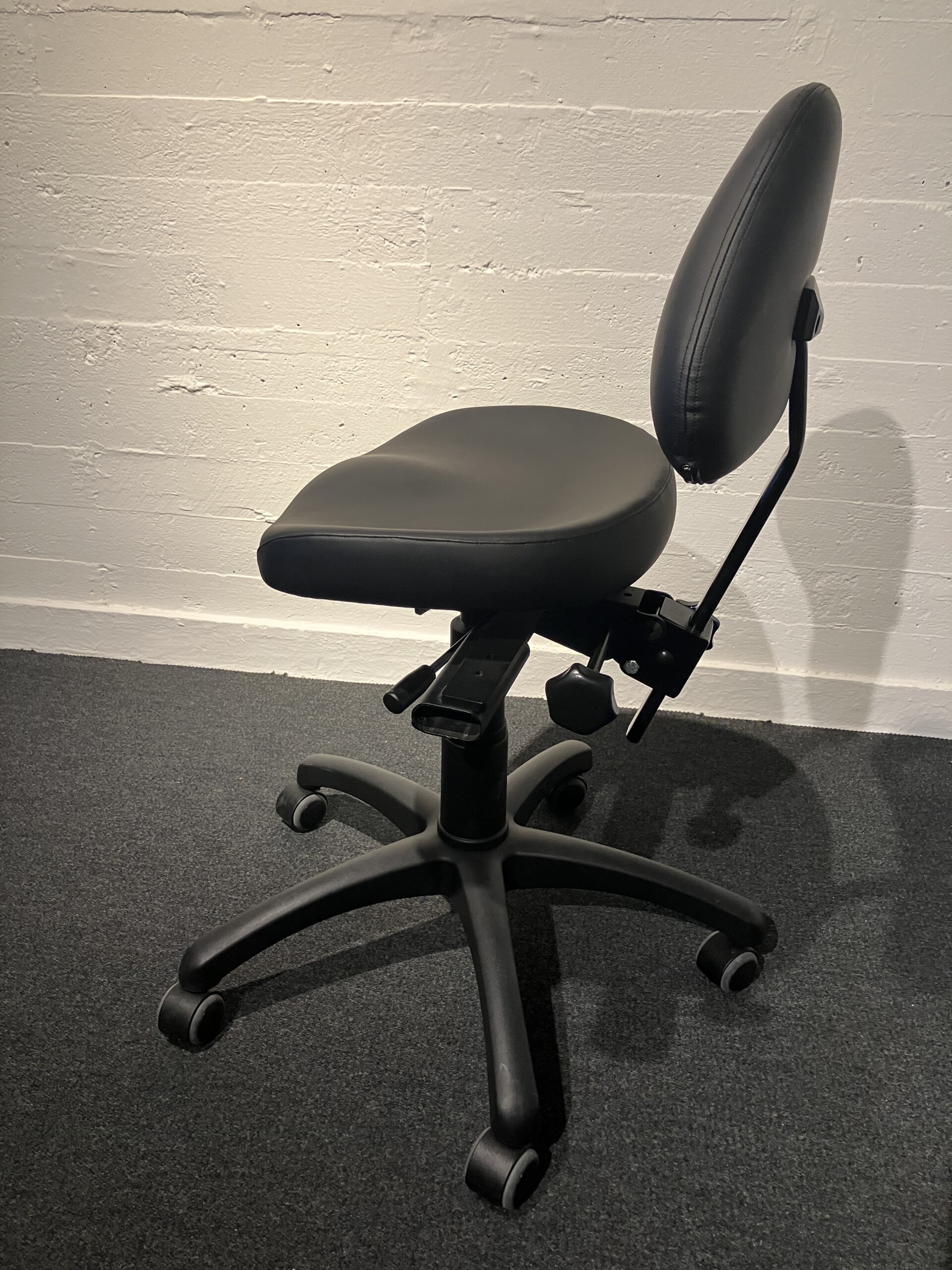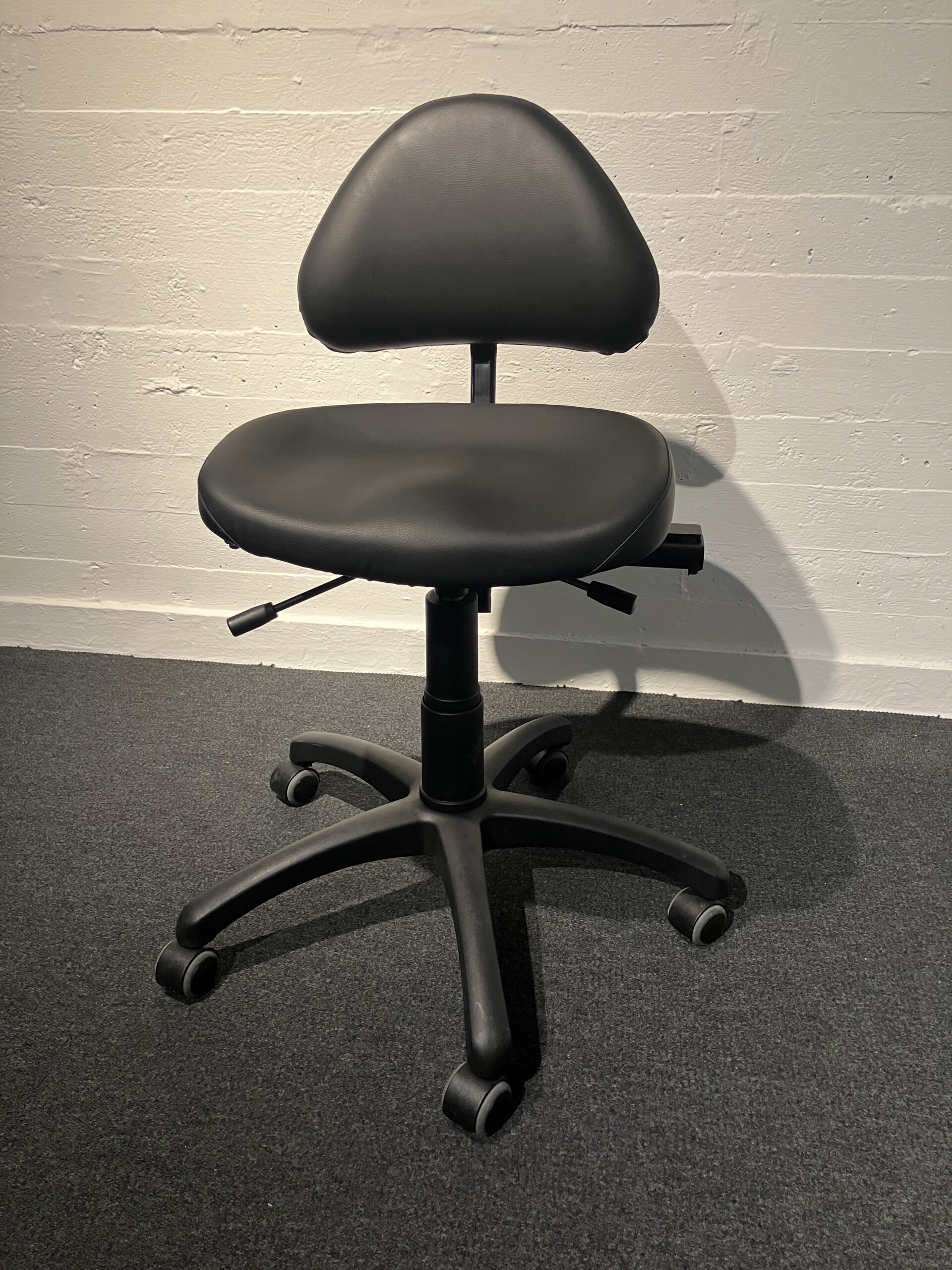 Seat and backrest in artificial leather (black). Star base in metal (black). Adjustable height.