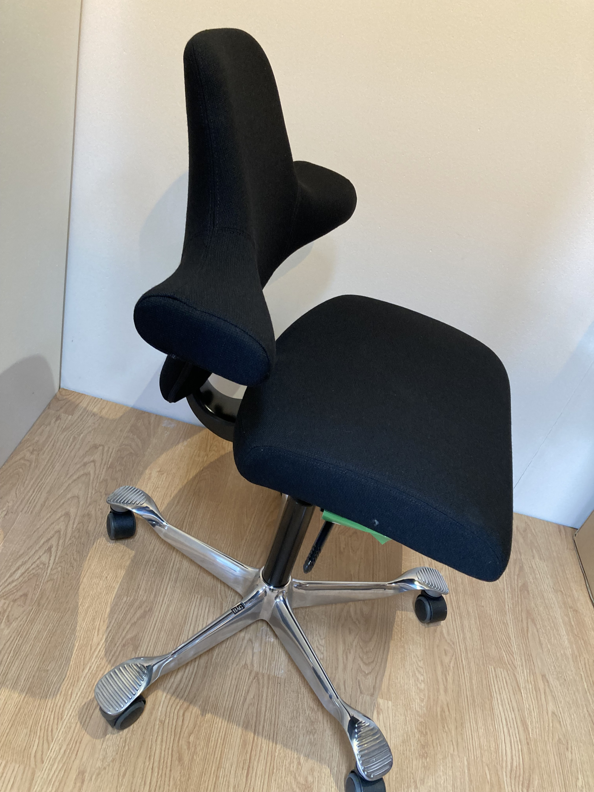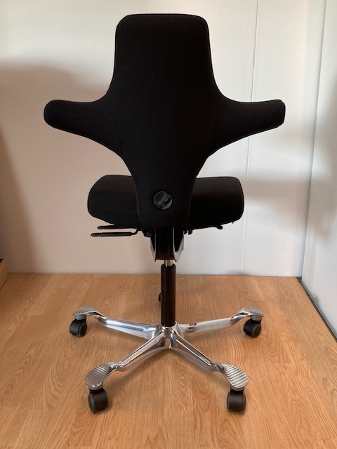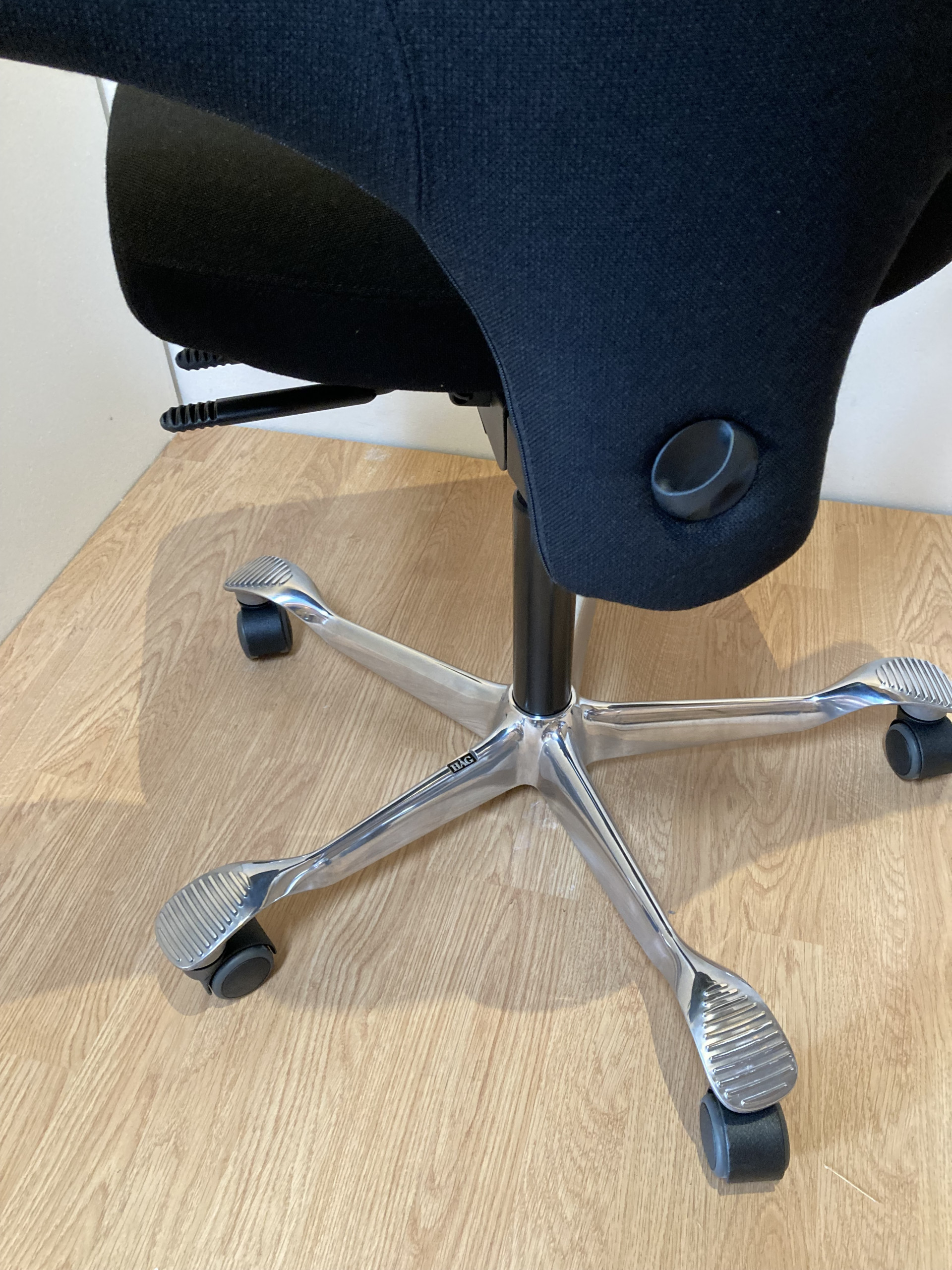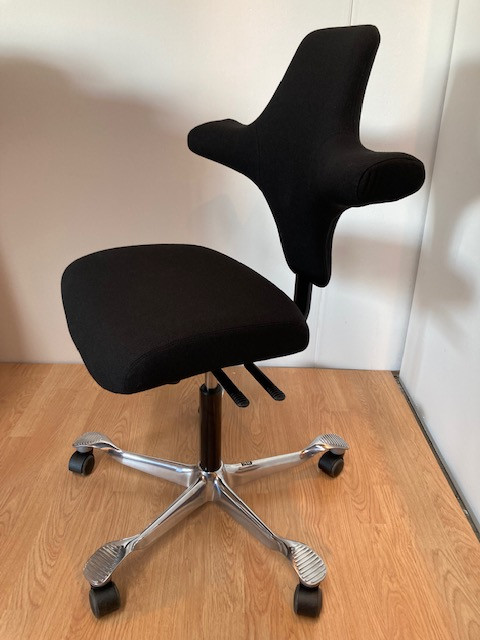 Seat and backrest in fabric (black). Star base in metal (aluminium). Adjustable height.