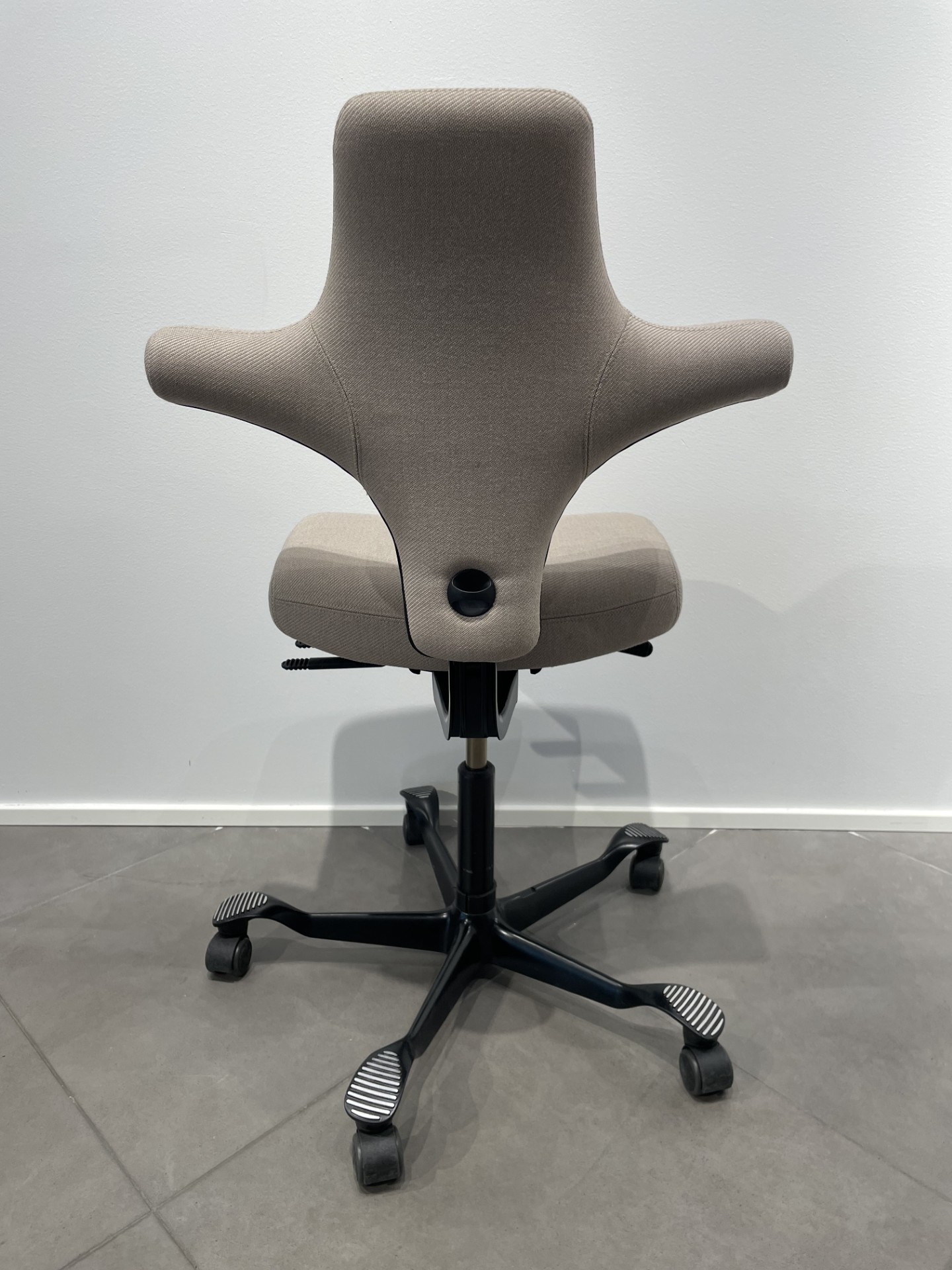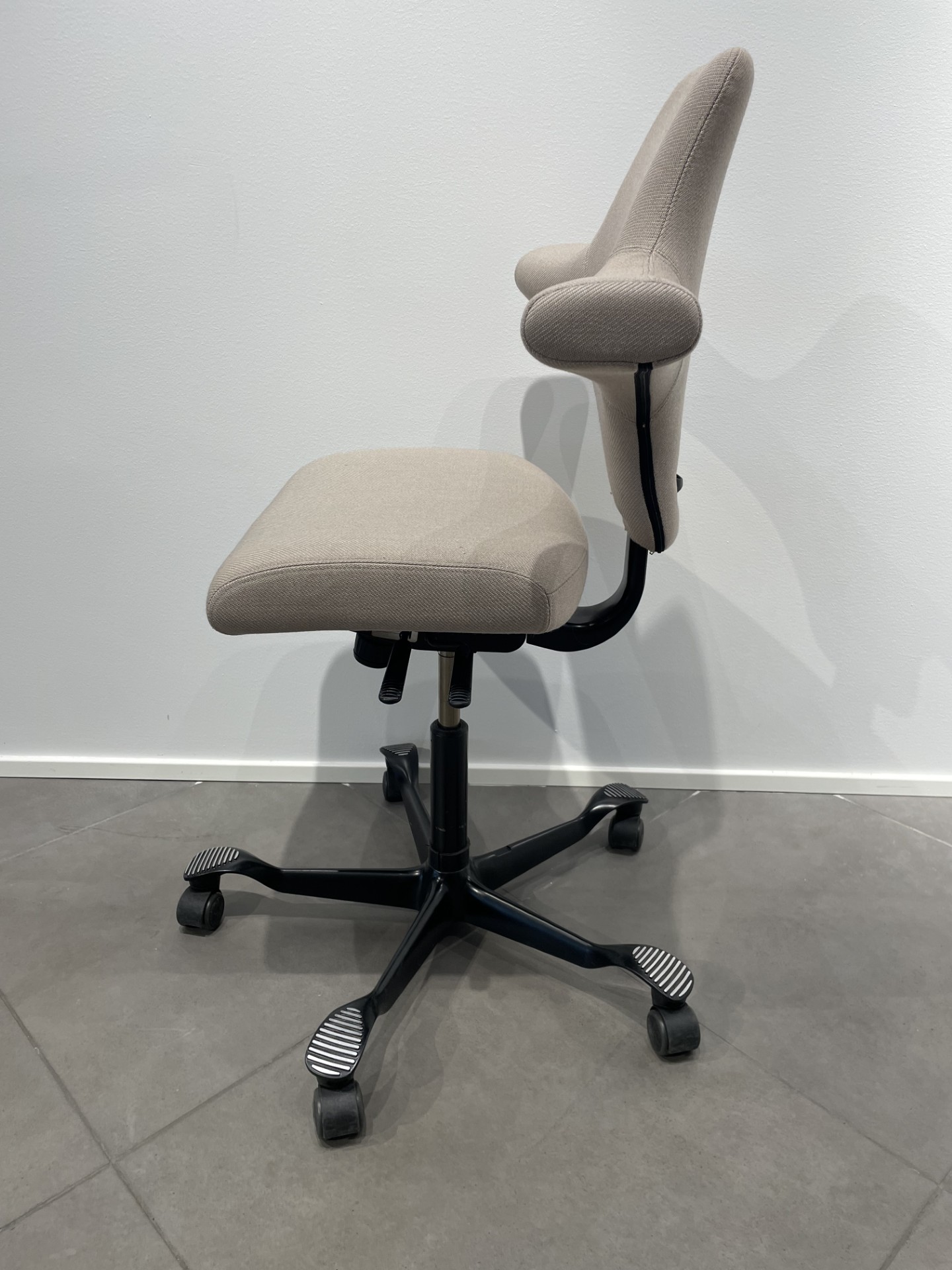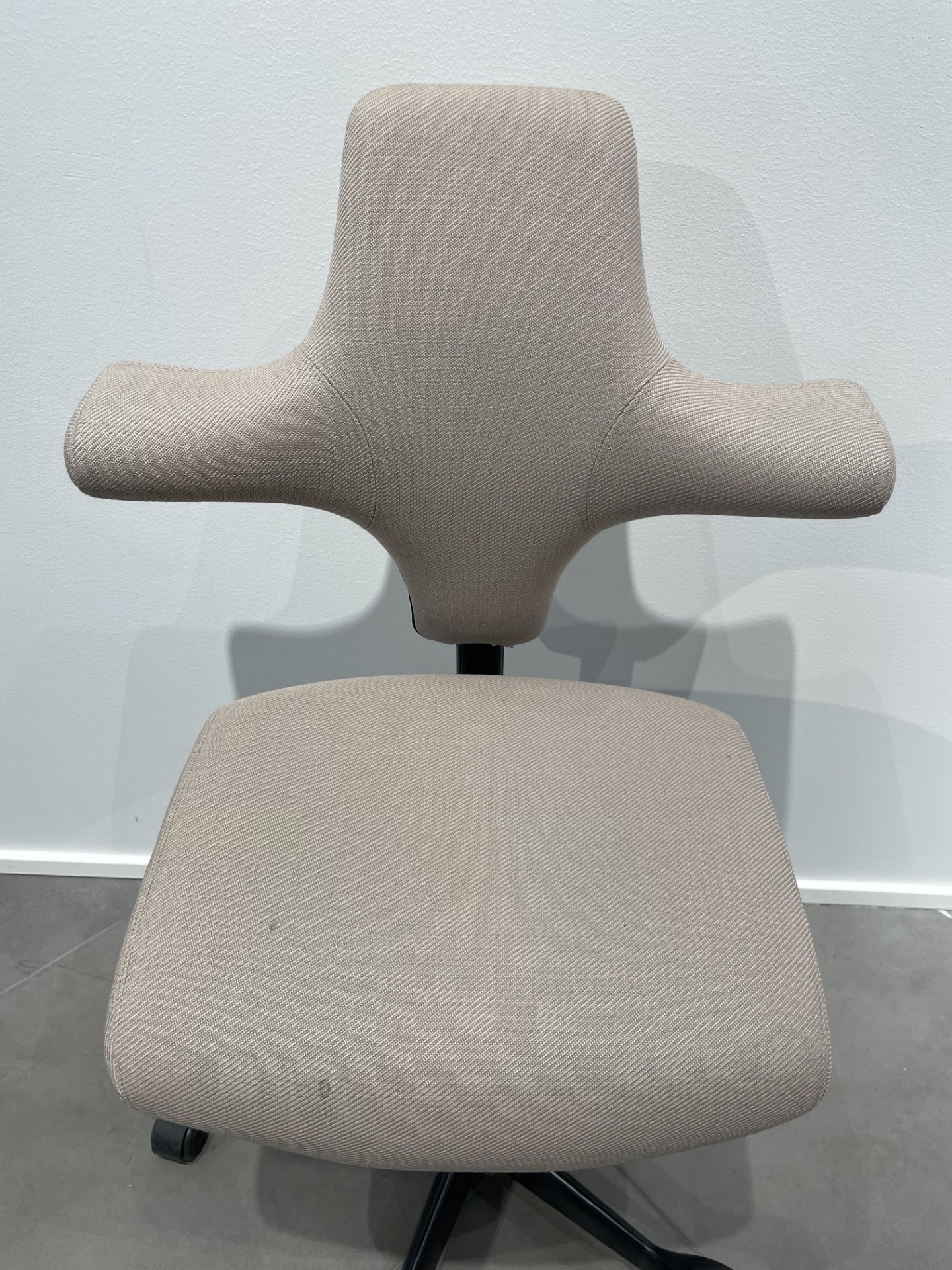 Seat and backrest in fabric (beige). Star base in metal (black). Adjustable height.
