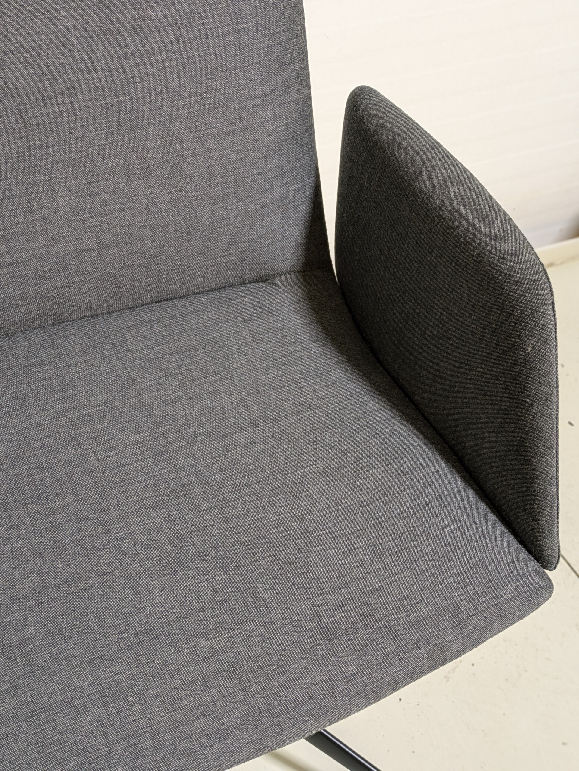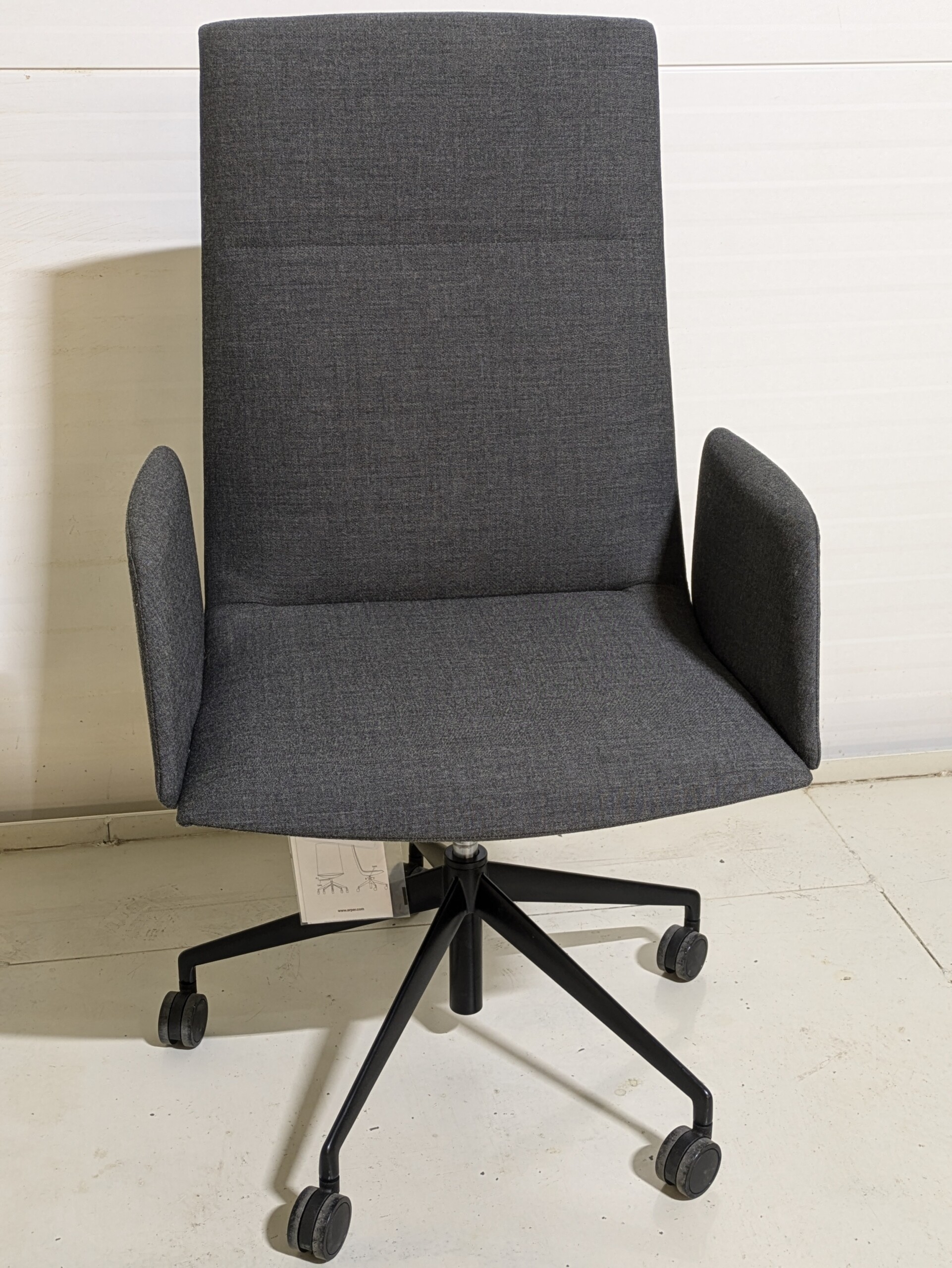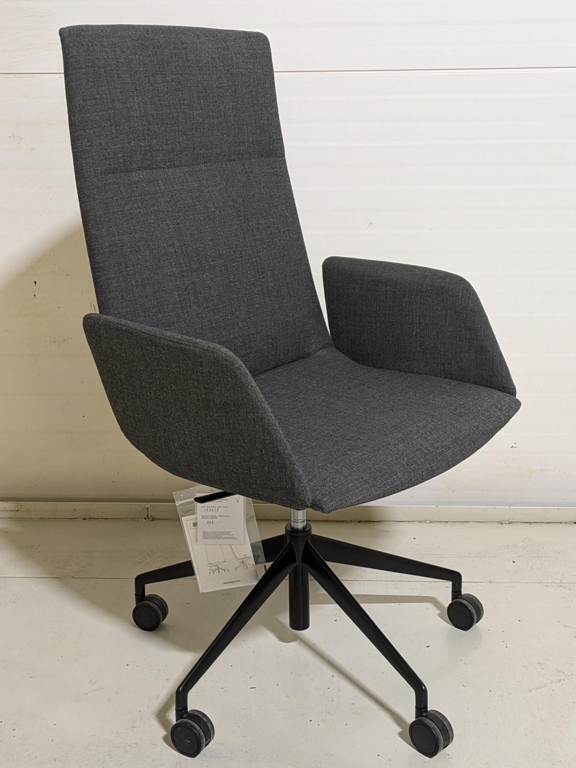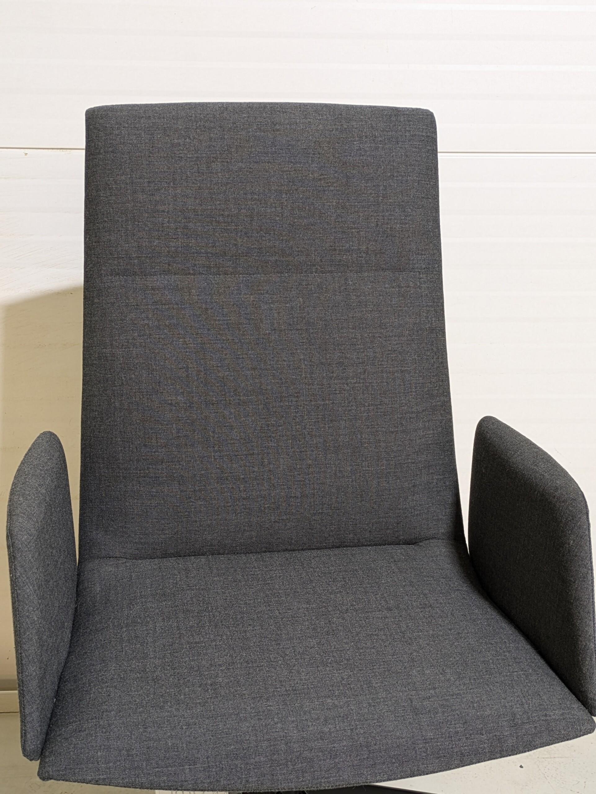 Seat and backrest in fabric (grey). Star base in metal (black). Adjustable height.