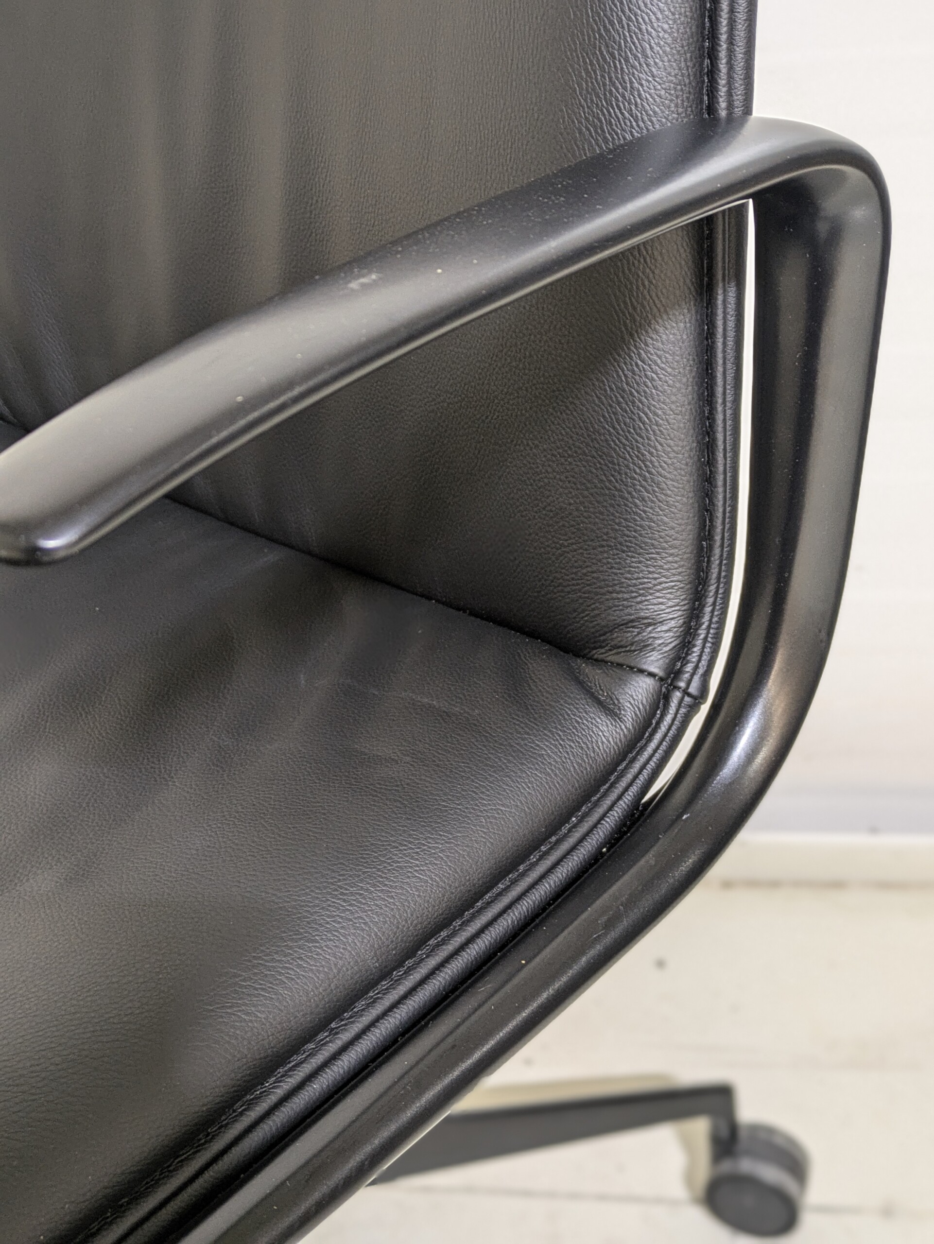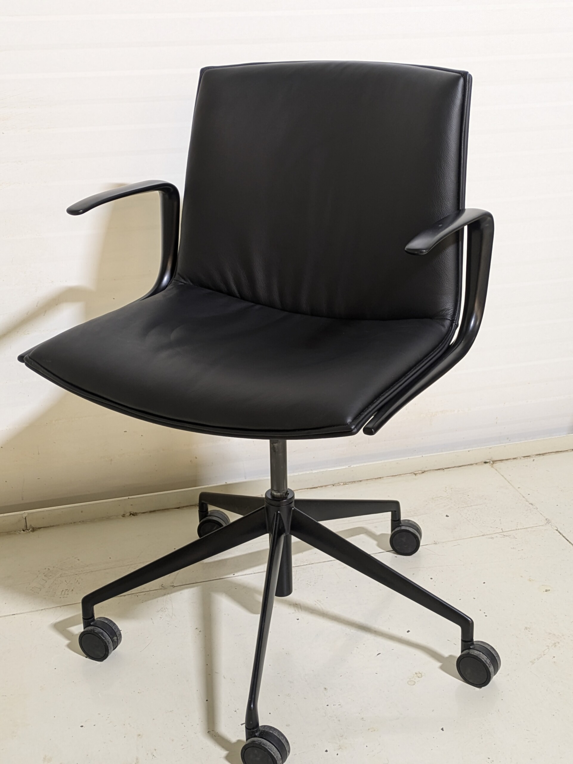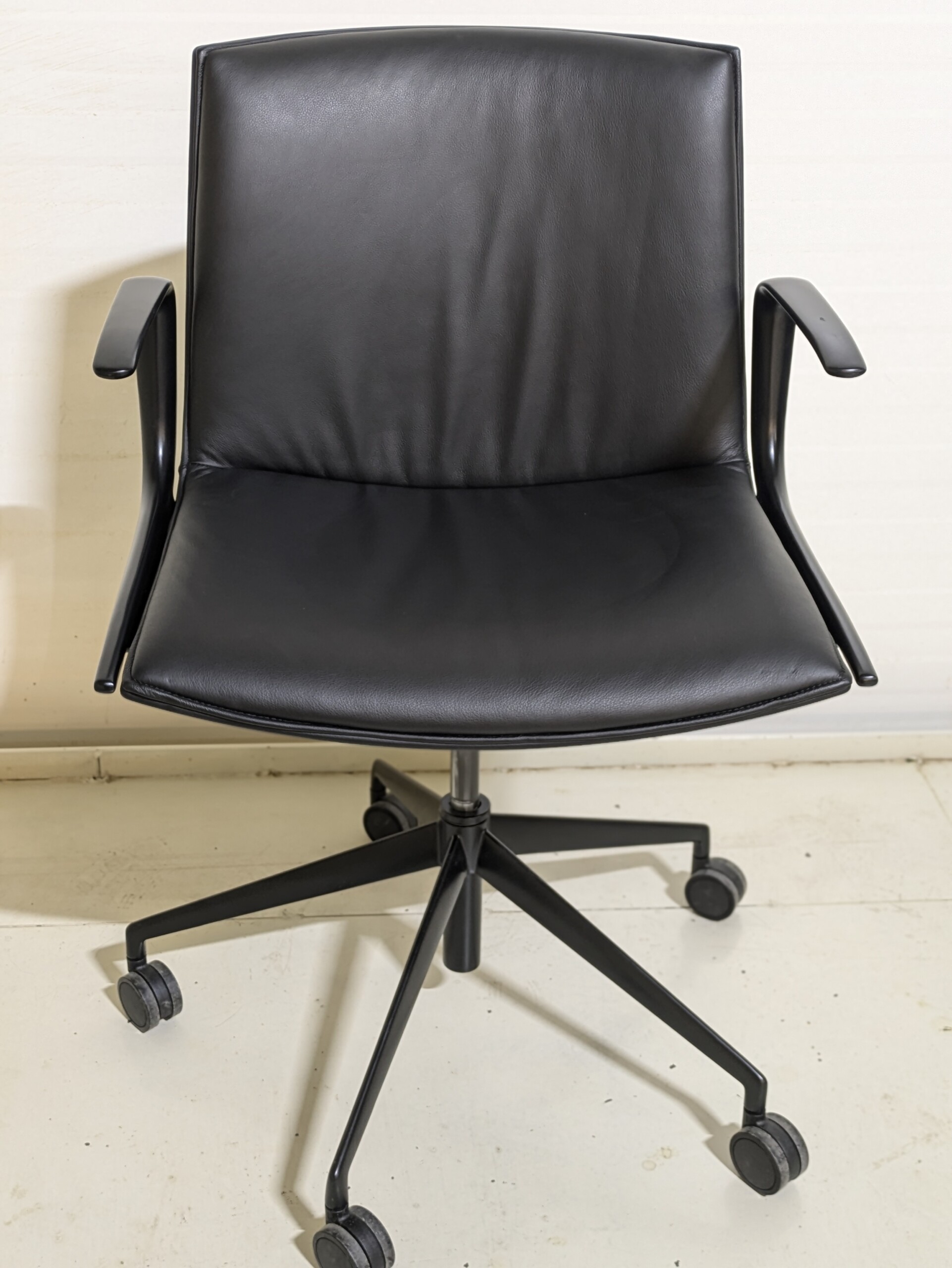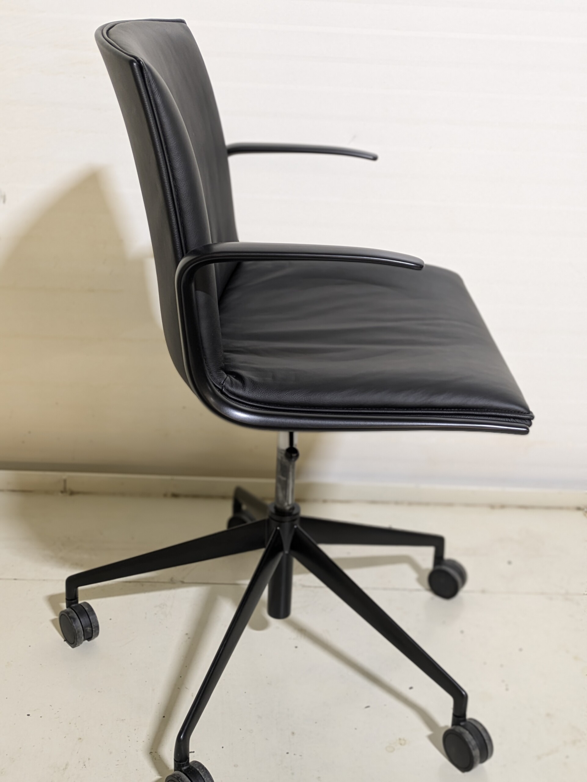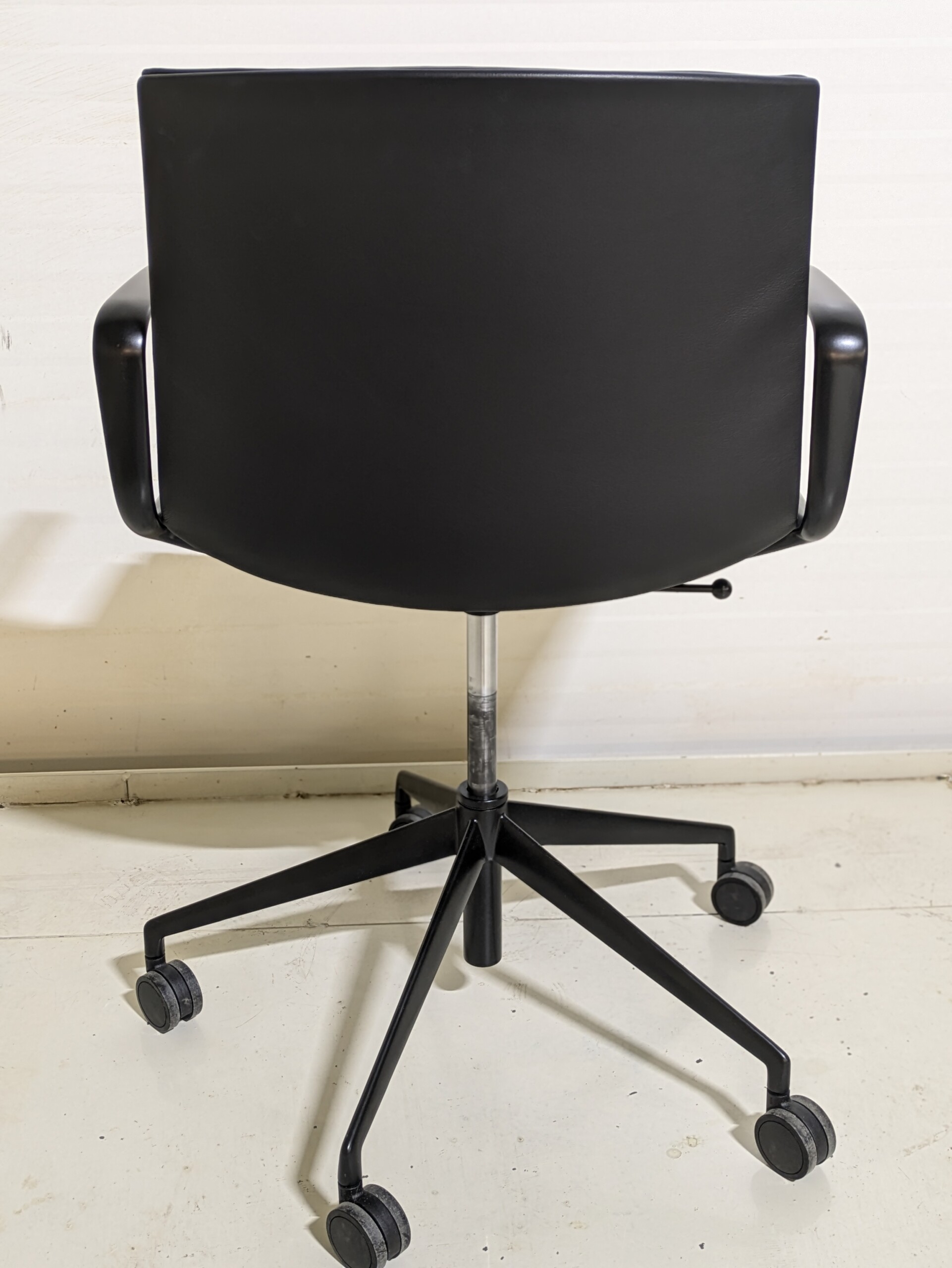 Seat and backrest in leather (black). Star base in metal (black). Adjustable height.