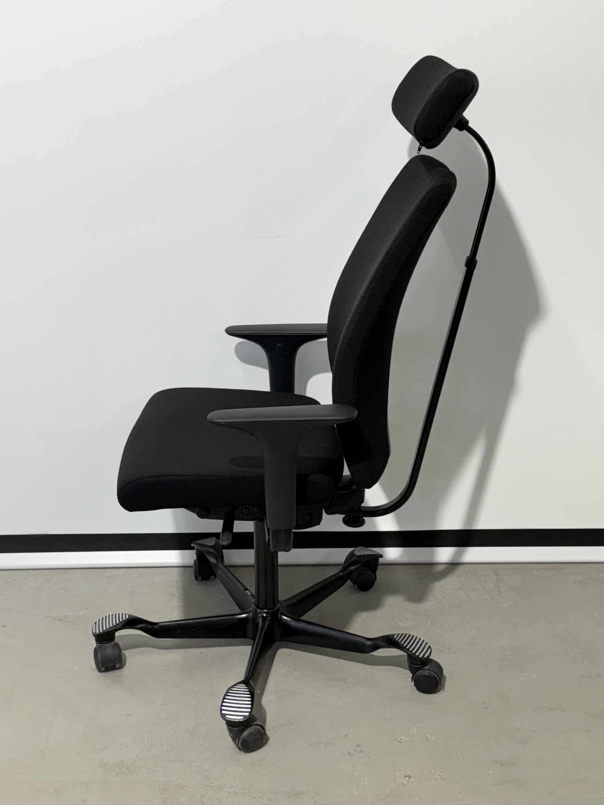 Seat and backrest in fabric (black). Star base in metal (black). Adjustable height.