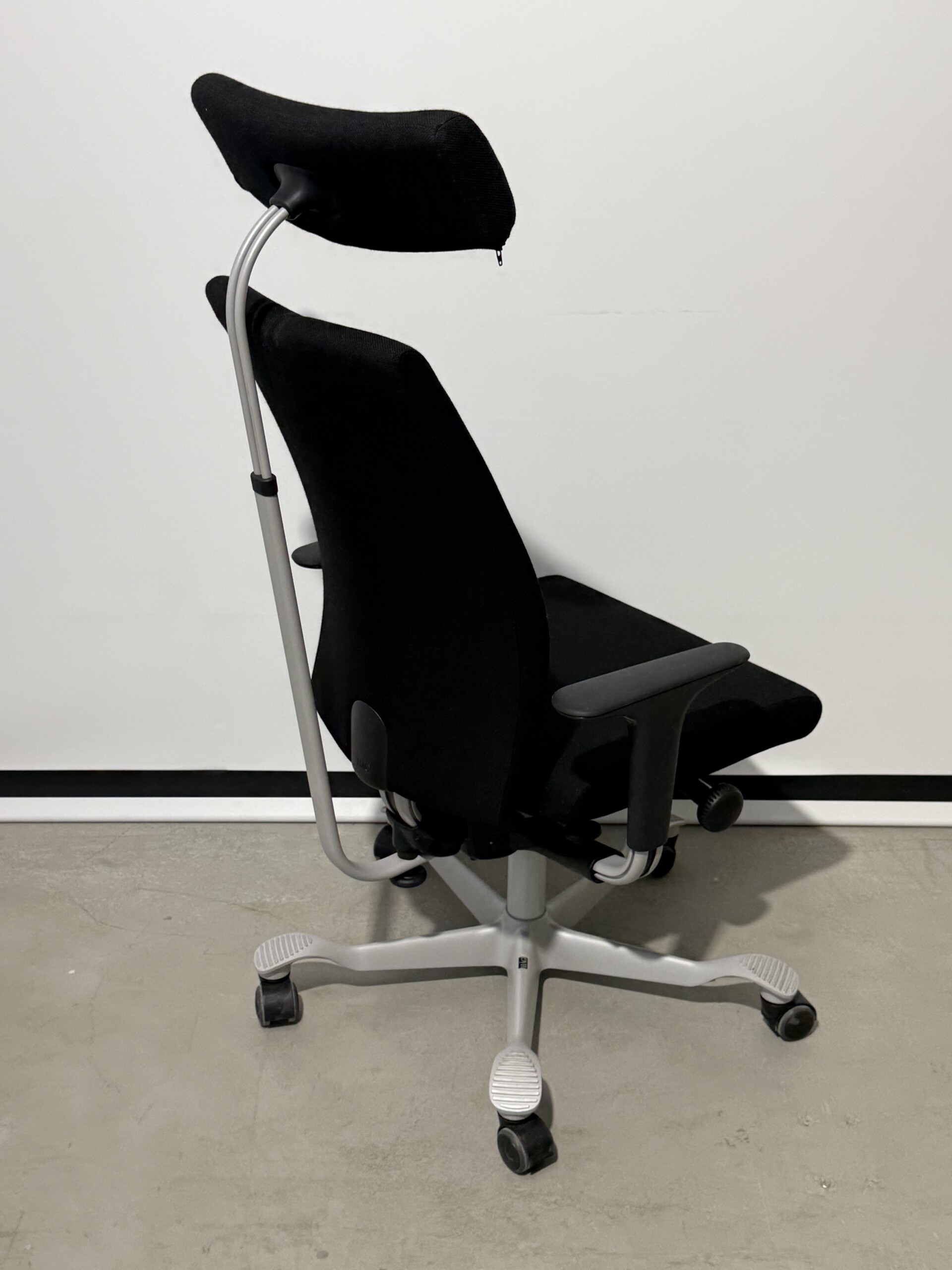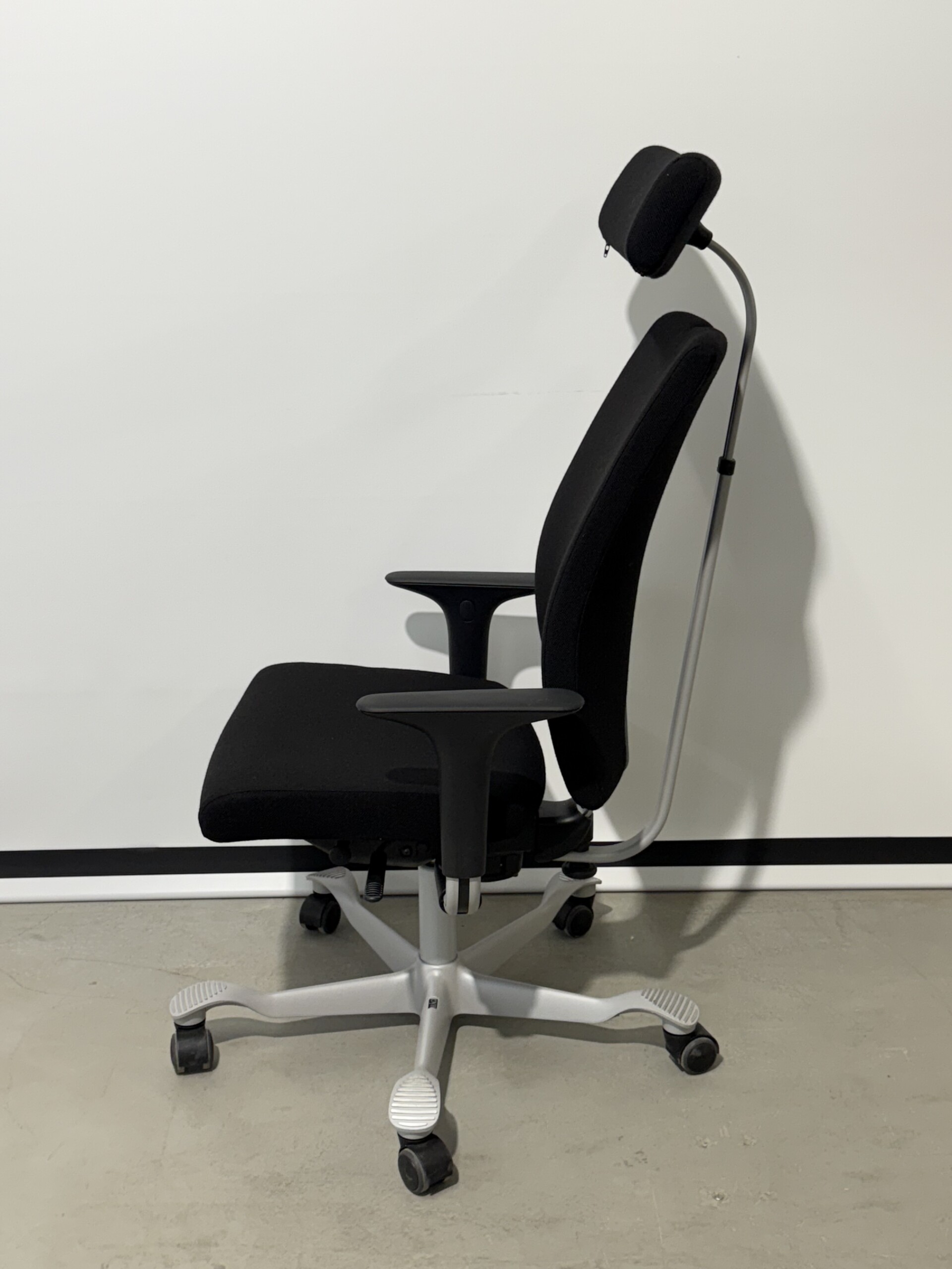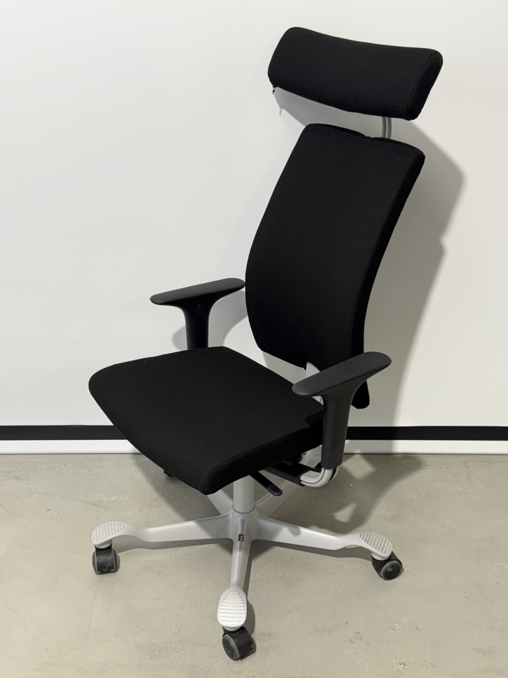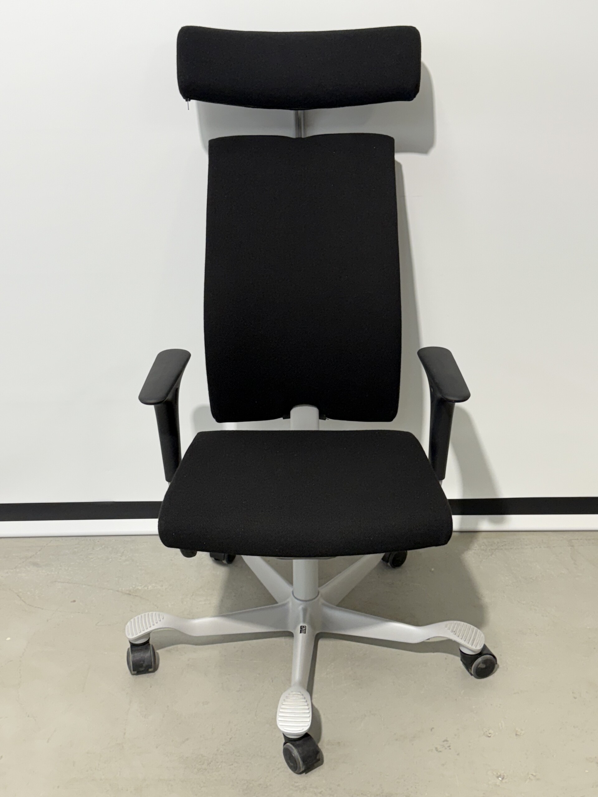 Seat and backrest in fabric (black). Star base in metal (grey). Adjustable height.