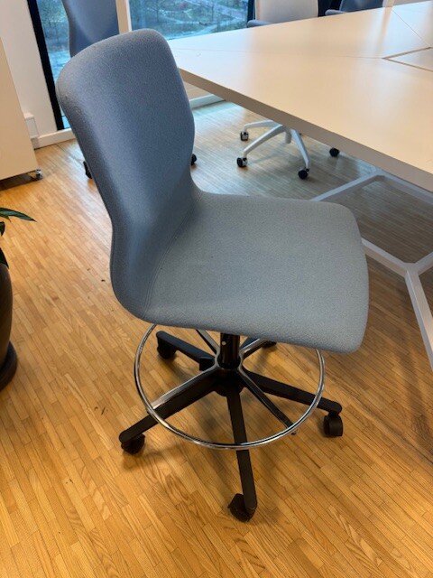 Seat and backrest in fabric (blue). Star base in metal (black). Adjustable height.