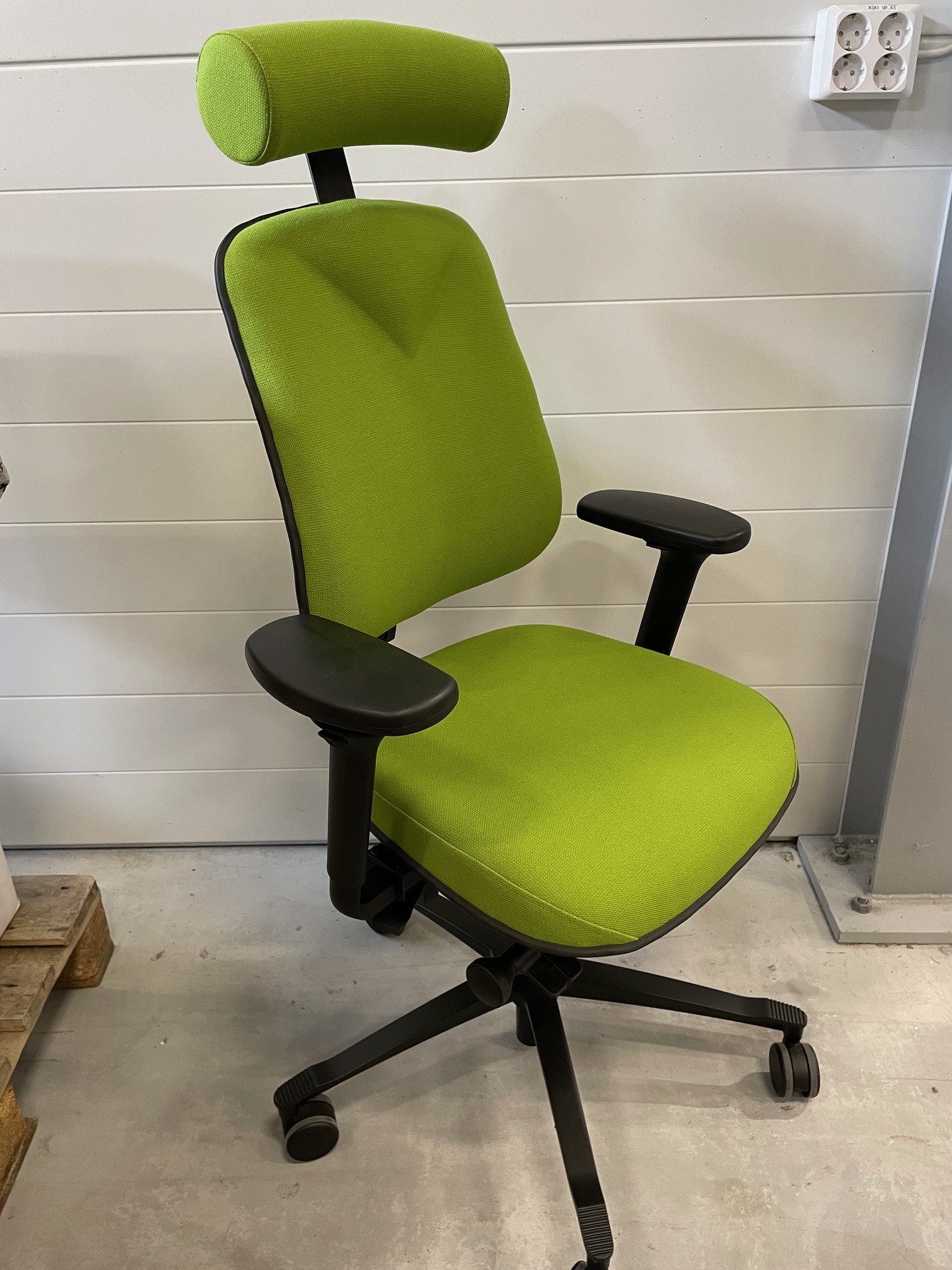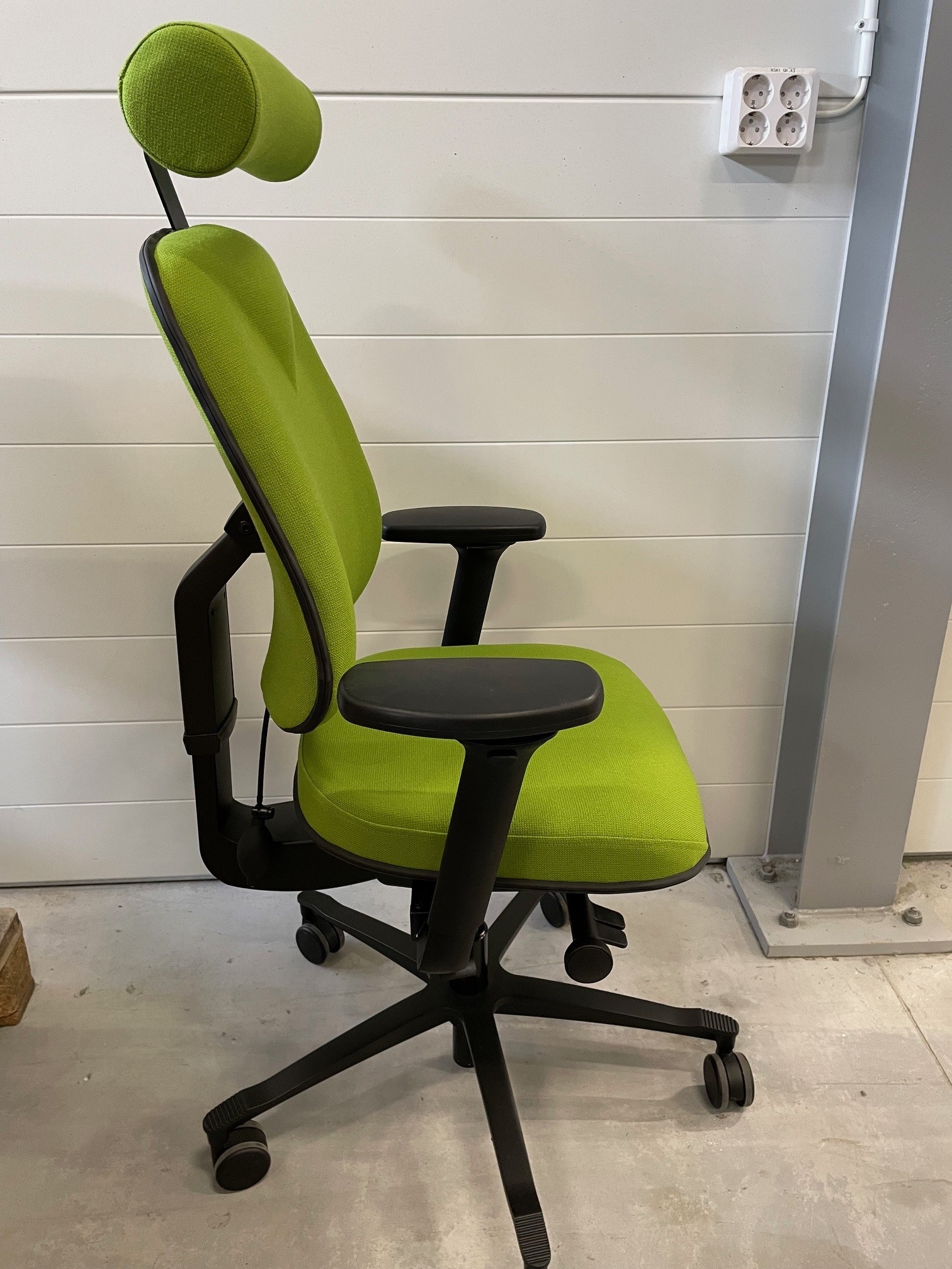Seat and backrest in fabric (green). Star base in metal (black). Adjustable height.