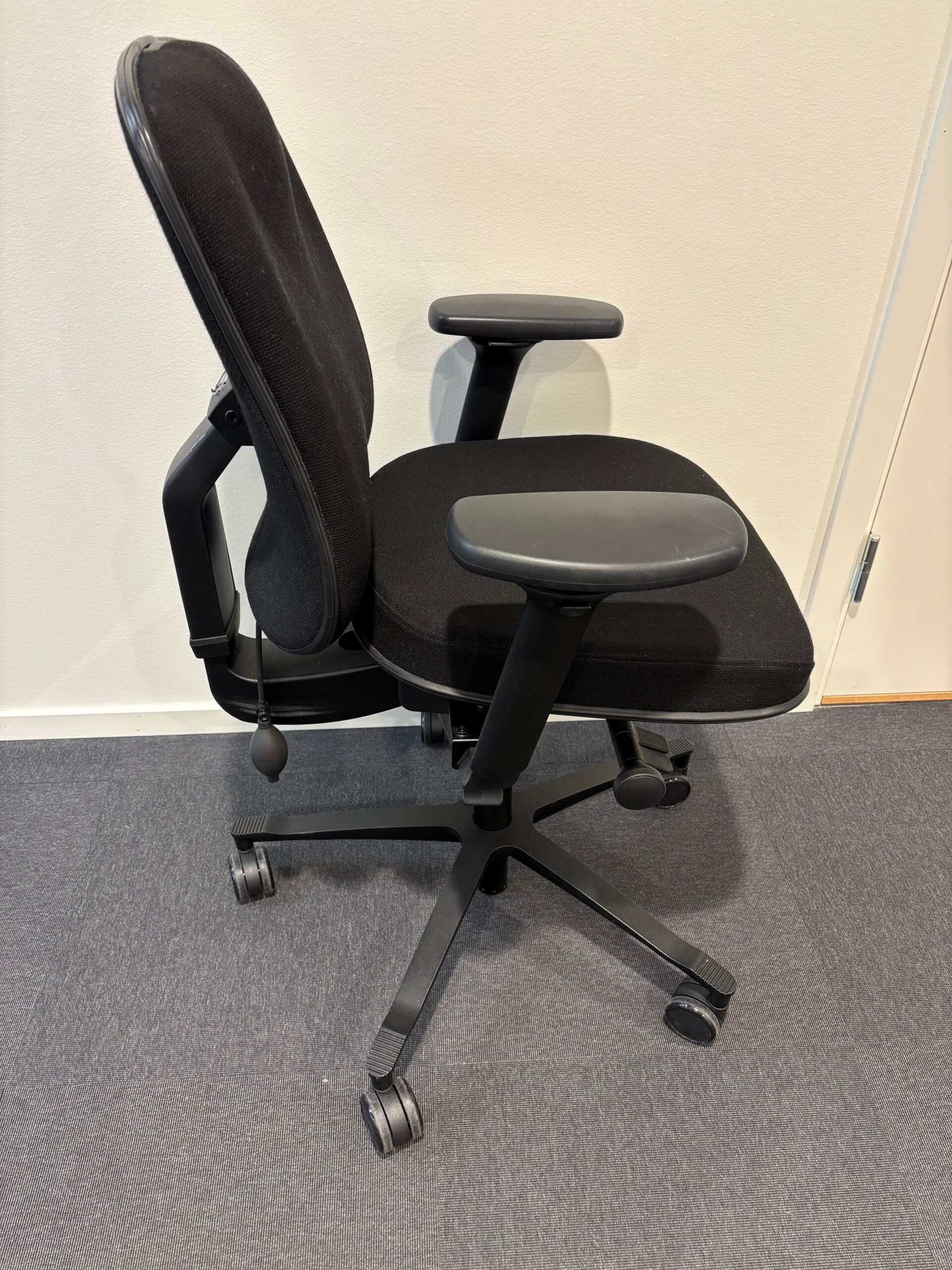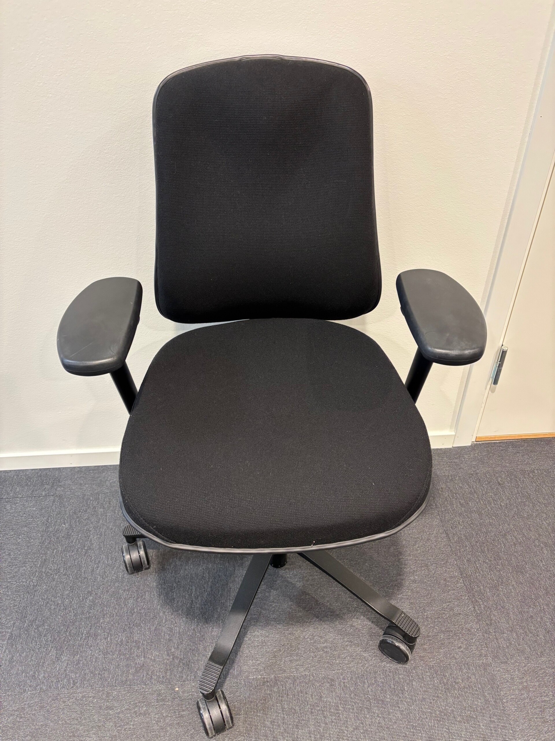 Seat and backrest in fabric (black). Star base in metal (black). Adjustable height.