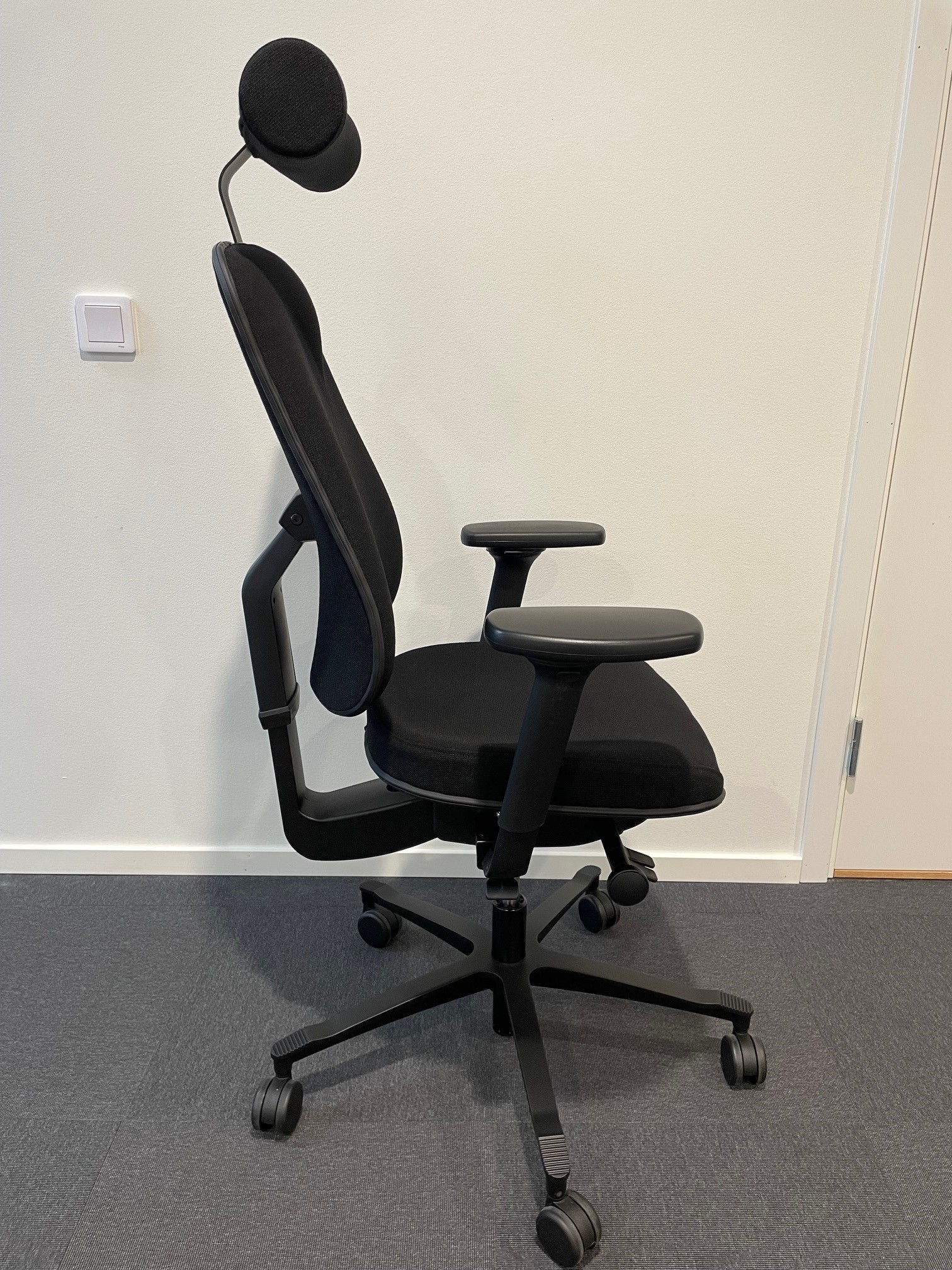 Seat and backrest in fabric (black). Star base in metal (black). Adjustable height.
