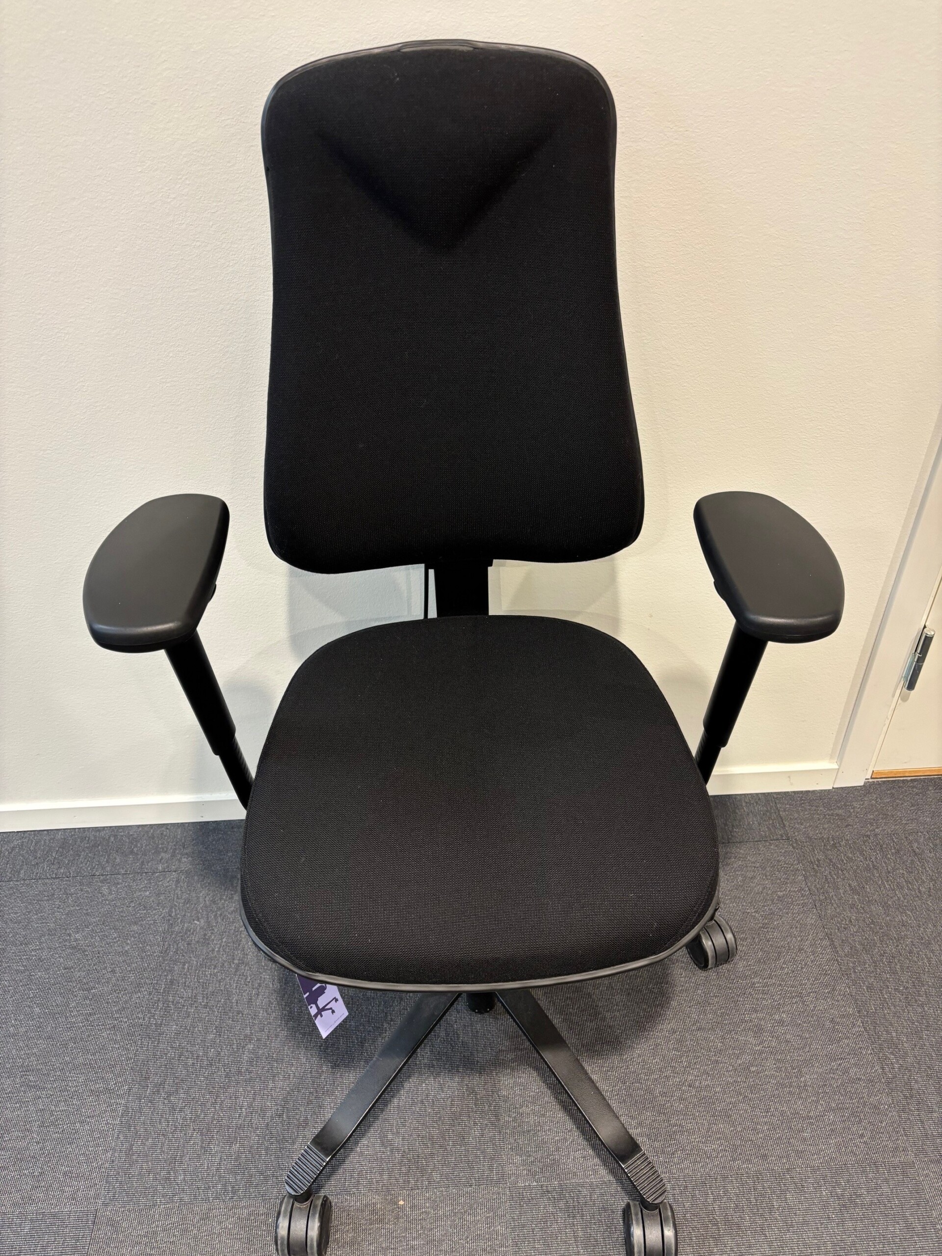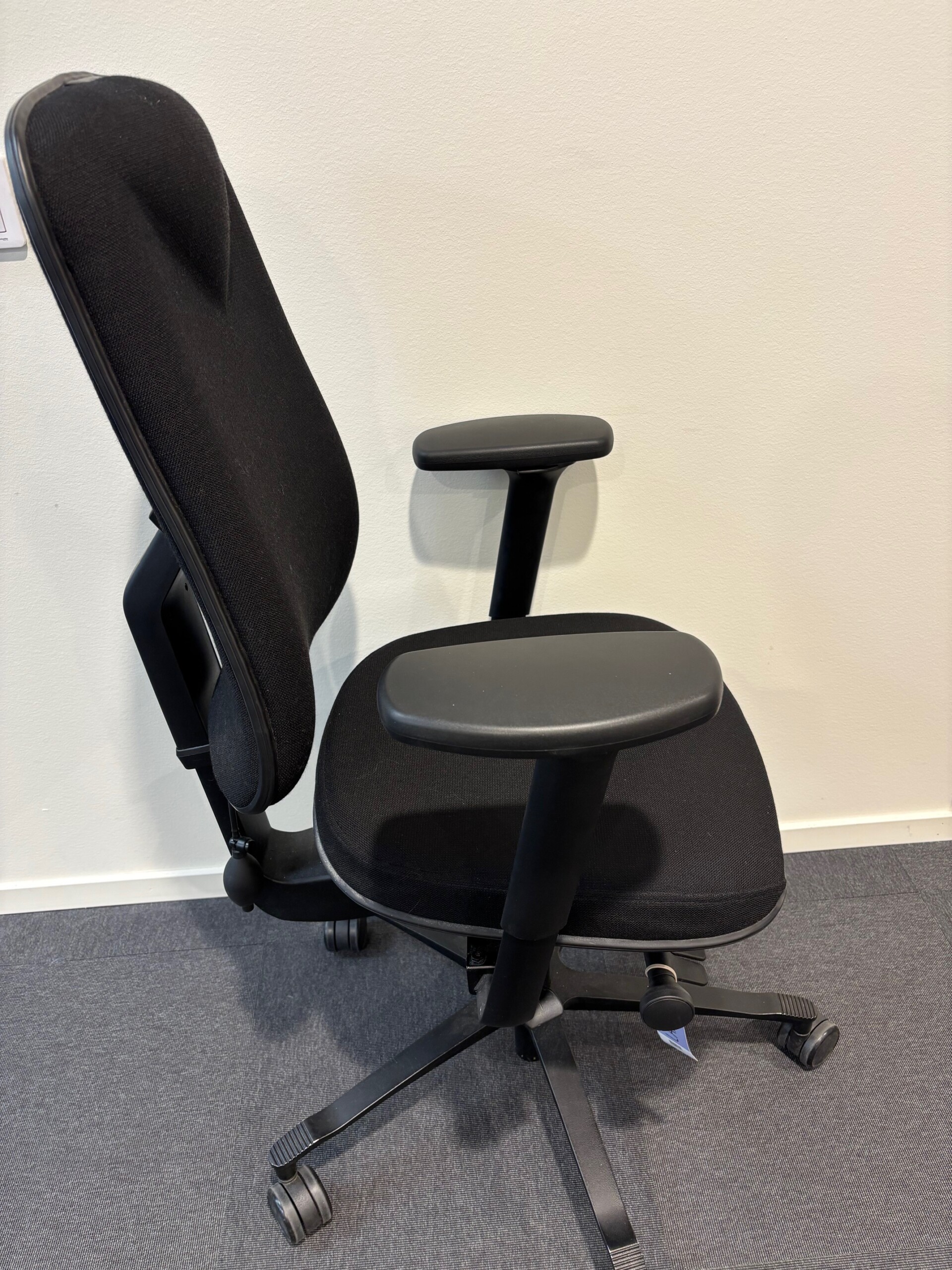 Seat and backrest in fabric (black). Star base in metal (black). Adjustable height.