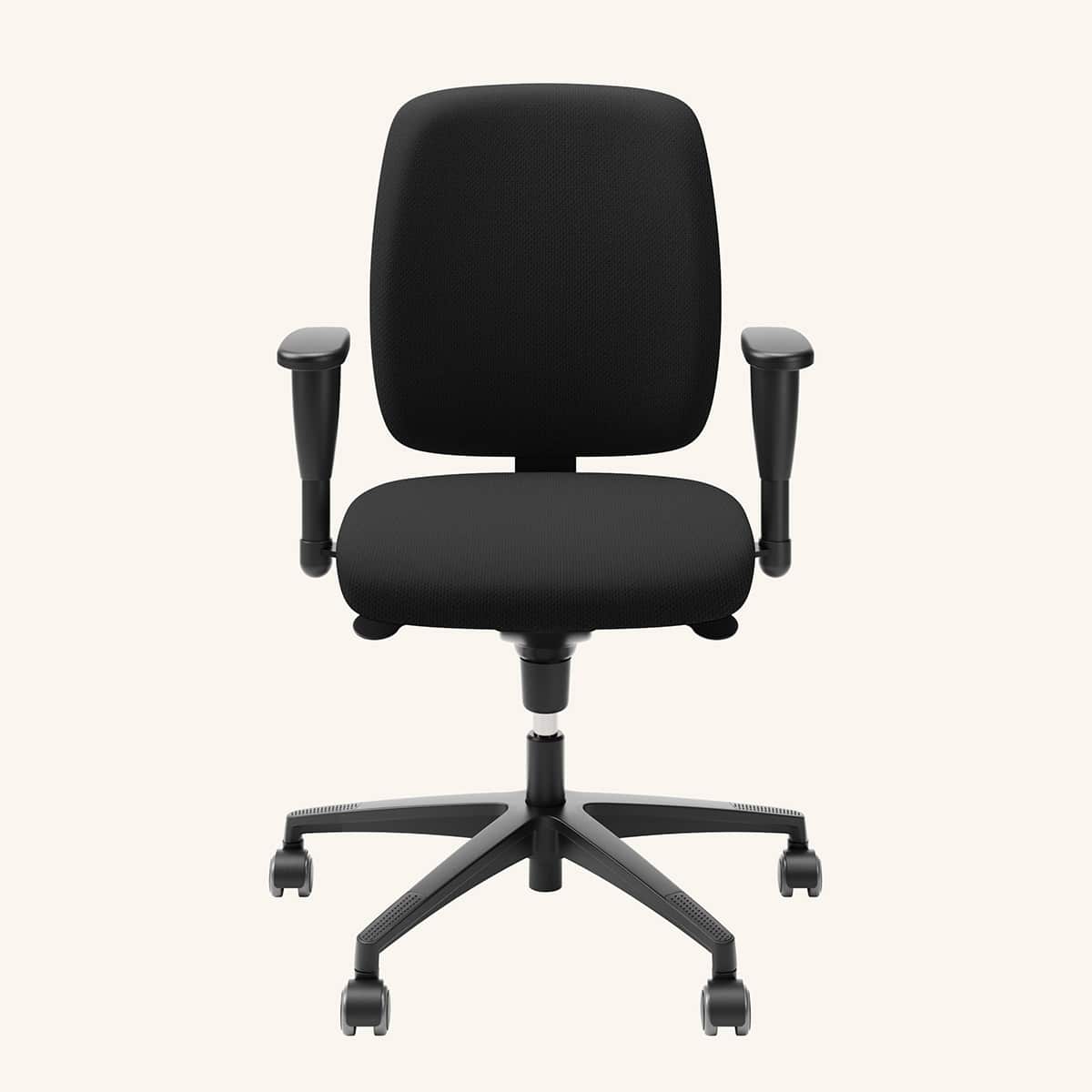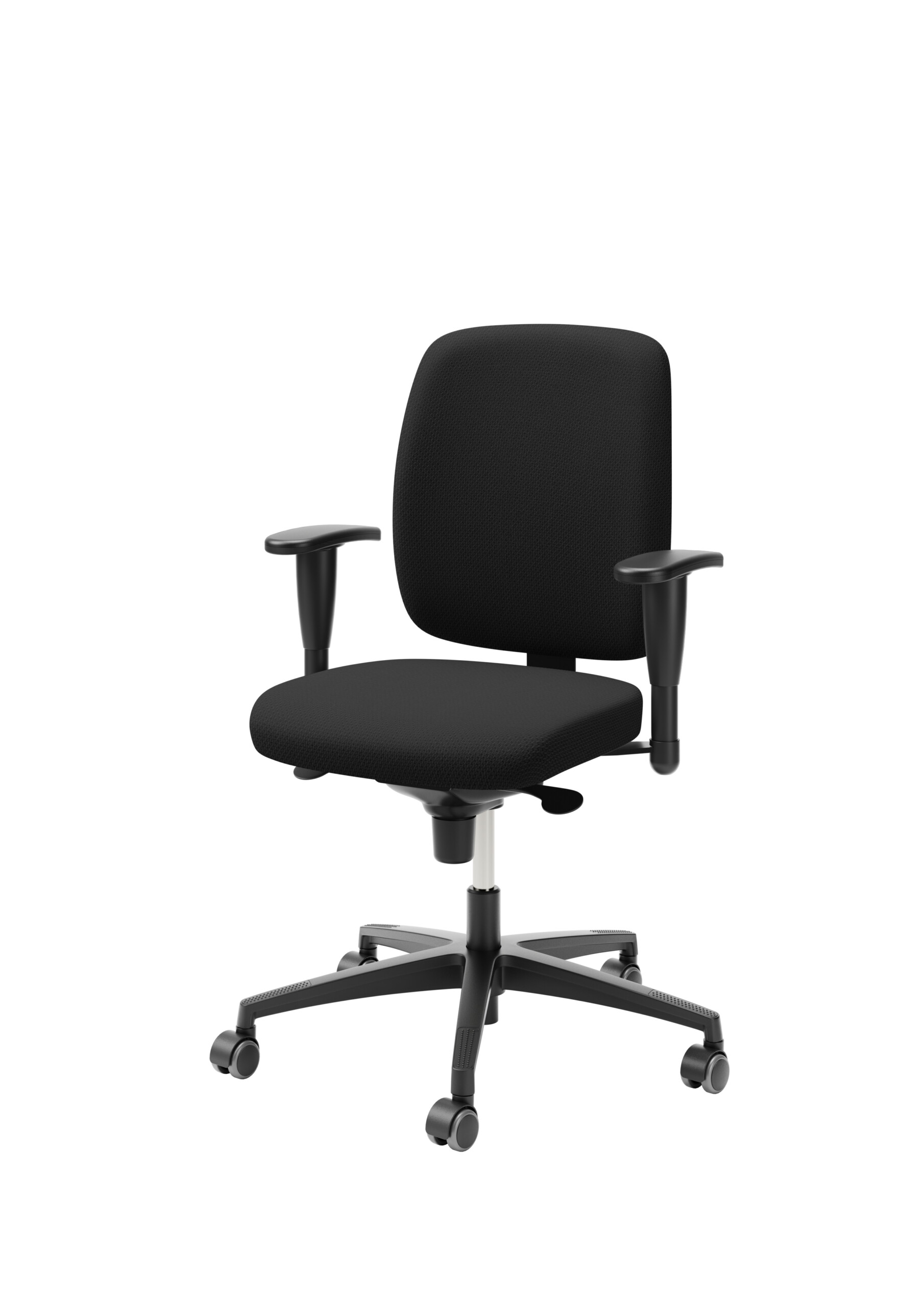 Seat and backrest in fabric. Star base in plastic (black). Adjustable height.