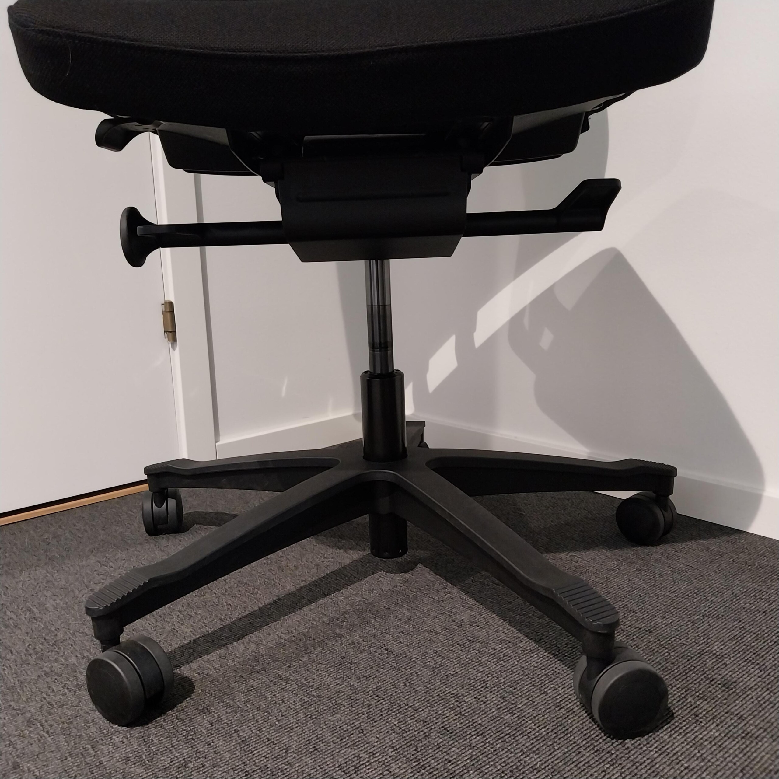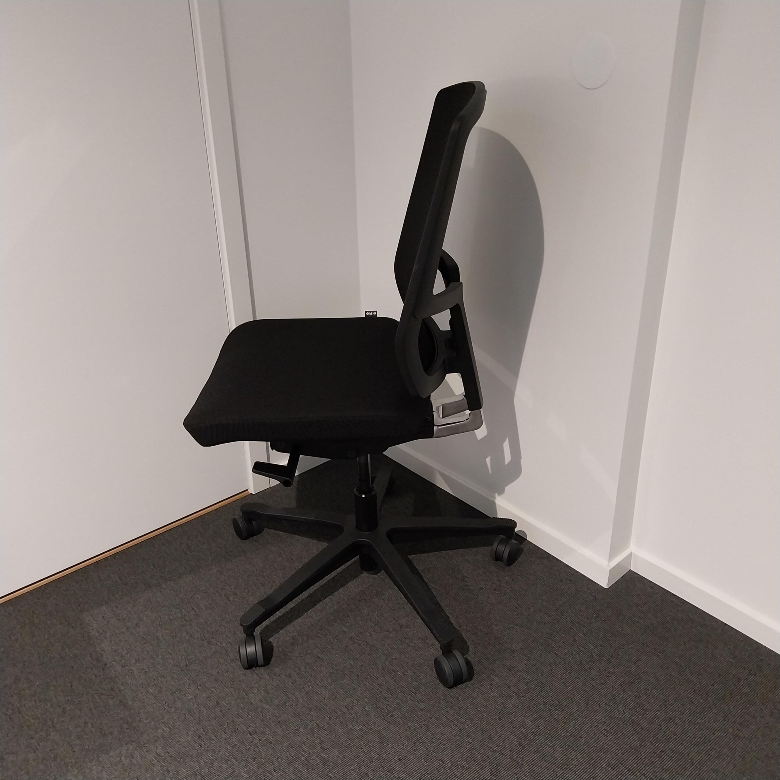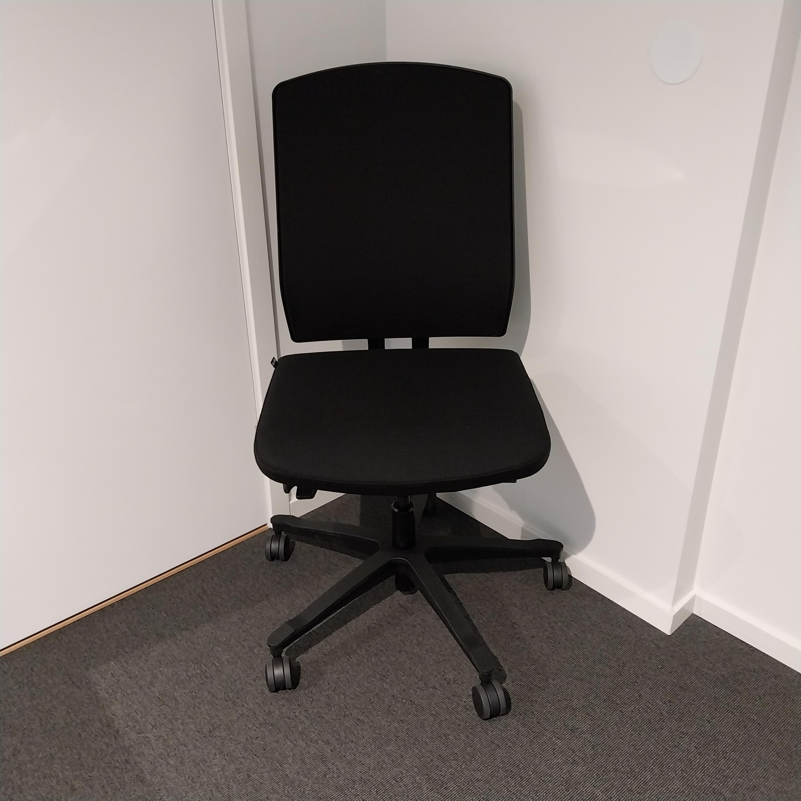 Seat and backrest in fabric (black). Star base in plastic (black). Adjustable height.