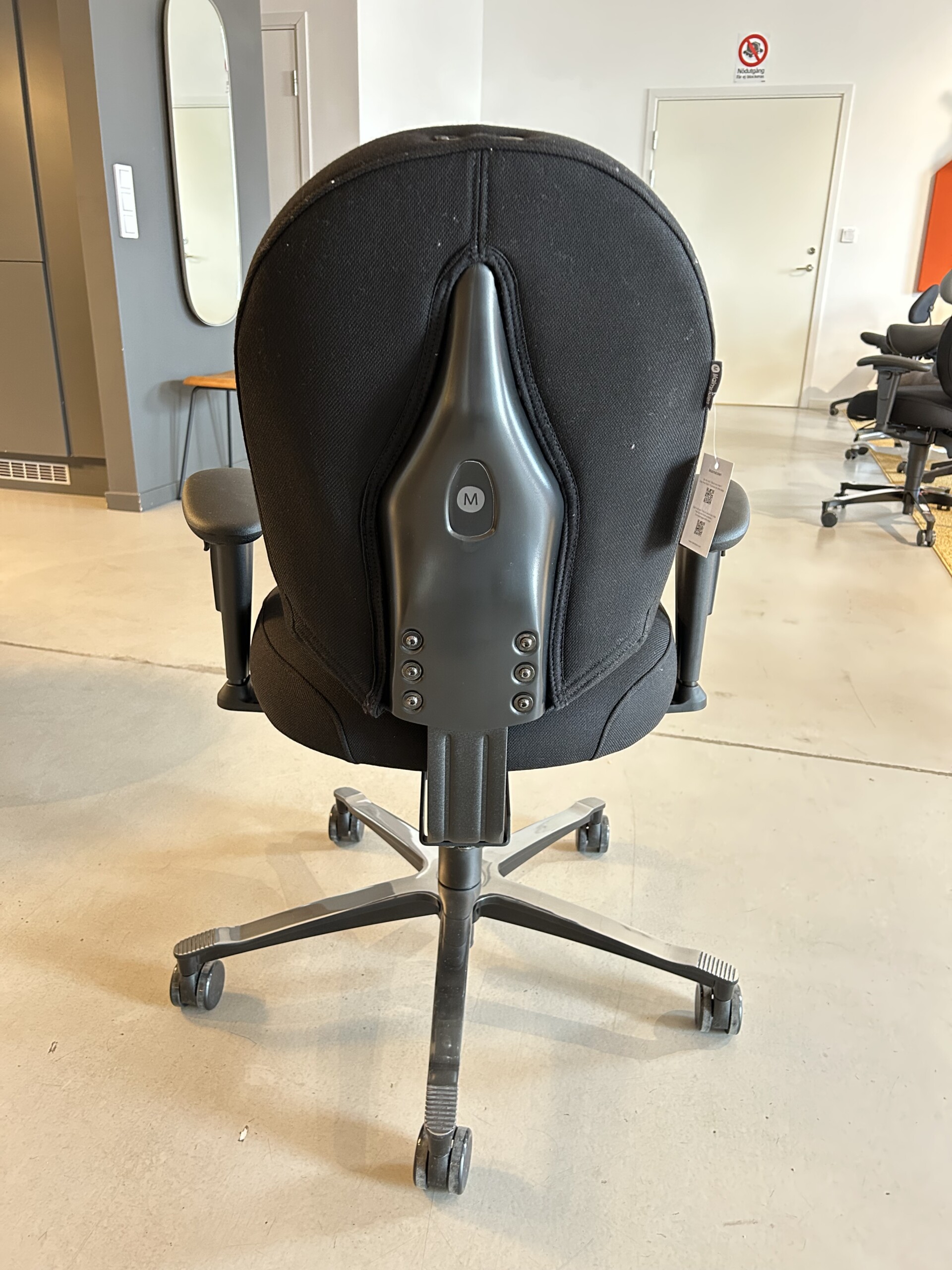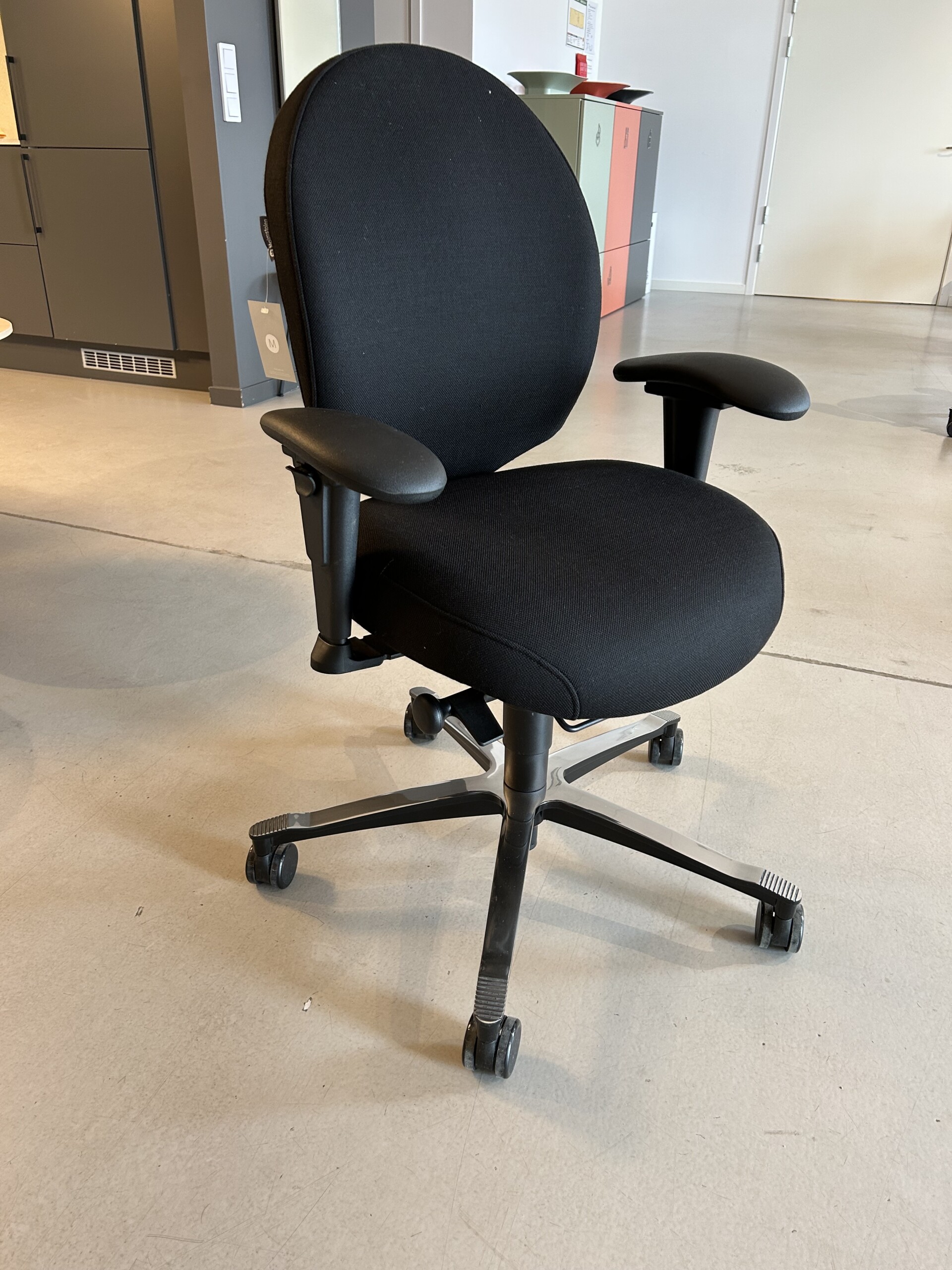 Seat and backrest in fabric (black). Star base in metal (aluminium). Adjustable height.