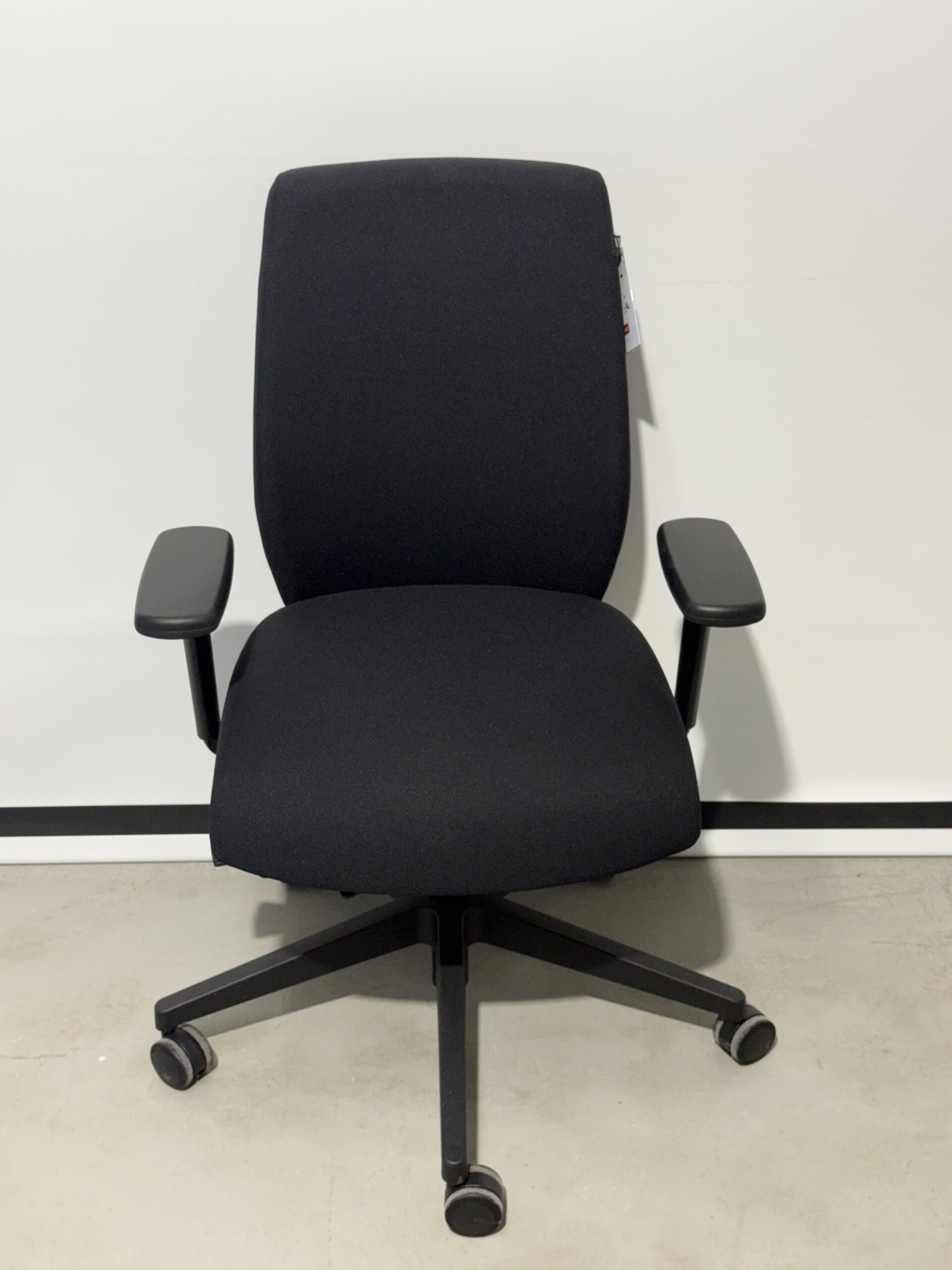 Seat and backrest in fabric (black). Star base in plastic (black). Adjustable height.