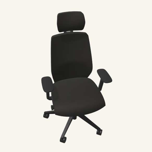 Seat and backrest in fabric (black). Star base in metal (black). Adjustable height.
