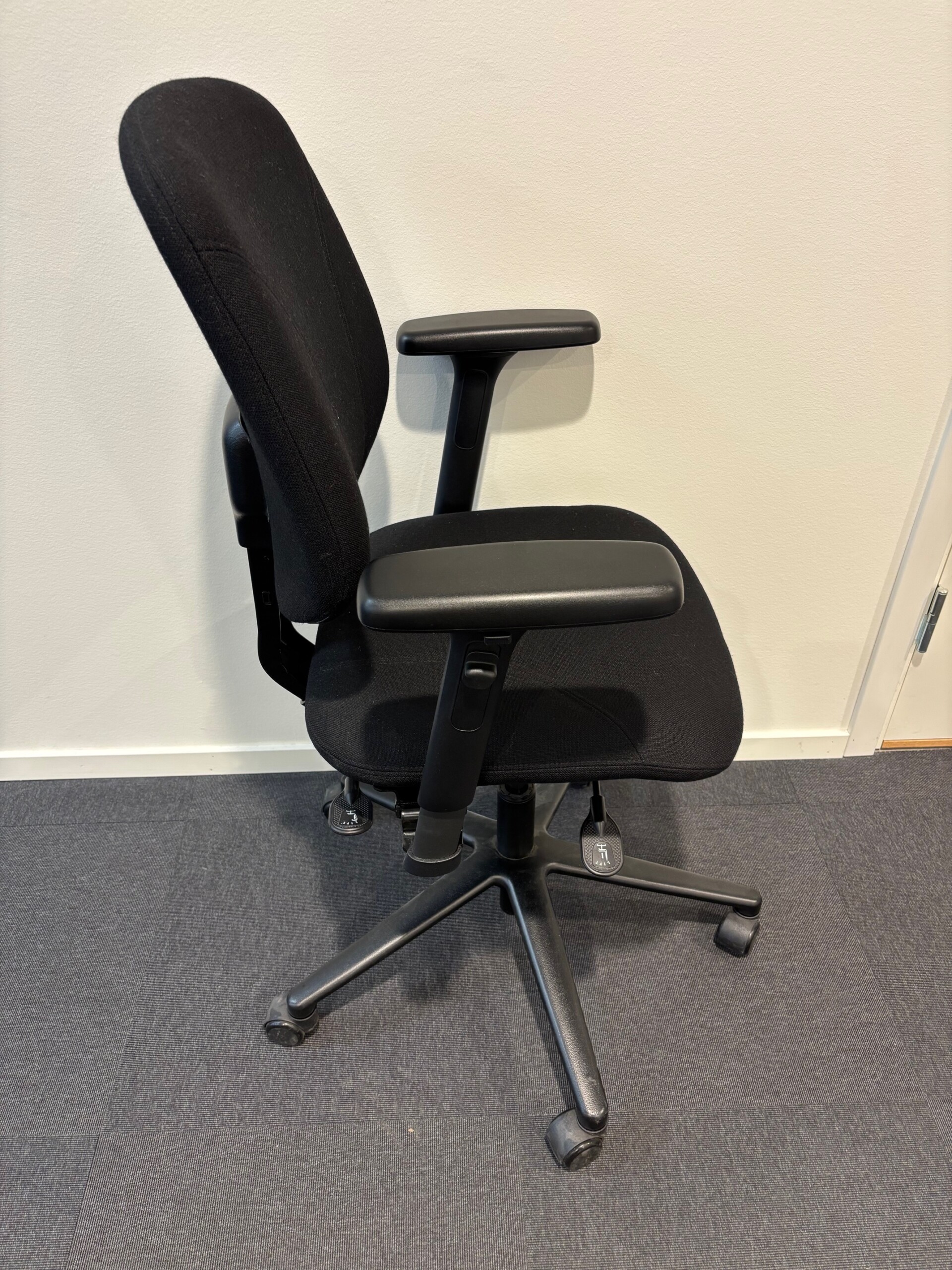 Seat and backrest in fabric (black). Star base in metal (black). Adjustable height.
