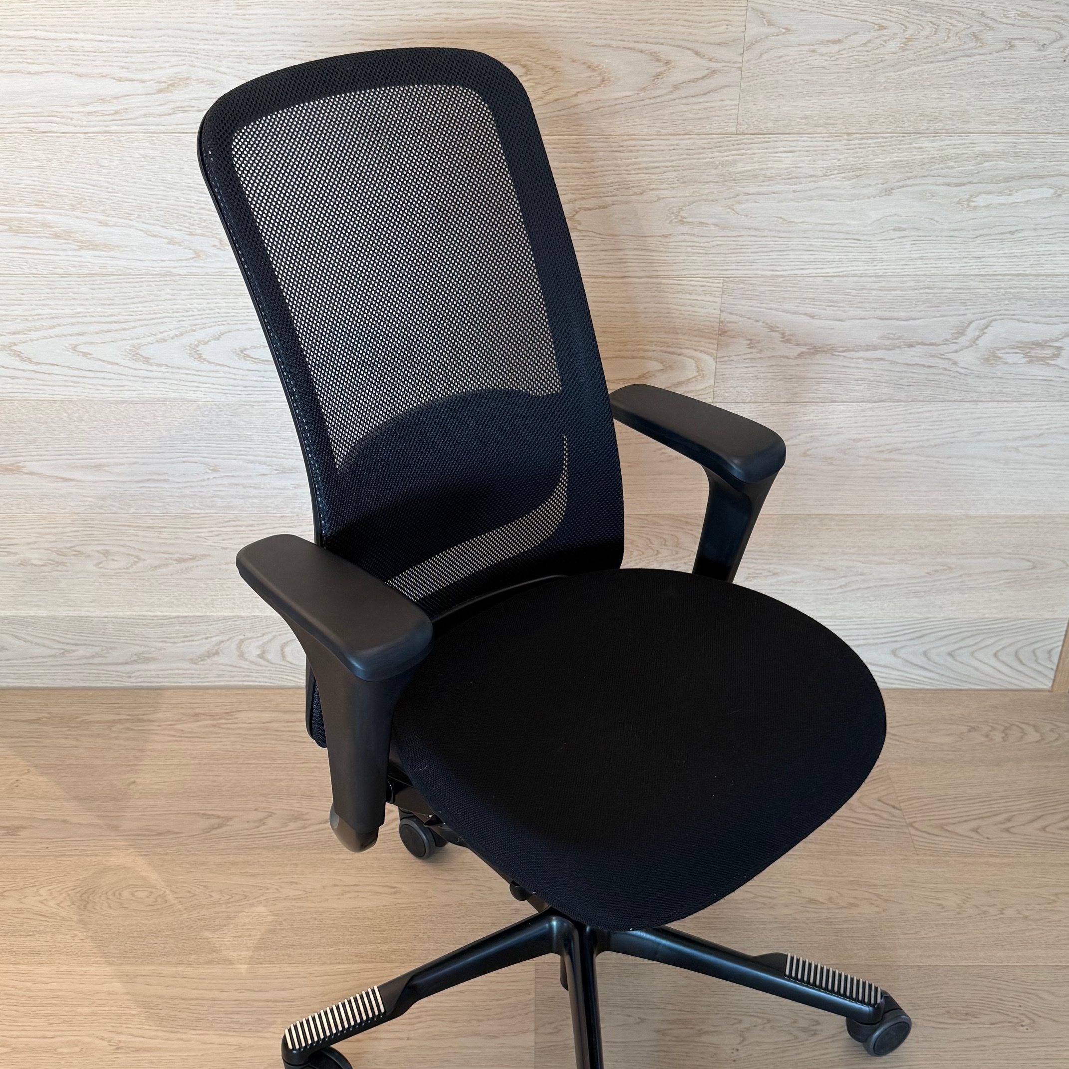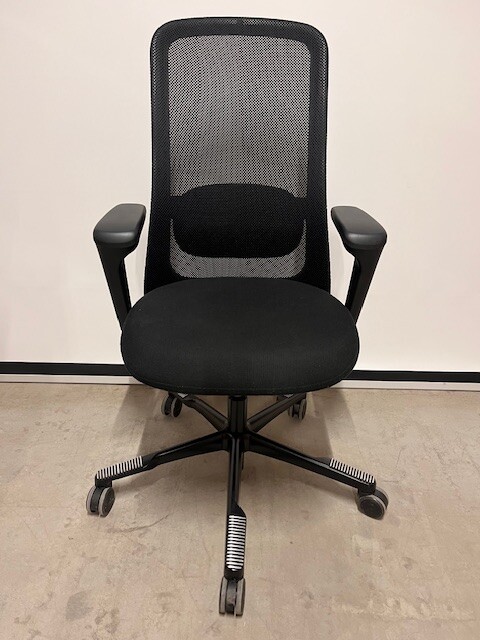 Seat in fabric (black). Backrest in mesh (black). Star base in metal (black). Adjustable height.