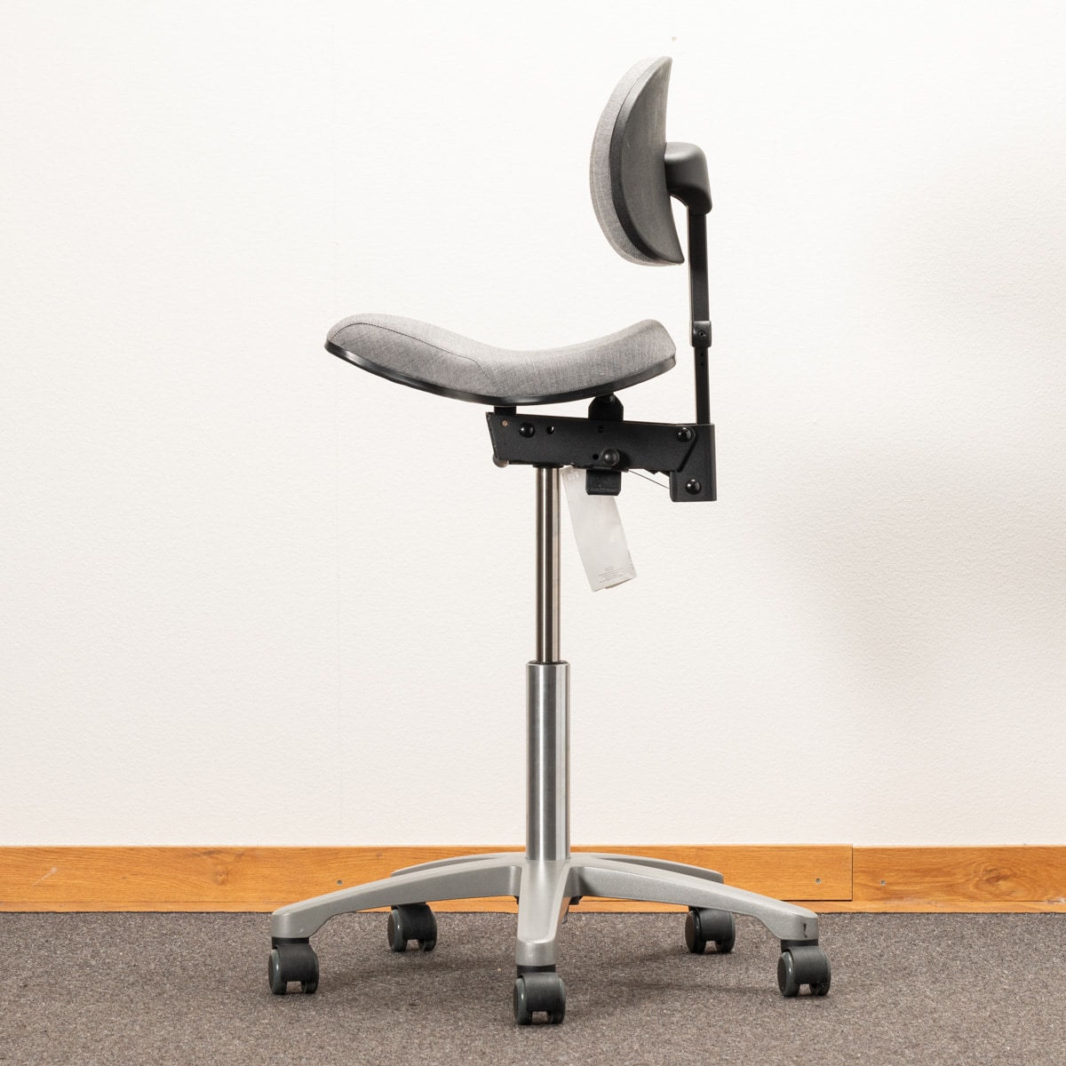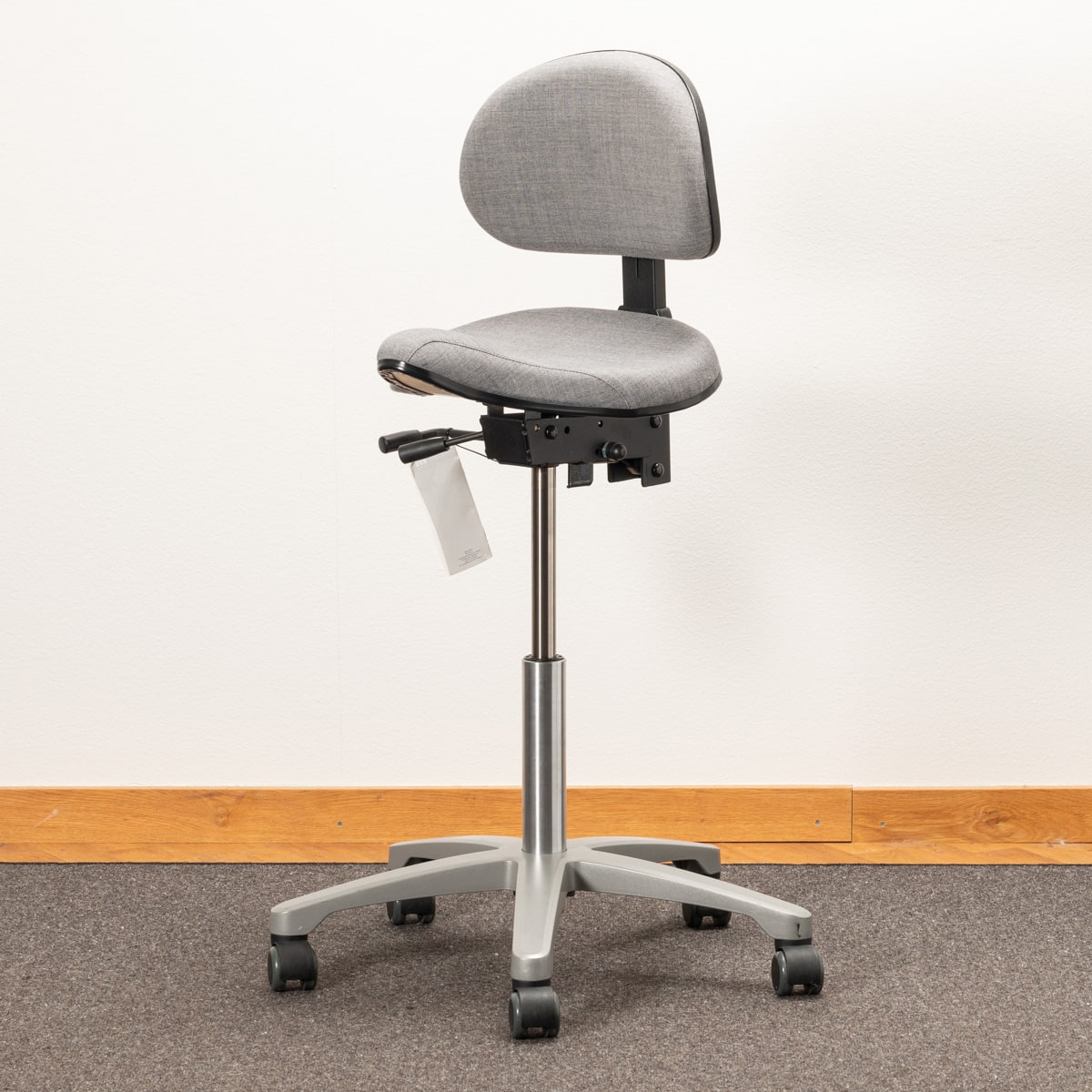 Seat and backrest in fabric (grey). Star base in metal (grey). Adjustable height.