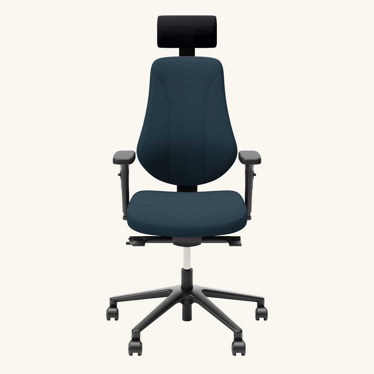 Seat and backrest in fabric (blue). Star base in metal (black). Adjustable height.