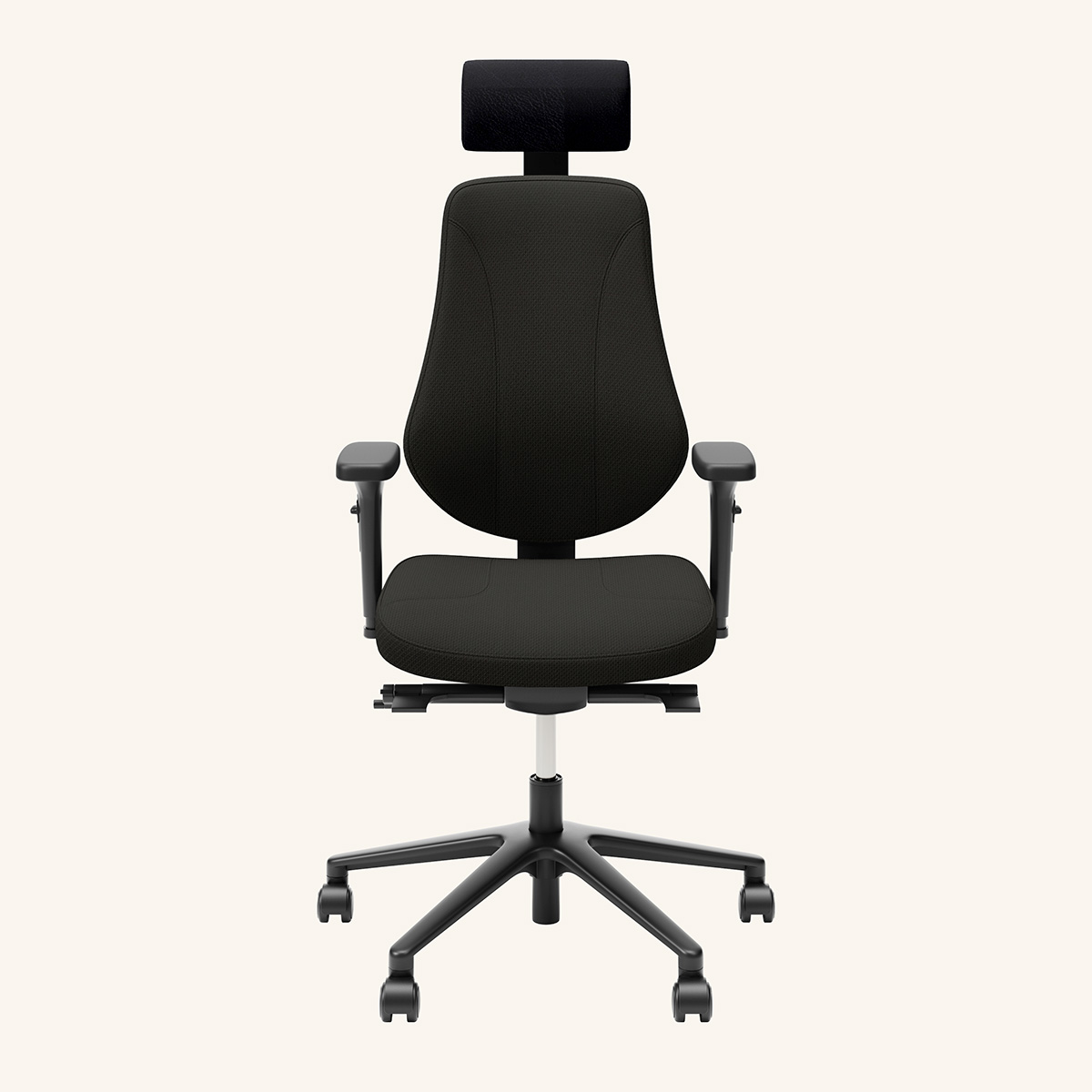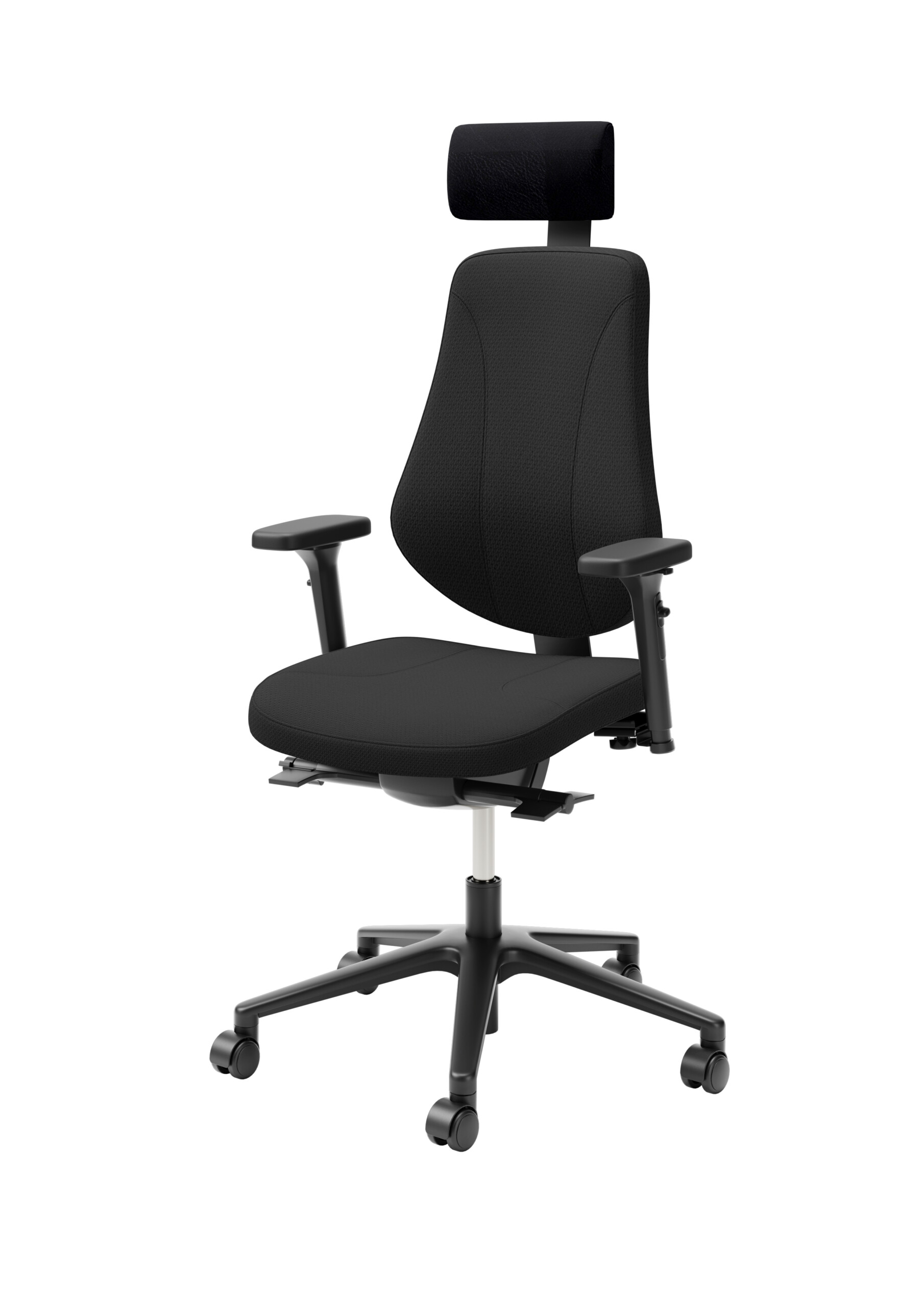 Seat and backrest in fabric (black). Star base in metal (black). Adjustable height.
